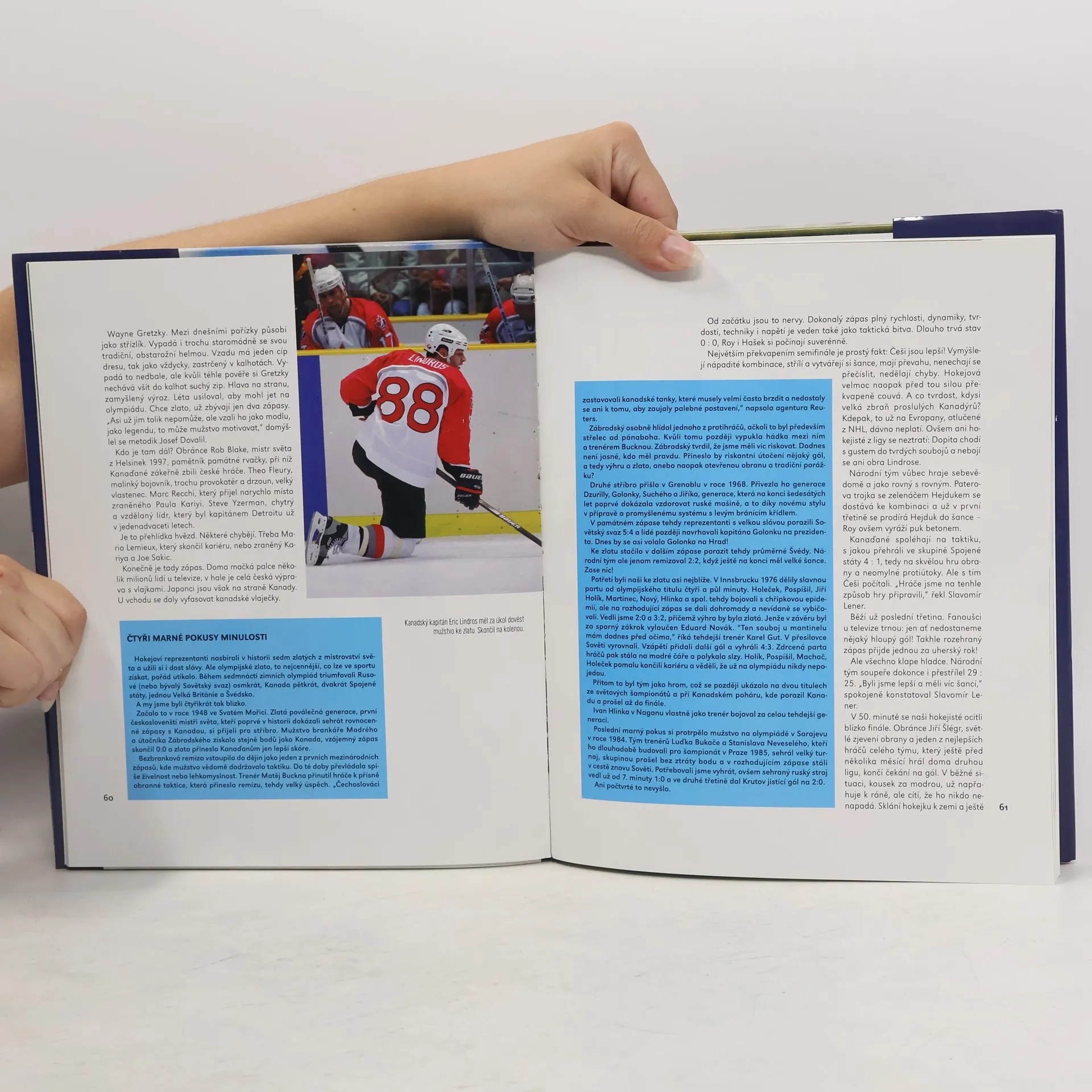 oficiální průvodce hokejovým turnajem století Nagano 1998 Nádherná publikace o nejlepším hokejovém turnaji všech dob s množstvím barevných fotografií klíčových okamžiků. Kniha nabízí prožít znovu nezapomenutelné okamžiky tohoto oslnivého úspěchu českého hokeje. O tom, kdo tvořil náš zlatý tým, jaké byly vyhlídy a atmosféra, jak vše probíhalo a skončilo, o tom, jak jsme vítali “naše zlaté chlapce” doma, kdo byl králem turnaje a proč davy skandovaly “Hašek na Hrad!”.
