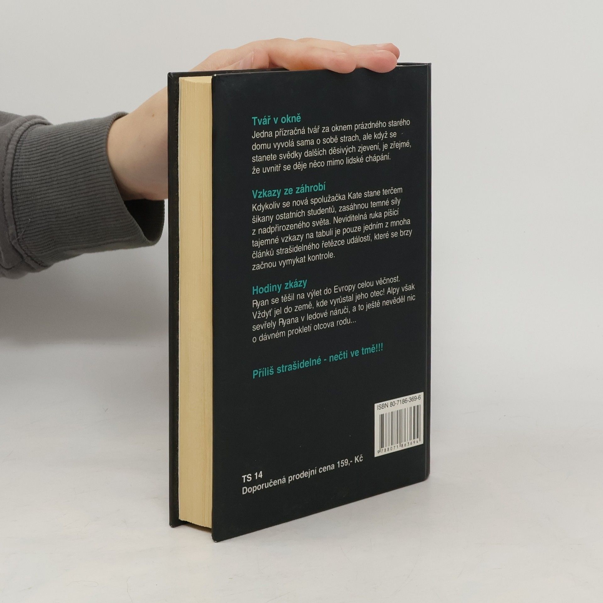 Tři strašidelné příběhy, plné tajemných a nadpřirozených jevů. 1) Tvář v okně - Jedna přízračná tvář za oknem prázdného starého domu vyvolá sama o sobě strach, ale když se stanete svědky dalších děsivých zjevení, je zřejmé, že uvnitř se děje něco mimo lidské chápání. 2) Vzkazy ze záhrobí - Kdykoliv se nová spolužačka Kate stane terčem šikany ostatních studentů, zasáhnou temné síly z nadpřirozeného světa. Neviditelná ruka píšící tajemné vzkazy na tabuli je pouze jedním z mnoha článků strašidelného řetězce událostí, které se brzy začnou vymykat kontrole. 3) Hodiny zkázy - Ryan se těšil na výlet do Evropy celou věčnost. Vždyť jel do země,kde vyrůstal jeho otec! Alpy však sevřely Ryana v ledové náruči, a to ještě nevěděl nic o dávném prokletí otcova rodu... Příliš strašidelné - nečti ve tmě!!!