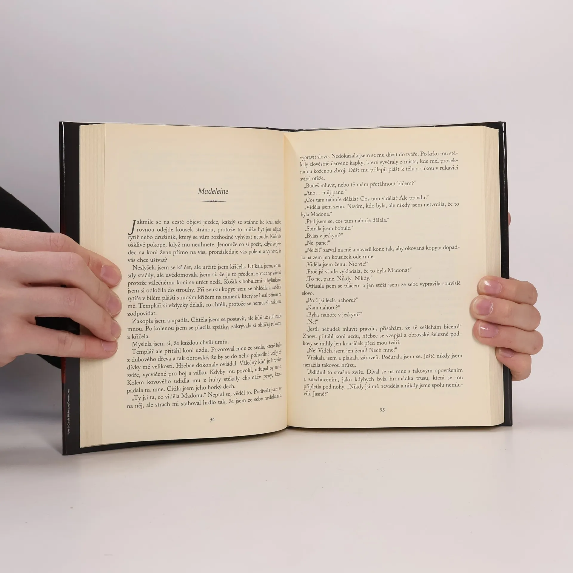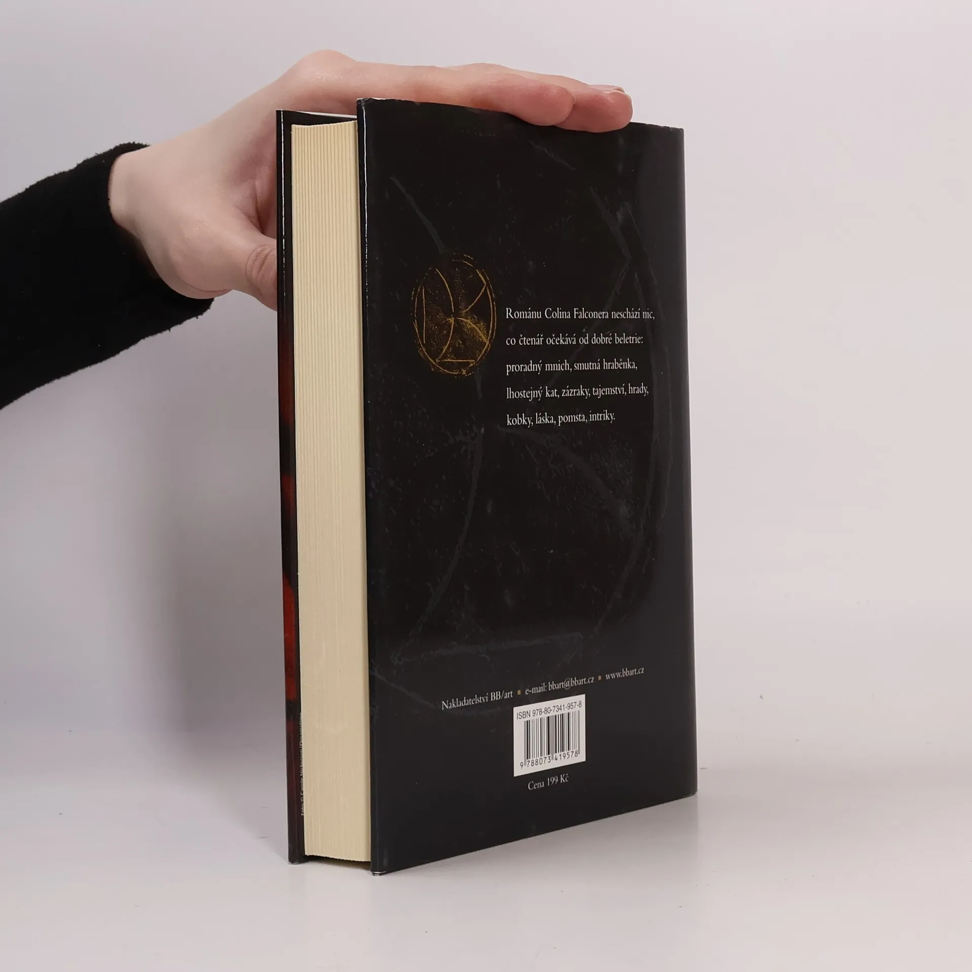 Román Colina Falconera se odehrává v Langedocu ve 13. století. Moc katolické církve neohrožují jen kataři, ale i starobylé mýty a legendy, které sahají k samotným počátkům křesťanství, a v Langedocu zůstávají stále živé. V každé báji se skrývá zrnko pravdy. V žilách dávných merovejských králů prý kolovala svatá krev Kristova. Starobylý šlechtický rod, z něhož povstali velmistři templářského řádu, střeží pradávné tajemství už po staletí. Veselý a svobodomyslný slunný jih Francie ve jménu jediné pravé víry bez milosti decimuje inkvizice. Horlivá zbožnost jen zakrývá pomstychtivost a touhu po moci. Inkvizice neušetří nikoho. Majetek či urozený původ jsou spíš přitěžující okolnost. Madeleine de Peyrolles, jediná dcera mistra kameníka, má od mládí vidiny. Nedokáže vysvětlit, co znamenají, ani jak přišla ke stigmatům na rukou a nohou. Namísto požehnání se vidiny stávají prokletím celého kraje. Románu Colina Falconera neschází nic, co čtenář očekává od dobré beletrie: proradný mnich, smutná hraběnka, lhostejný kat, zázraky, tajemství, hrady, kobky, láska, pomsta, intriky.