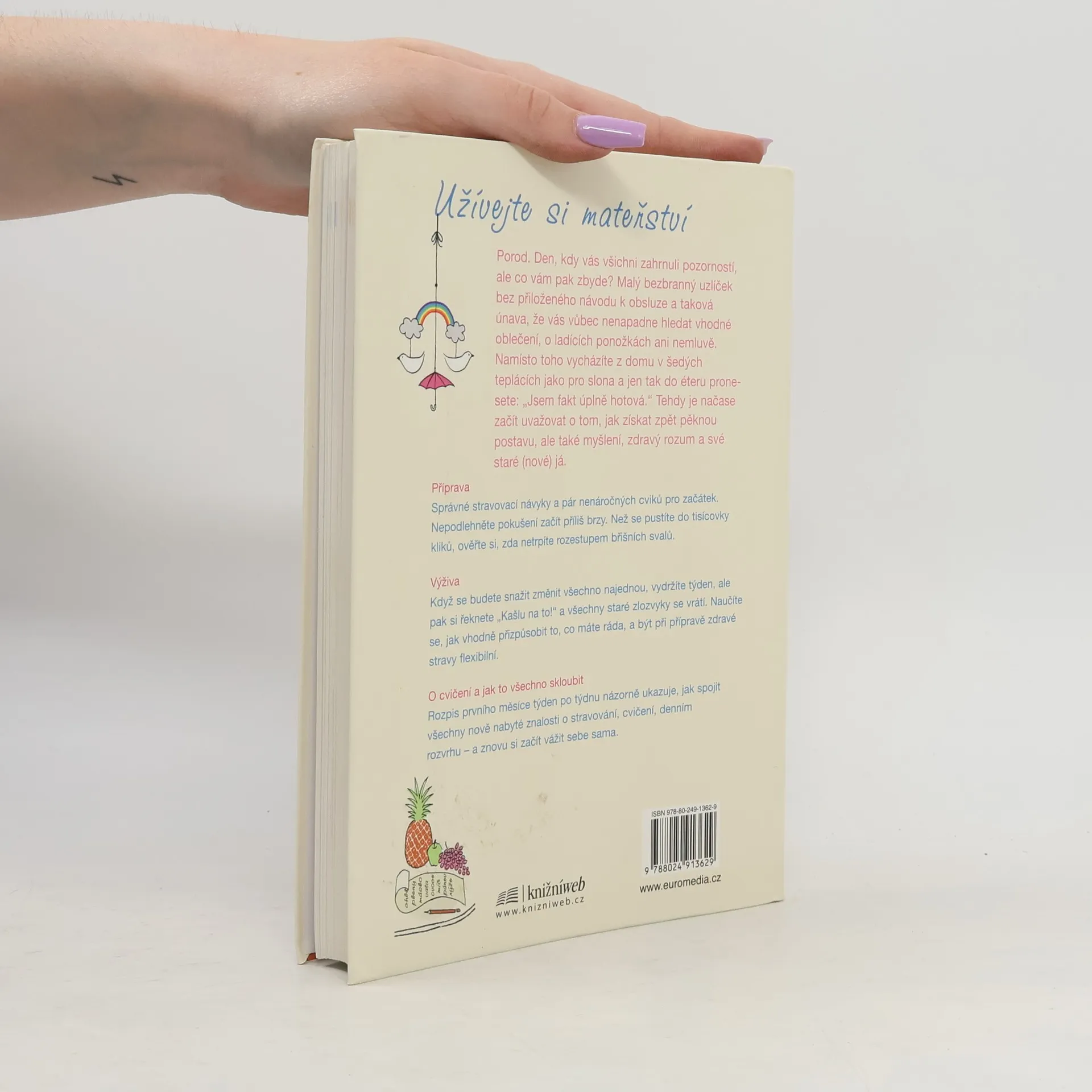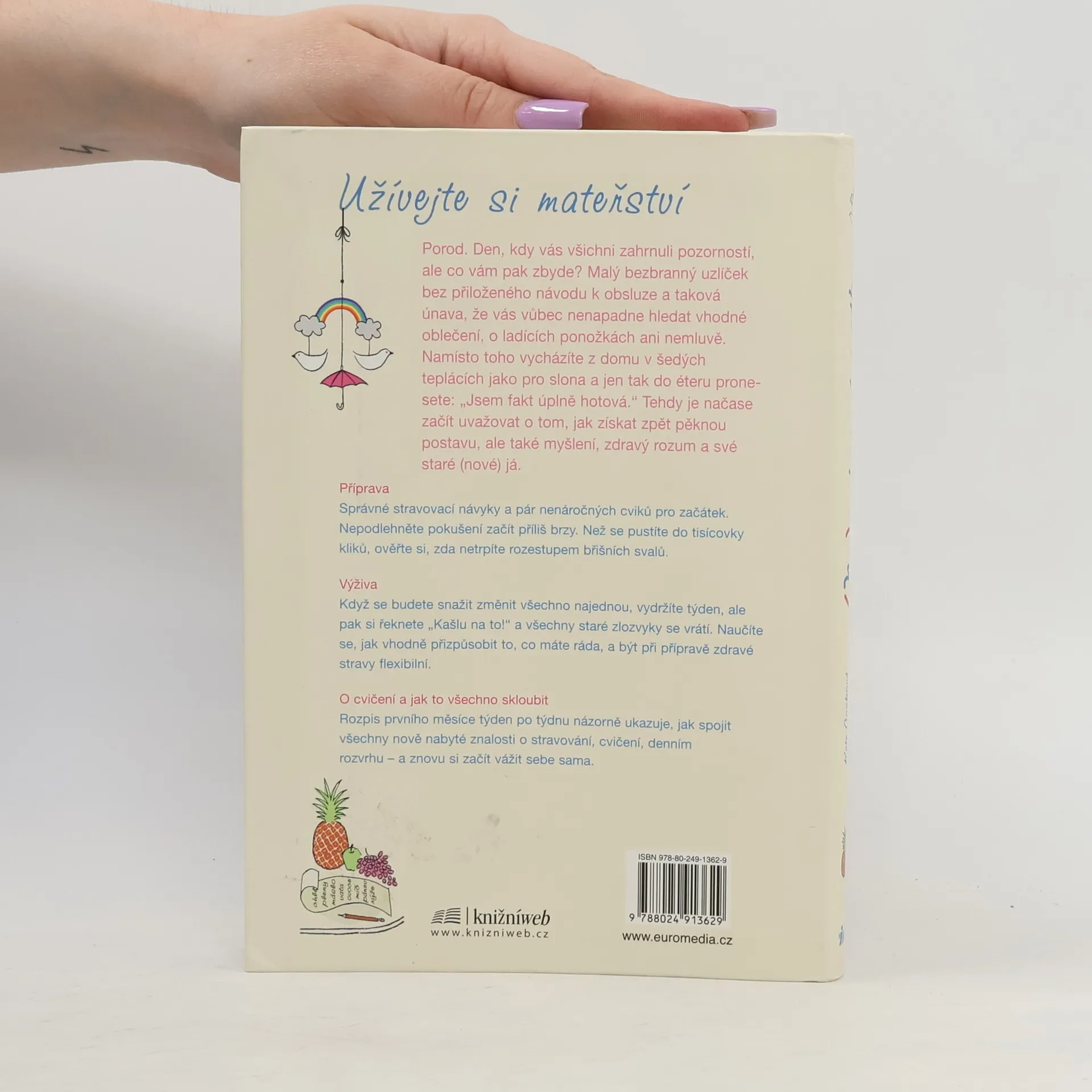 Autorky s humorem nabízejí návod, jak prožívat mateřství v klidu a pohodě, jak zůstat fit po stránce fyzické i duševní. Jak získat správné stravovací návyky a naučit se vařit zdravě. Jak být při přípravě zdravé stravy flexibilní. Rozpis prvního měsíce týden po týdnu názorně ukáže, jak spojit všechny nově nabyté znalosti o stravování, cvičení, denním rozvrhu – a znovu si začít vážit sebe sama.