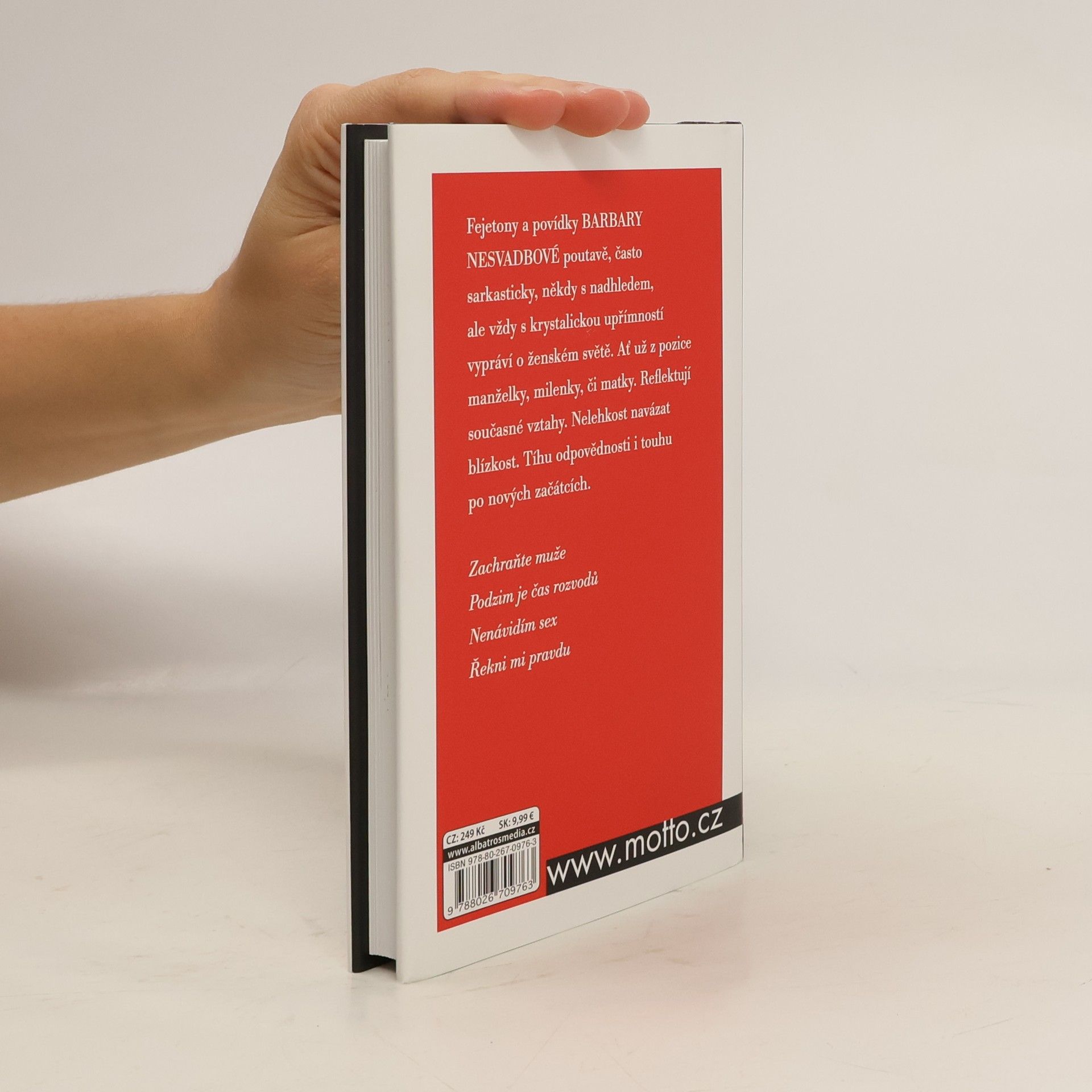 Fejetony a povídky Barbary Nesvadbové poutavě, často sarkasticky, někdy s nadhledem, ale vždy s krystalickou upřímností vypráví o ženském světě. Ať už z pozice manželky, milenky, či matky. Reflektují pozici současných vztahů. Nelehkost navázat blízkost. Tíhu odpovědnosti i touhu po nových začátcích.