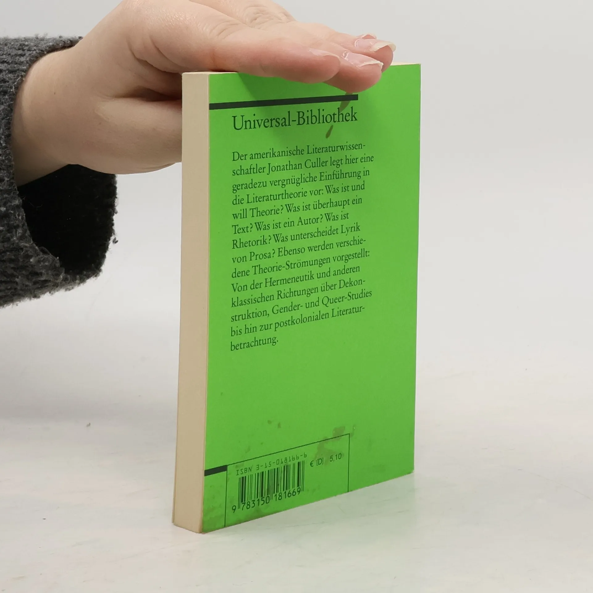 Jonathan Culler legt hier eine gut lesbare, ja vergnügliche Einführung vor. Anhand einfacher Fragen gibt sie Einblick in die wichtigsten Aspekte der Literaturtheorie. Was ist und will Theorie? Was ist ein Text? Was ist ein Autor? Was unterscheidet Lyrik von Prosa? Auch die verschiedenen Theorie-Strömungen werden vorgestellt: Von der Hermeneutik über Dekonstruktion und Gender-Studies bis zur postkolonialen Literaturbetrachtung.