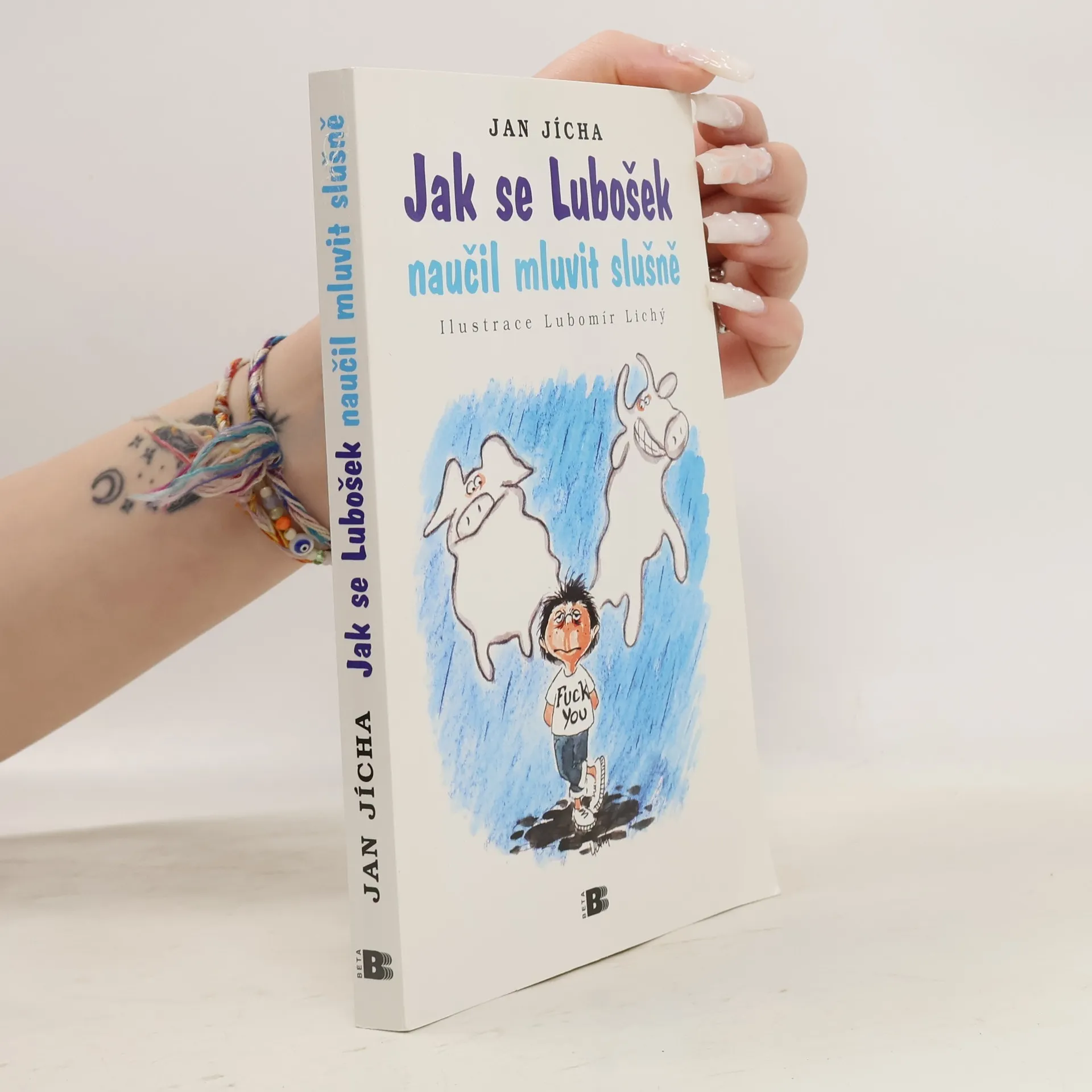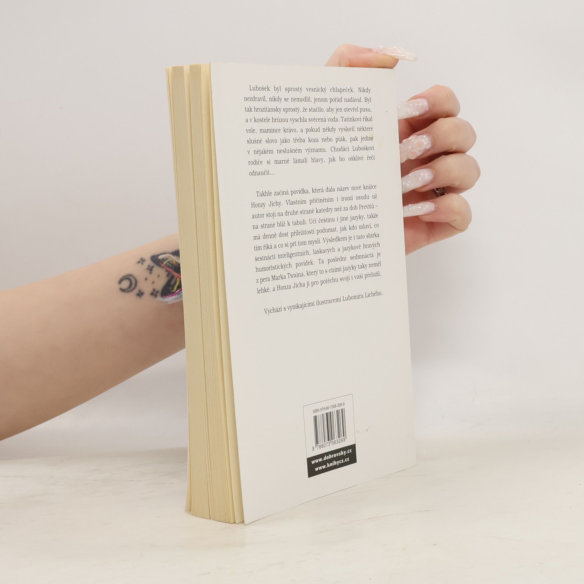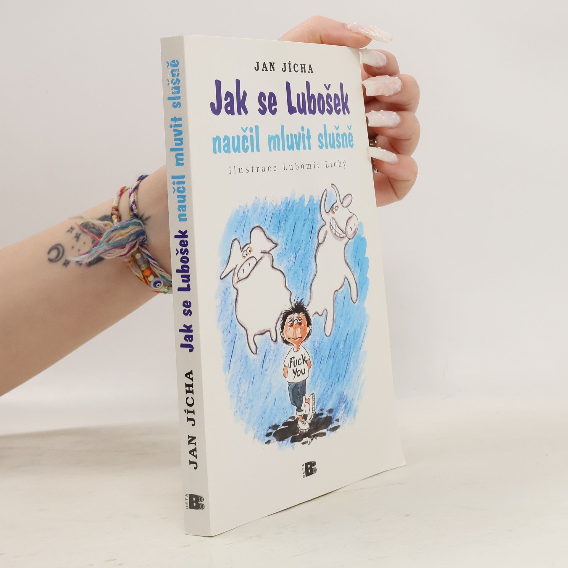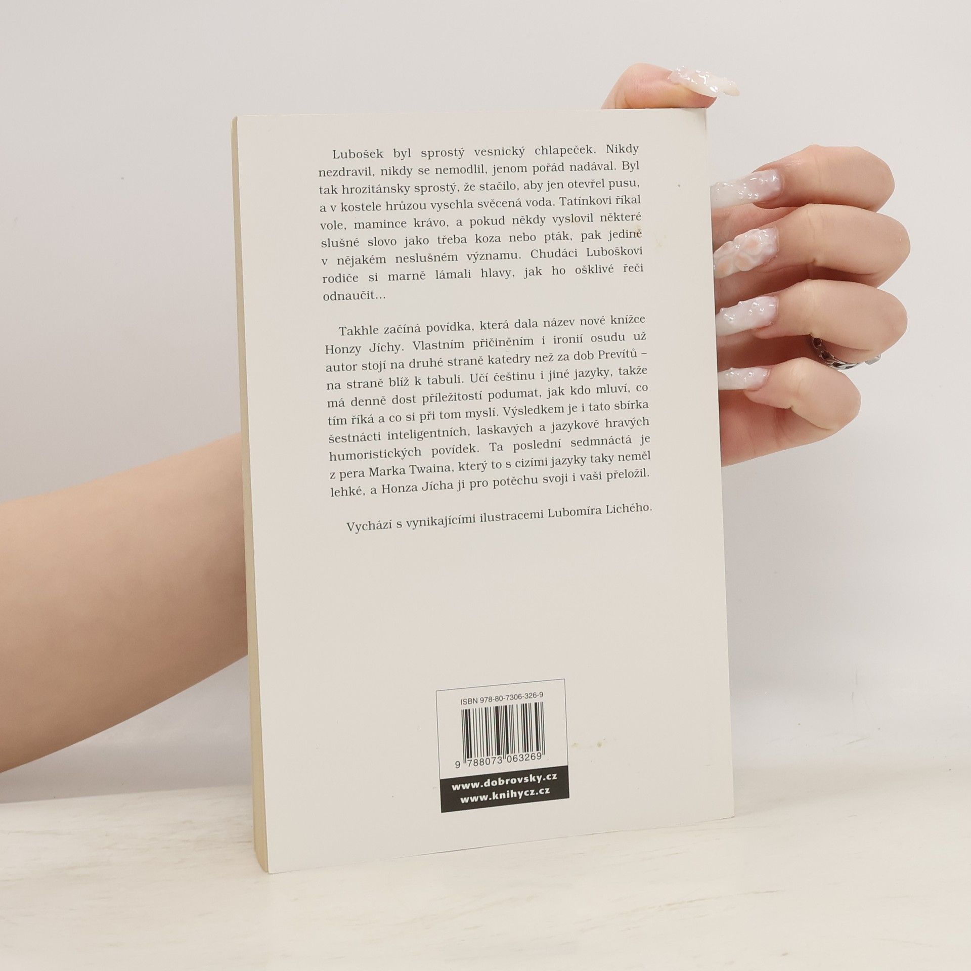 Lubošek byl sprostý vesnický chlapeček. Nikdy nezdravil, nikdy se nemodlil, jenom pořád nadával. Byl tak hrozitánsky sprostý, že stačilo, aby jen otevřel pusu, a v kostele hrůzou vyschla svěcená voda. Tatínkovi říkal vole, mamince krávo, a pokud někdy vyslovil některé slušné slovo jako třeba koza nebo pták, pak jedině v nějakém neslušném významu. Chudáci Luboškovi rodiče si marně lámali hlavy, jak ho ošklivé řeči odnaučit... Takhle začíná povídka, která dala název nové knížce Honzy Jíchy. Vlastním přičiněním i ironií osudu už autor stojí na druhé straně katedry než za dob Prevítů na straně blíž k tabuli. Učí češtinu i jiné jazyky, takže má denně dost příležitostí podumat, jak kdo mluví, co tím říká a co si při tom myslí. Výsledkem je i tato sbírka šestnácti inteligentních, laskavých a jazykově hravých humoristických povídek. Ta poslední sedmnáctá je z pera Marka Twaina, který to s cizími jazyky taky neměl lehké, a Honza Jícha ji pro potěchu svoji i vaši přeložil.
