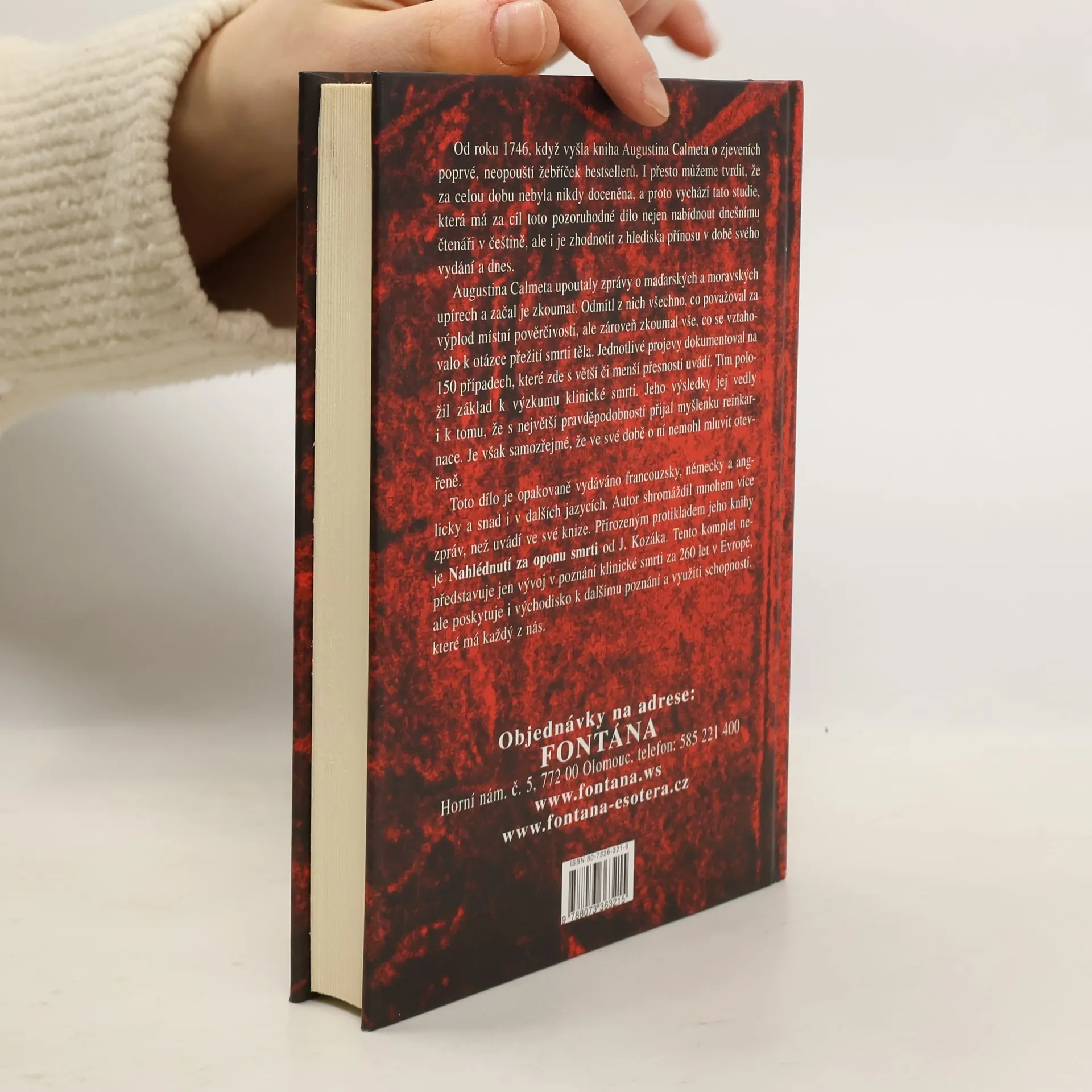 Od roku 1746, když vyšla kniha Augustina Calmeta o zjeveních poprvé, neopouští žebříček bestsellerů. I přesto můžeme tvrdit, že za celou dobu nebyla nikdy doceněna, a proto vychází tato studie, která má za cíl toto pozoruhodné dílo nejen nabídnout dnešnímu čtenáři, ale i je zhodnotit z hlediska přínosu v době svého vydání a dnes. Augustina Calmeta upoutaly zprávy o mad'arských a moravských upírech a začal je zkoumat. Odmítl z nich všechno, co považoval za výplod místní pověrčivosti, ale zároveň zkoumal vše, co se vztahovalo k otázce přežití smrti těla. Jednotlivé projevy dokumentoval na 150 případech, které zde s větší, či menší přesností uvádí. Tím položil základ k výzkumu klinické smrti. Jeho výsledky jej vedly i k tomu, že s největší pravděpodobností přijal myšlenku reinkarnace. Je však samozřejmé, že ve své době o ní nemohl mluvit otevřeně. Toto dílo je opakovaně vydáváno francouzsky, německy a anglicky a snad i v dalších jazycích. Autor shromáždil mnohem více zpráv, než uvádí ve své knize. Přirozeným protikladem jeho knihy je Nahlédnutí za oponu smrti od J. Kozáka. Úprava J. Kozák