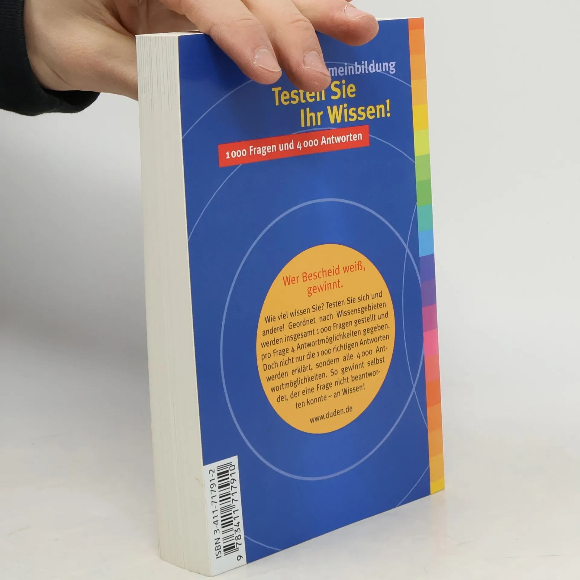 Testen Sie anhand von 1.000 Fragen aus allen Wissensgebieten Ihre Allgemeinbildung. Pro Frage haben Sie die Wahl zwischen vier Antworten, aber nur eine stimmt. Es werden jedoch alle 4.000 Antwortmöglichkeiten erläutert!
