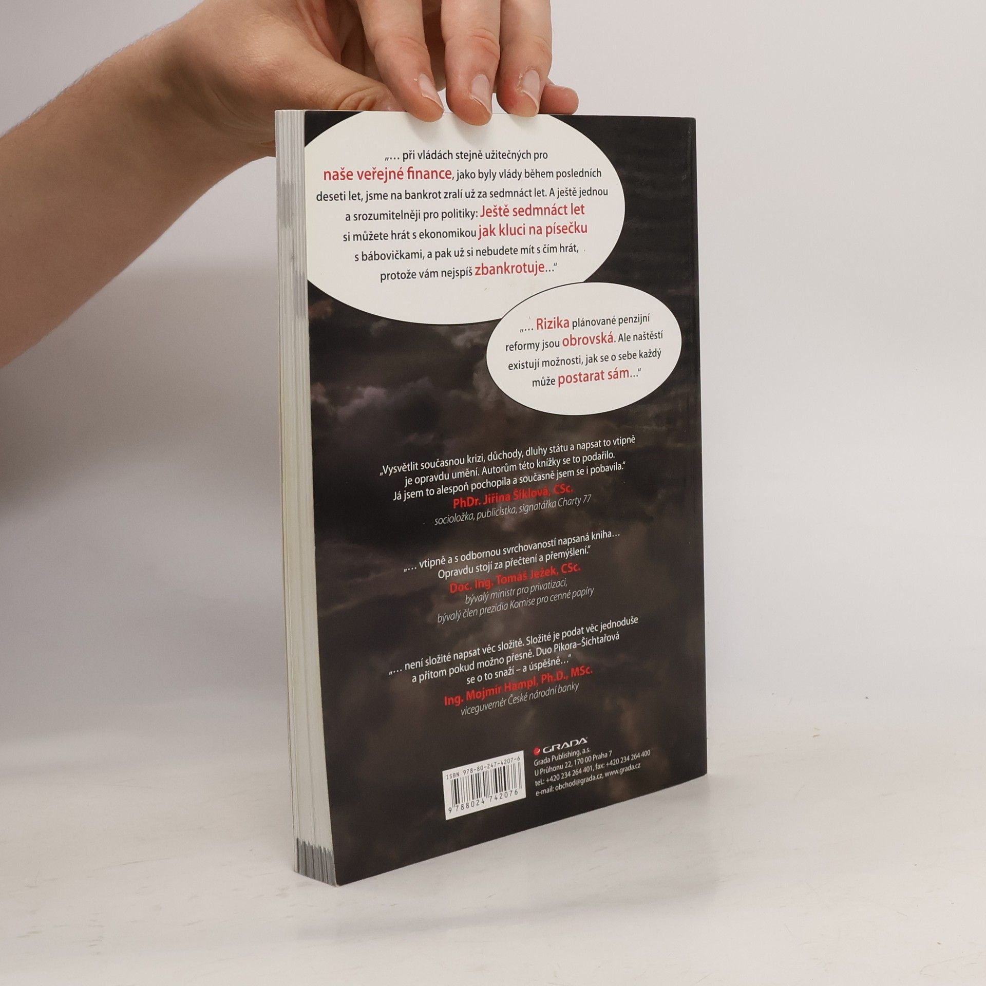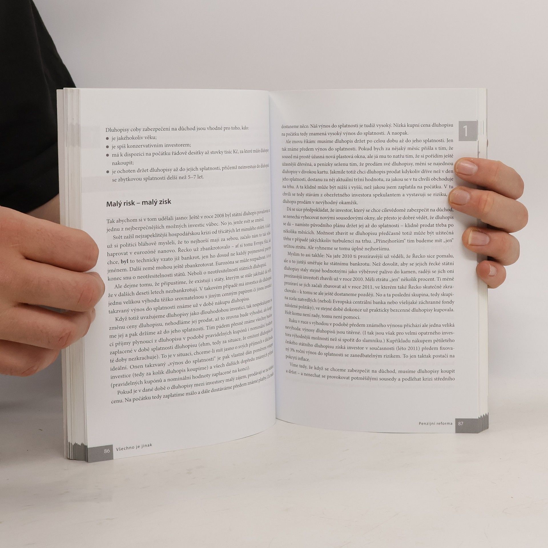 Co když je všechno jinak, než se na první pohled zdá? Ve společnosti roste napětí. Nepokoje se šíří Evropou. Jedna krize střídá druhou. Možná se blíží kolaps eurozóny. Jak to skončí? Vstupujeme do nové éry? Dá se snad v takové chvíli spoléhat na to, že se o nás postará stát? Myslíte na stáří, ale nevíte, jak v tak zvláštní době investovat bezpečně? Známí ekonomové Vladimír Pikora a Markéta Šichtařová na tyto otázky odpovídají způsobem srozumitelným každému laikovi. Boří jeden mýtus za druhým, odmaskovávají nekompetentní politiky, odhalují, co nás čeká. Nabízejí řešení, jak se o sebe a svůj důchod postarat a jak investovat bezpečně. Ale pokud čekáte nudu a nesrozumitelný odborný text, nedočkáte se. Taková kniha o ekonomice tu totiž ještě nebyla! Nerozčílí vás - spíš vám zvedne náladu před nedělním obědem. Knížka byla oceněna Cenou Grady jako nejlepší publikace roku 2011.