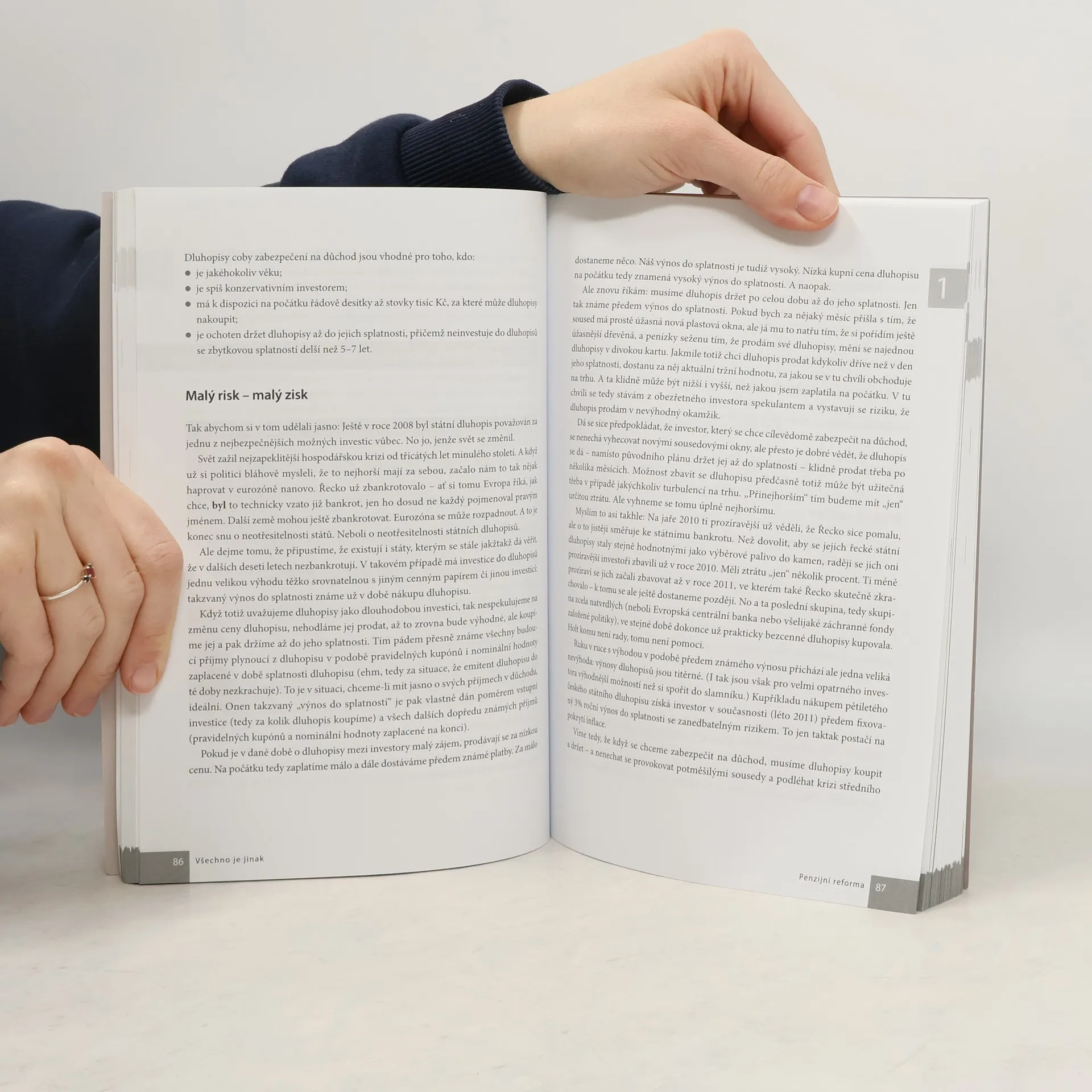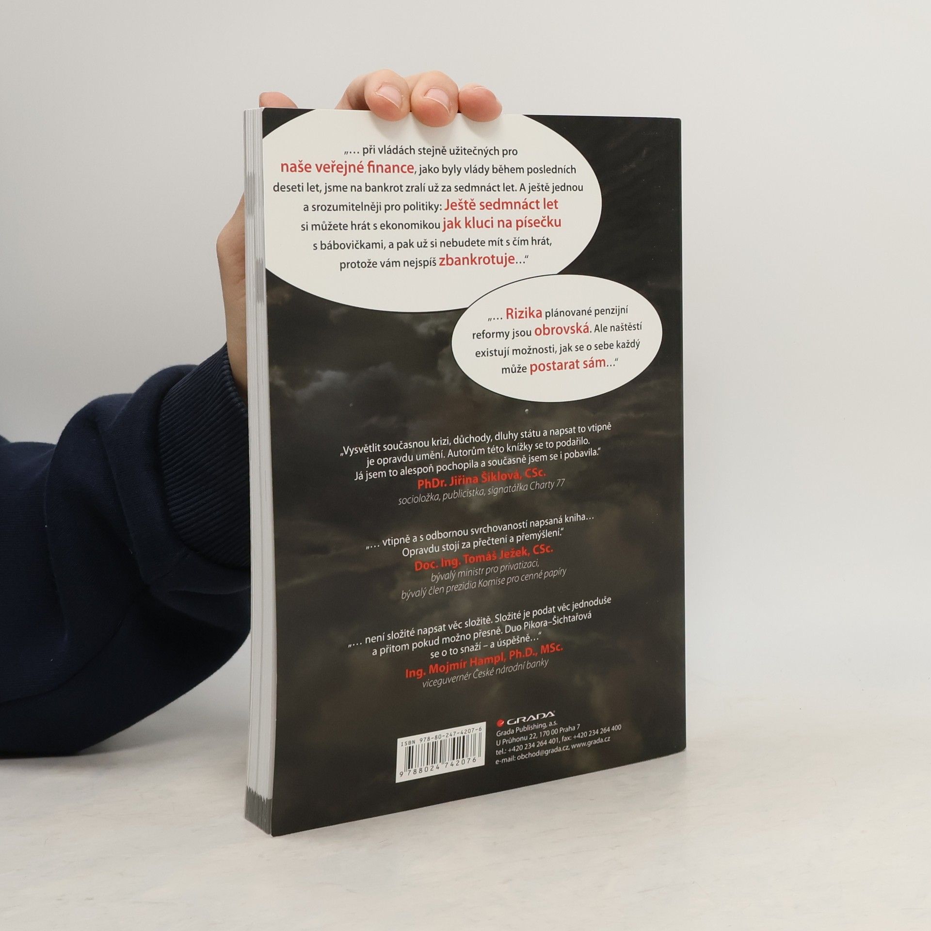 Co když je všechno jinak, než se na první pohled zdá? Ve společnosti roste napětí. Nepokoje se šíří Evropou. Jedna krize střídá druhou. Možná se blíží kolaps eurozóny. Jak to skončí? Vstupujeme do nové éry? Dá se snad v takové chvíli spoléhat na to, že se o nás postará stát? Myslíte na stáří, ale nevíte, jak v tak zvláštní době investovat bezpečně? Známí ekonomové Vladimír Pikora a Markéta Šichtařová na tyto otázky odpovídají způsobem srozumitelným každému laikovi. Boří jeden mýtus za druhým, odmaskovávají nekompetentní politiky, odhalují, co nás čeká. Nabízejí řešení, jak se o sebe a svůj důchod postarat a jak investovat bezpečně. Ale pokud čekáte nudu a nesrozumitelný odborný text, nedočkáte se. Taková kniha o ekonomice tu totiž ještě nebyla! Nerozčílí vás - spíš vám zvedne náladu před nedělním obědem. Knížka byla oceněna Cenou Grady jako nejlepší publikace roku 2011.