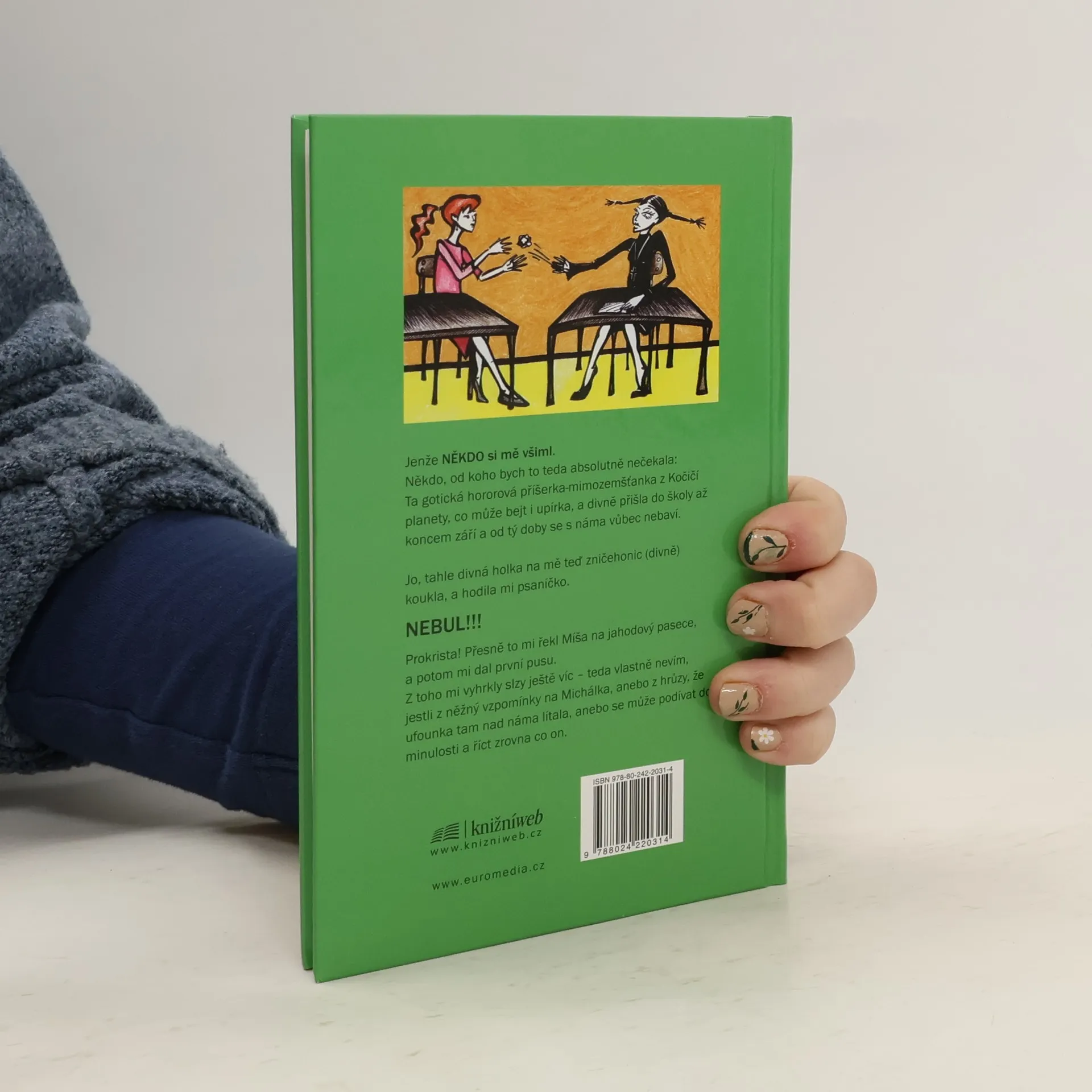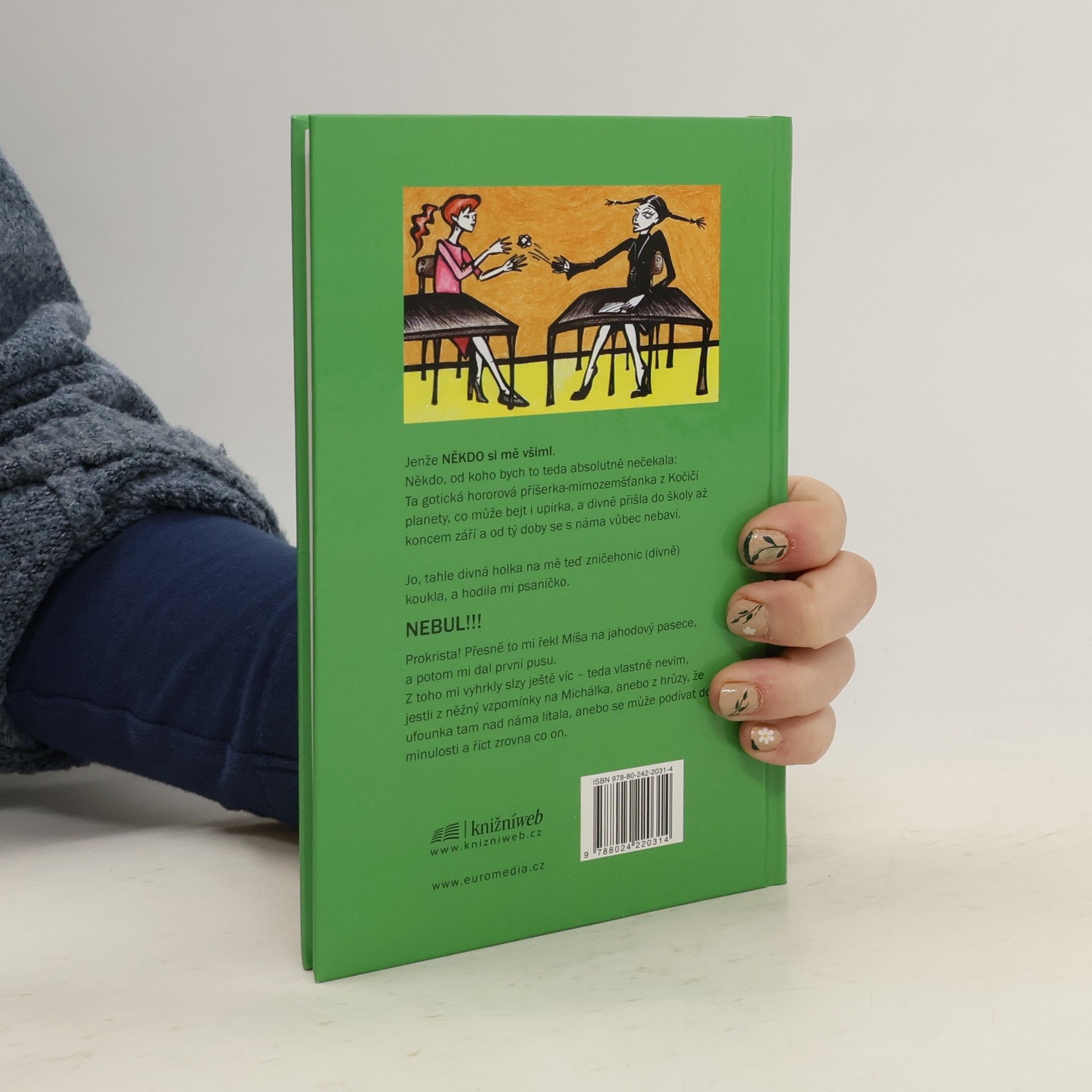 Holky, kde jsou kluci? (ale kretény neberem!) - Denková Melita Jenže NĚKDO si mě všiml. Někdo, od koho bych to teda absolutně nečekala: Ta gotická hororová příšerka-mimozemšťanka z Kočičí planety, co může bejt i upírka, a divně přišla do školy až koncem září a od tý doby se s náma vůbec nebaví. Jo, tahle divná holka na mě teď zničehonic (divně) koukla, a hodila mi psaníčko. NEBUL!!! Prokrista! Přesně to mi řekl Míša na jahodový pasece, a potom mi dal první pusu. Z toho mi vyhrkly slzy ještě víc - teda vlastně nevím, jestli z něžný vzpomínky na Michálka, anebo z hrůzy, že ufounka tam nad náma lítala, anebo se může podívat do minulosti a říct zrovna co on.