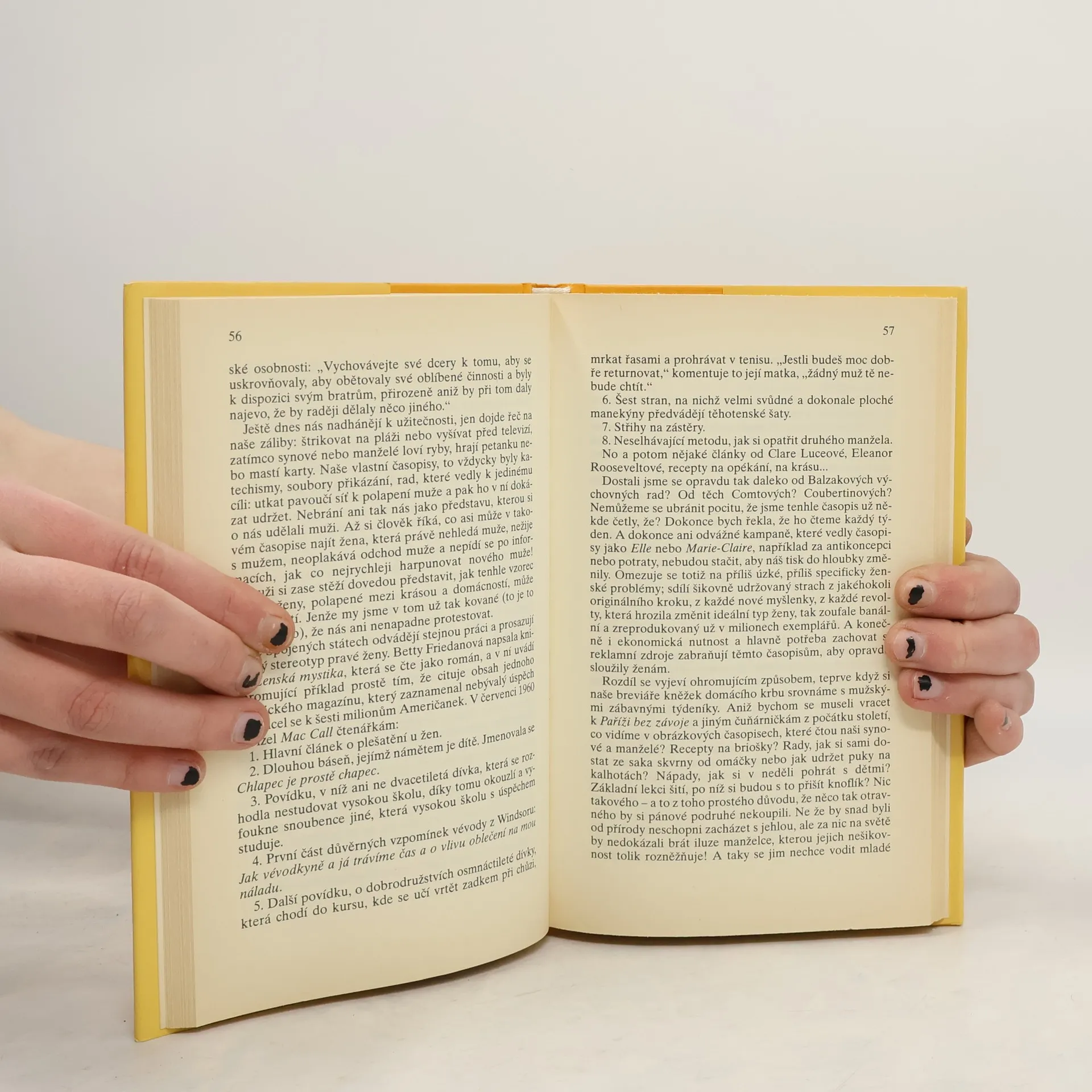 Rekapitulace historického vývoje úlohy ženy v lidské společnosti. Deset duchaplných, často kousavě ironických a rozhořčených zamyšlení, které autorce, ovšem i mnoha ženám daleko za hranicemi rodné Francie pomohly změnit sebe samu – v bytost, jež si uvědomuje vlastní hodnotu a dokáže ji prosadit.