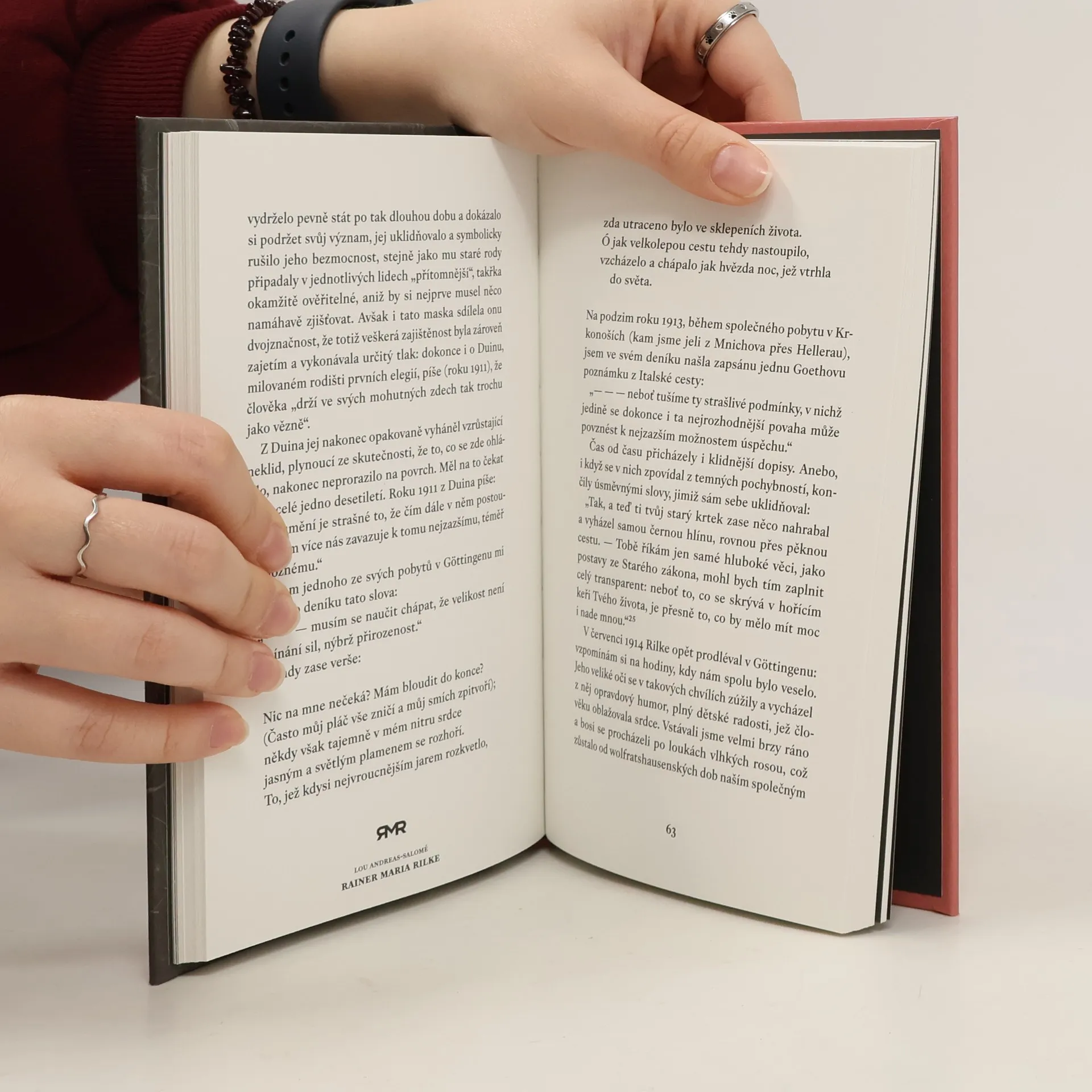 Lou Andreas-Salomé, dcera francouzského generála ruské armády, prožila dětství v Petrohradu a je autorkou několika knih a článků. V květnu 1897 se jako šestatřicetiletá žena seznámila s Rilkem, což vedlo k intelektuálnímu přátelství, které se brzy proměnilo v milenecký vztah. Rilke, dvacet dva let, prožívá svou první a poslední blaženou lásku, kdy se stává sebevědomějším v milostné sféře, zatímco v jiných vztazích se cítí zatížen. Zatímco dříve trávil čas v kavárnách a redakcích, nyní dokáže žít měsíce o samotě a nachází potěšení v přírodě. Pod jejím vlivem mění jméno z Reného na Rainer a jeho rukopis se stává energickým a elegantním. Rilke píše: „Přišel jsem k tobě chudý, přišel jsem k bohaté ženě málem jako dítě…“ Lou mu pomáhá zbavit se exaltovanosti a zvládat smutek. Přestože na cestě k vnitřní rovnováze utrpí mnoho ran, Lou mu umožňuje nahlédnout na sebe z odstupu. Pocit jistoty, který u ní získal, mu vydrží do konce života. Poslední dopis jí napíše několik dní před smrtí. Tato kniha je hlubokým pochopením pro básníka, vzpomínkou, posledním rozhovorem a rozloučením… a literárním klenotem.