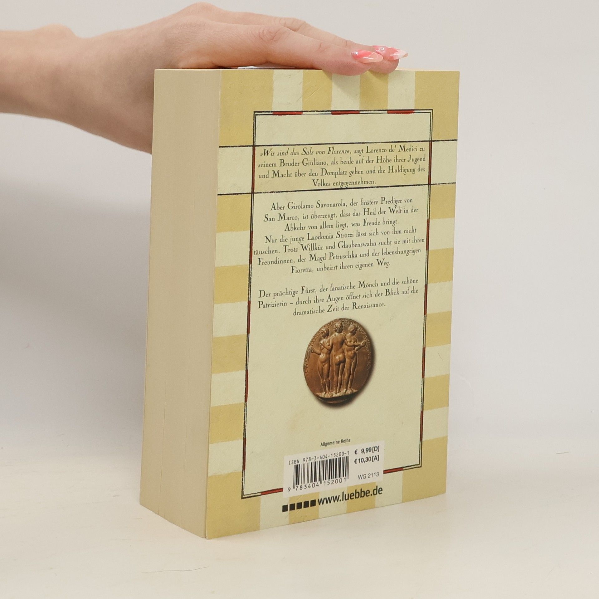 „Wir sind das Salz von Florenz“, sagt Lorenzo de' Medici zu seinem Bruder Guiliano, als beide auf der Höhe ihrer Jugend und Macht über den Domplatz gehen und die Huldigung des Volkes entgegennehmen. Aber Girolamo Savonarola, der finstere Prediger von San Marco, ist überzeugt, dass das Heil der Welt in der Abkehr von allem liegt, was Freude bringt. Nur die junge Laodomia Strozzi lässt sich von ihm nicht täuschen. Trotz Willkür und Glaubenswahn sucht sie mit ihren Freundinnen, der Magd Petruschka und der lebenshungrigen Fioretta, unbeirrt ihren eigenen Weg. Der prächtige Fürst, der fanatische Mönch und die schöne Patrizierin - durch ihre Augen öffnet sich der Blick auf die dramatische Zeit der Renaissance.