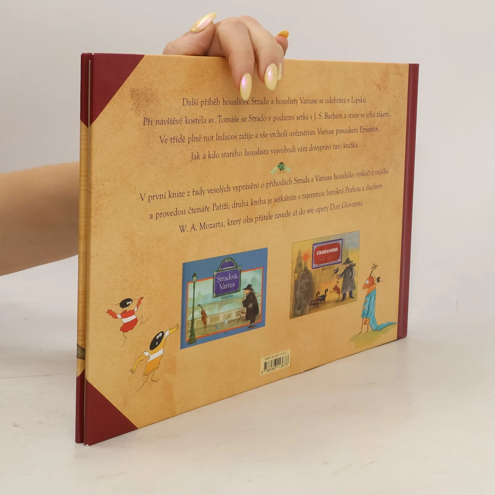 Houslista Varius a housličky Strado jedou do Lipska na Mezinárodní Bachovu soutěž. Pro děti mladšího školního věku. [Varius a Strado jsou vysláni na soutěž do Lipska. Při procházce městem vstoupí do kostela sv. Tomáše, kde hrával na varhany samotný Johann Sebastian Bach. Zatímco Strado se tam seznámí s myším kostelníkem Capricciem, který ho zavede do podzemí, kde potká samotného Bacha, jak vyučuje neposlušné noty Umění fugy, Varius je uvězněn obrovským a zlým pavoukem Ernestim ve zvonici kostela. Příběh doprovází půvabné kresby autorky. Volné pokračování knih "Strado & Varius" a "Strado & Varius aneb setkání s Mozartem". Obě knihy získaly mnohá ocenění.