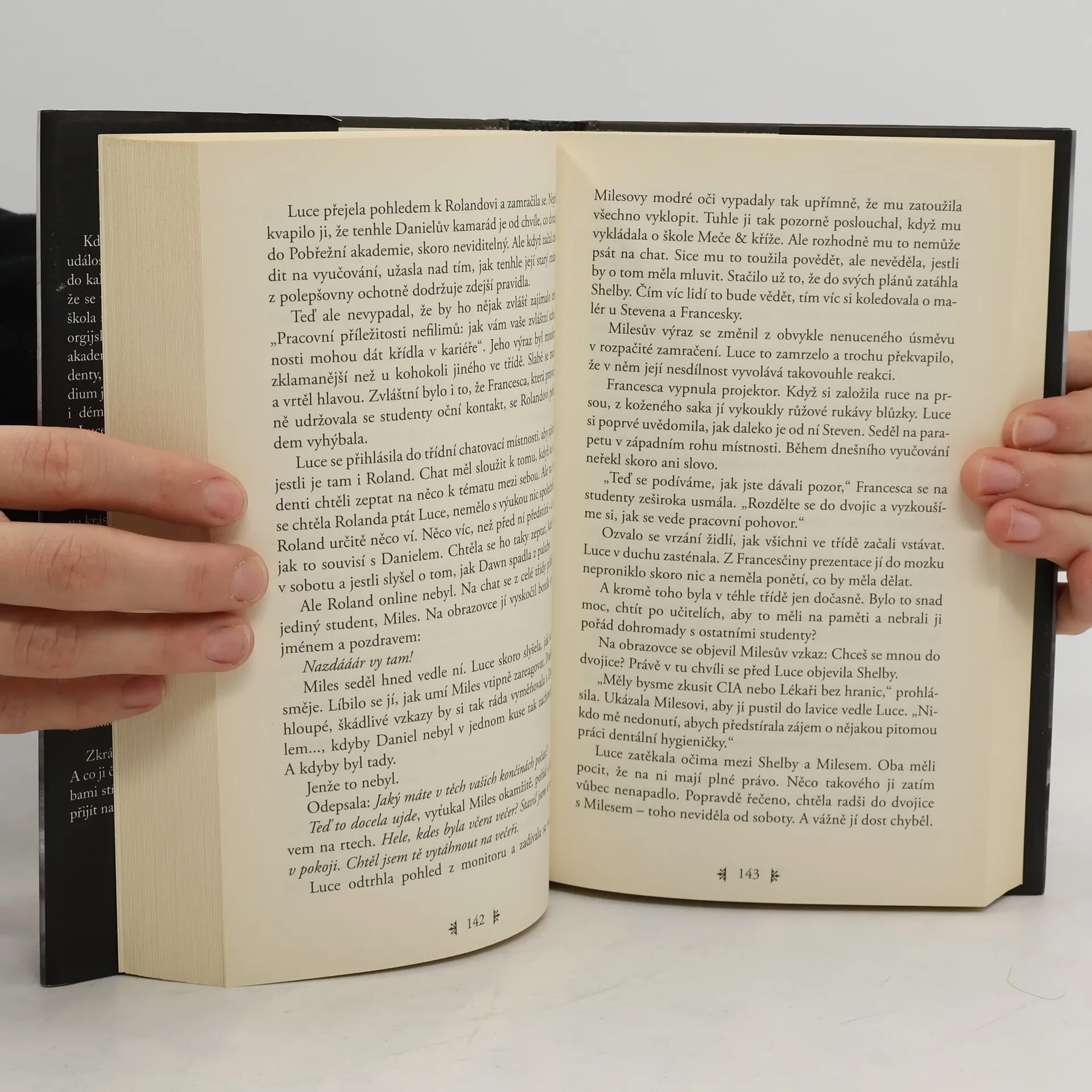 Nebezpečné, vzrušující a tajemné romantické dobrodružství Padlých andělů pokračuje v knize Muka. Druhou část série, ve které láska nikdy neumírá, napsala opět Lauren Kateová. Luce prožívá peklo na zemi. Trvalo dlouho, než našla svou pravou lásku, padlého anděla Daniela. Ten teď tvrdí, že ji musí opustit. Jeho úkolem je jít a bojovat proti Vyhnancům, nesmrtelným, kteří Luce usilují o život. Daniel ji ukryje ve škole na skalnatém kalifornském pobřeží. Jejími spolužáky jsou nezvykle nadaní studenti – Nefilim, potomci padlých andělů a lidí. A Daniel odchází hledat nesmrtelné… Luce se ve škole konečně dozví, co jsou ony záhadné stíny, které vídá od dětství, a jak může s jejich pomocí nahlédnout do minulých životů. Ale čím více se rozšiřují její znalosti, tím víc podezřívá Daniela, že jí neprozradil všechno. Něco skrývá, něco nebezpečného. A co když jí lhal o minulosti? Luce začne mít podezření, že ve skutečnosti je její osud jiný. Předurčeným vyvoleným nemusí být právě Daniel.