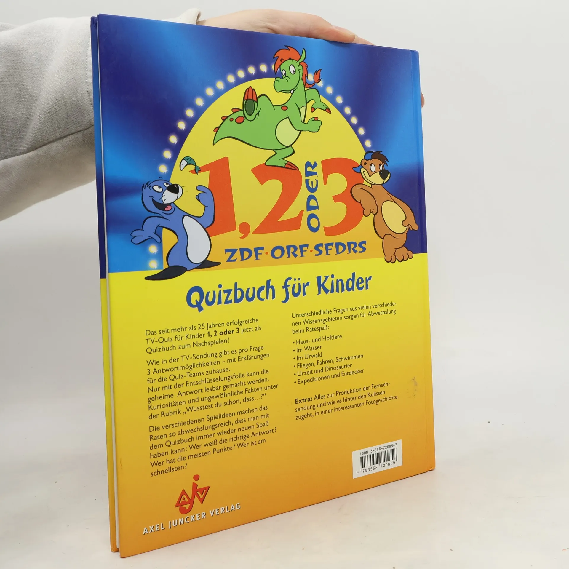 Quizfragen für Kinder aus unterschiedlichen Wissensbereichen, der Fernsehshow 1, 2 oder 3 nachempfunden.