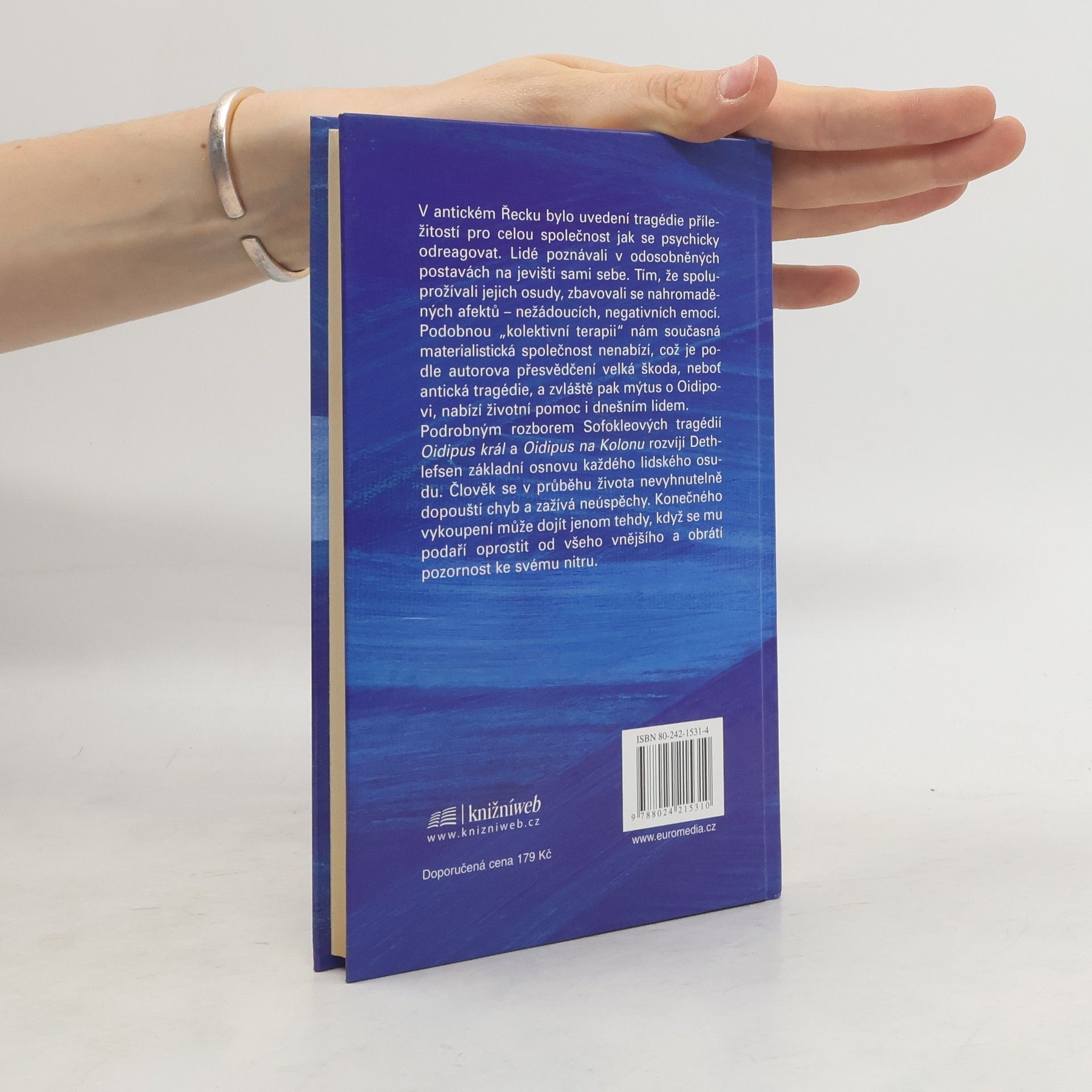 V antickém Řecku bylo uvedení tragédie příležitostí pro celou společnost jak se psychicky odreagovat. Lidé poznávali v odosoběných postavách na jevišti sami sebe. Tím, že spoluprožívali jejich osudy, zbavovali se nahromaděných afektů - nežádoucích, negativních emocí. Podobnou "kolektivní terapii" nám součastná materialistická společnost nenabízí, což je podle autorova přesvědčení velká škoda, neboť antická tragédie, a zvláště pak mýtus o Oidipovi, nabízí životní pomoc i dnešním lidem. Podrobným rozborem Sofokleových tragédií Oidipus král a Oidipus na Kolonu rozvíjí Dethlefsen základní osnovu každého lidského osudu. Člověk se v průběhu života nevyhnutelně dopouští chyb a zažívá neúspěchy. Konečného vykoupení může dojít jenom tehdy, když se mu podaří opustit od všeho vnějšího a obrátí pozornost ke svému nitru.