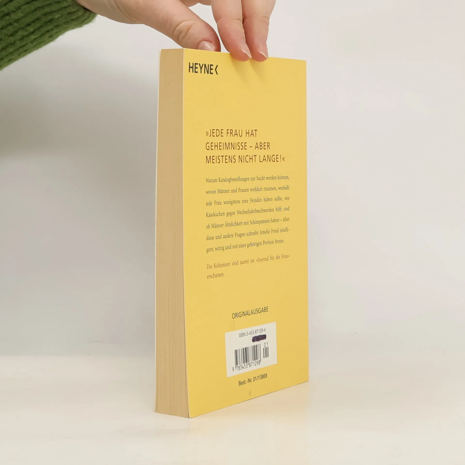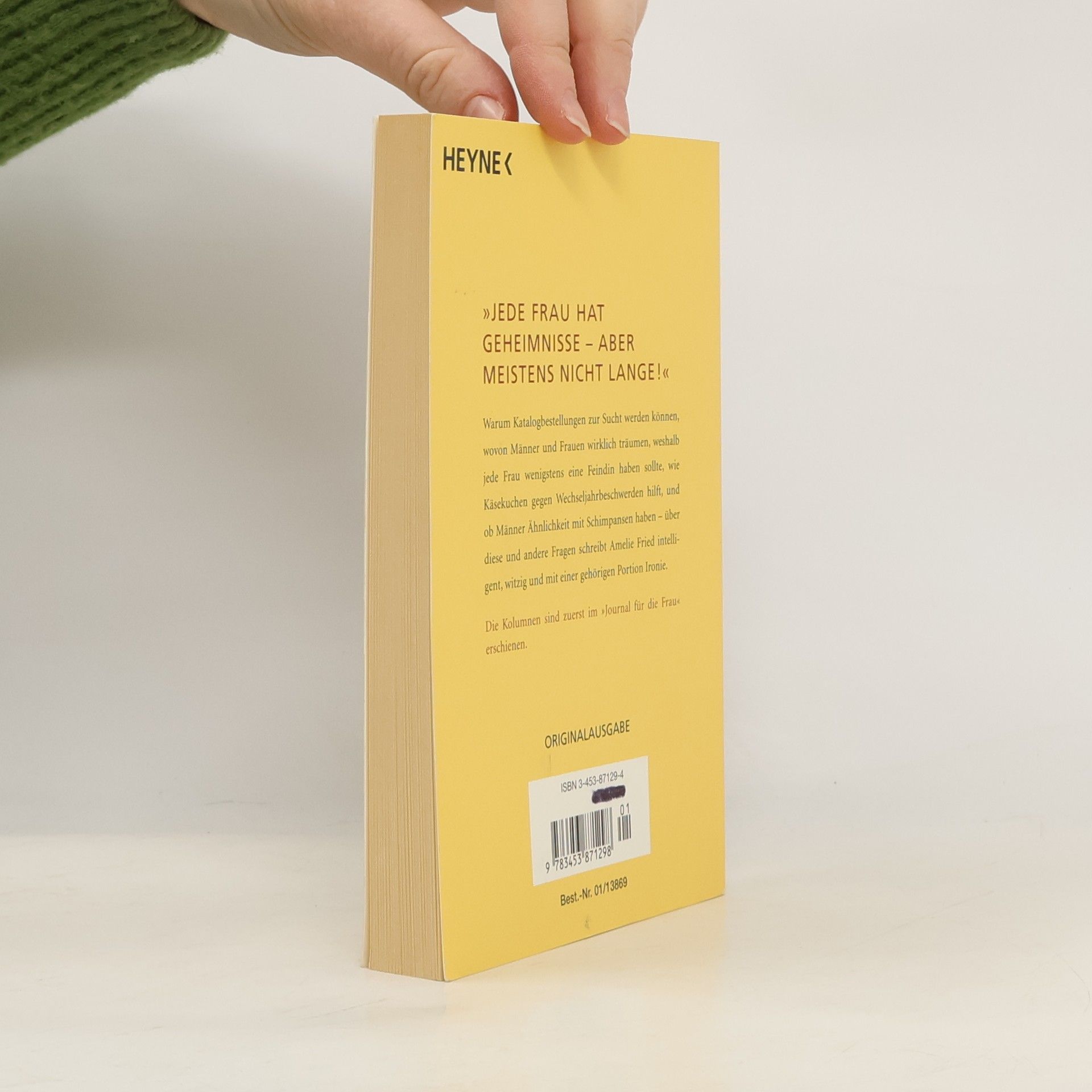 Warum Katalogbestellungen zur Sucht werden können, wovon Männer und Frauen wirklich träumen, weshalb jede Frau wenigstens eine Feindin haben sollte, wie Käsekuchen gegen Wechseljahrsbeschwerden hilft, und ob Männer Ähnlichkeit mit Schimpansen haben... Über diese und andere Fragen schreibt Amelie Fried intelligent, witzig und mit einer gehörigen Portion Ironie.