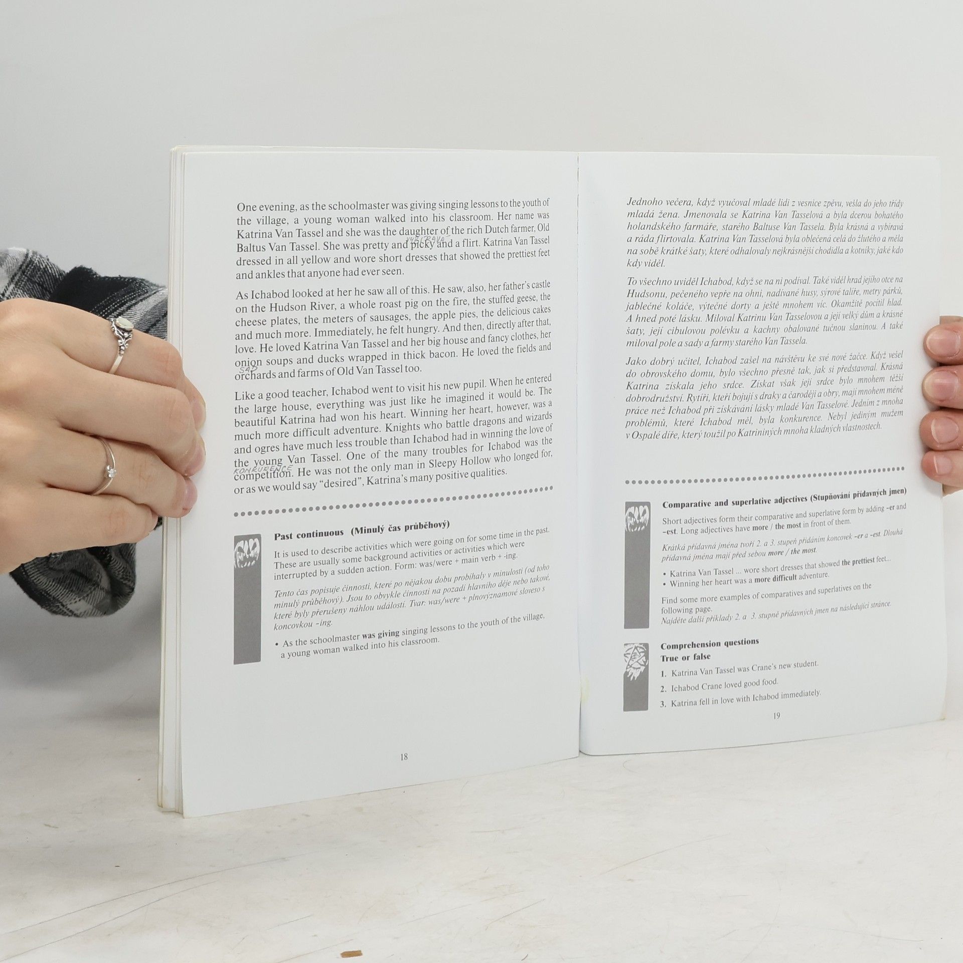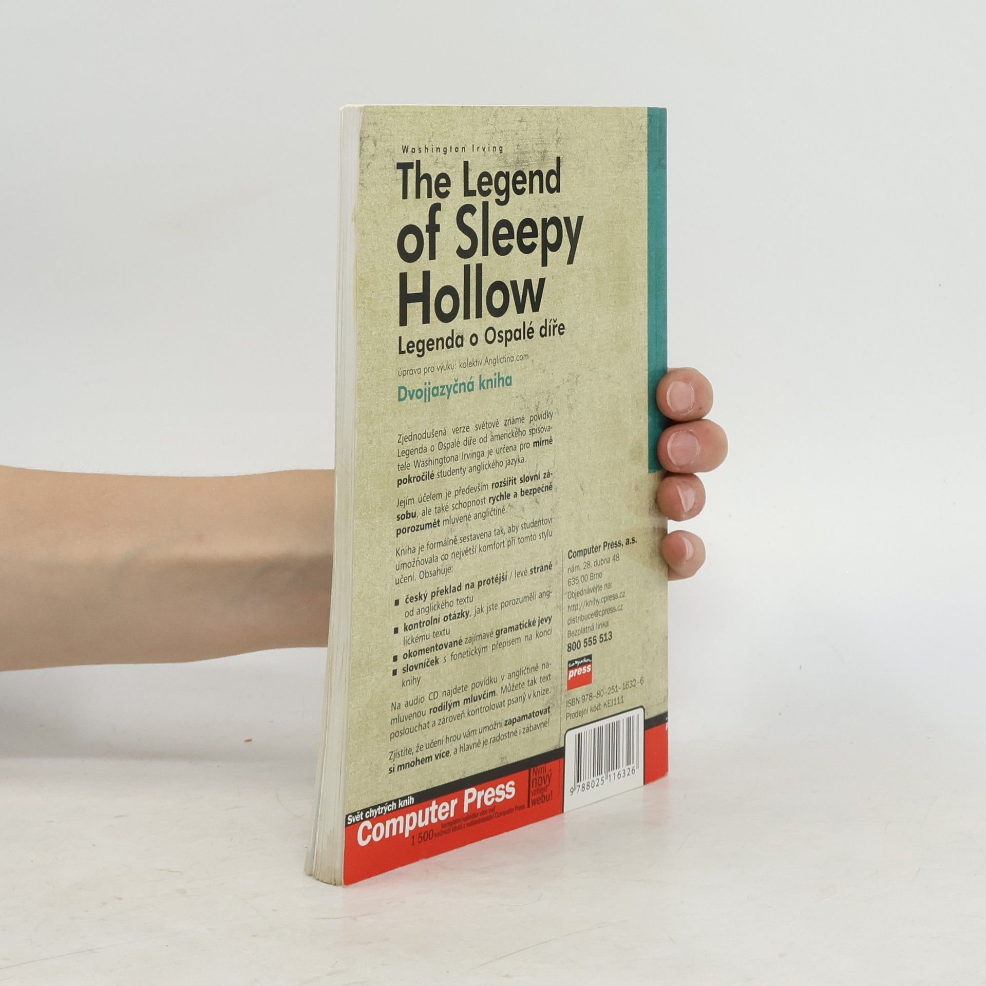 Povídka od známého spisovatele Washingtona Irvinga je ve zjednodušené verzi doplněna českým překladem. Zjednodušená verze světově známé povídky Legenda o Ospalé díře od amerického spisovatele Washingtona Irvinga je určena pro mírně pokročilé studenty anglického jazyka. Jejím účelem je především rozšířit slovní zásobu, ale také schopnost rychle a bezpečně porozumět mluvené angličtině. Kniha je formálně sestavena tak, aby studentovi umožňovala co největší komfort při tomto stylu učení. Obsahuje: * český překlad na protější/levé straně od anglického textu * kontrolní otázky, jak jste porozuměli anglickému textu * okomentované zajímavé gramatické jevy * slovníček s fonetickým přepisem na konci knihy Na audio CD najdete povídku v angličtině namluvenou rodilým mluvčím. Můžete tak text poslouchat a zároveň kontrolovat psaný v knize. Zjistíte, že učení hrou vám umožní zapamatovat si mnohem více, a hlavně je radostné i zábavné!
