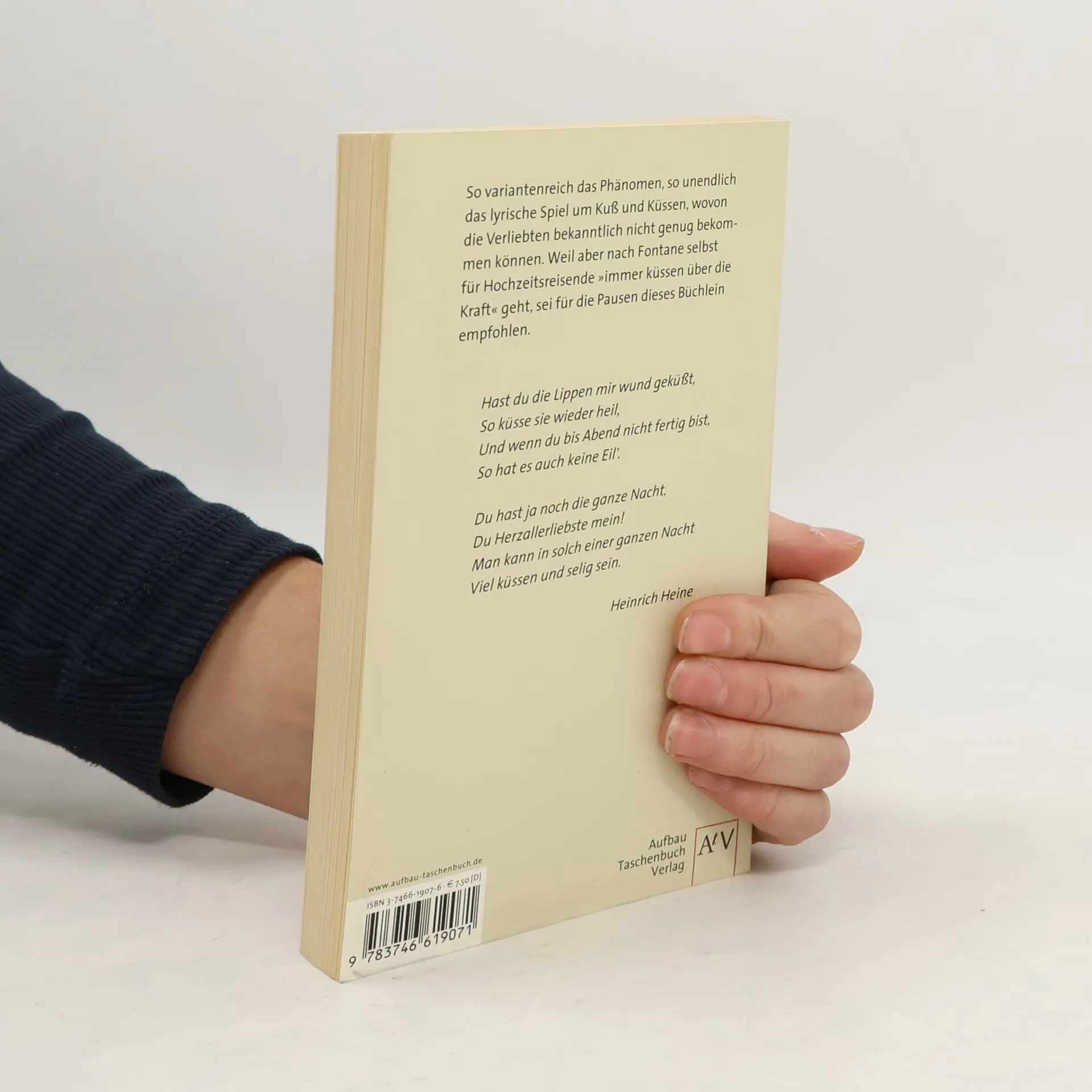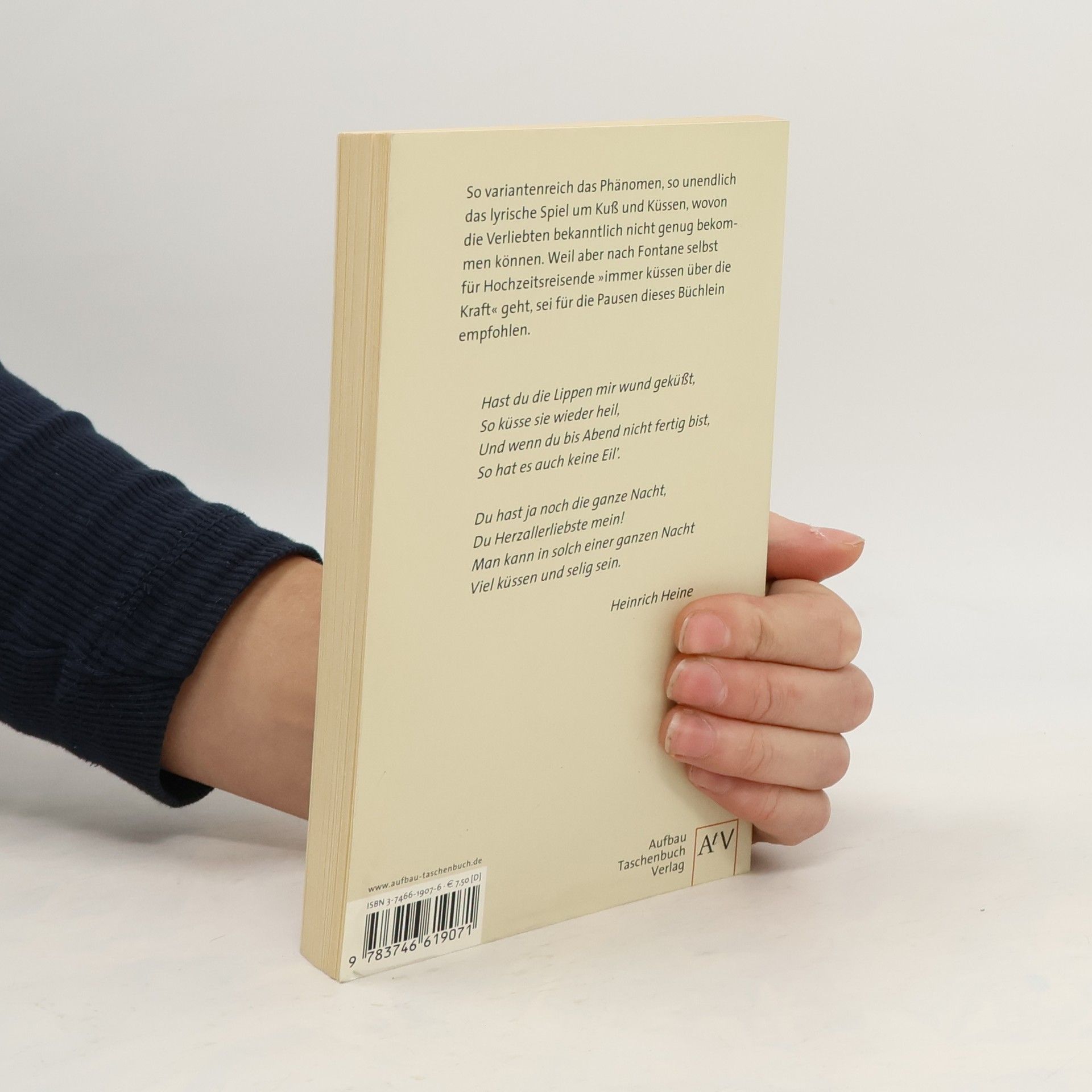 So variantenreich das Phänomen, so unendlich das lyrische Spiel um Kuss und Küssen, wovon die Verliebten bekanntlich nicht genug bekommen können. In den vergangenen Jahrhunderten wurde der Kuss nicht weniger überschwenglich besungen als in der Gegenwart. Da aber nach Fontane selbst für Hochzeitsreisende "immer küssen über die Kraft" gehe, sei für die Pausen dieses Büchlein empfohlen.§Mit Gedichten von Goethe, Brentano, C. F. Meyer, Ricarda Huch, Else Lasker-Schüler, Morgenstern, Erich Fried, Ulla Hahn u. v. a.