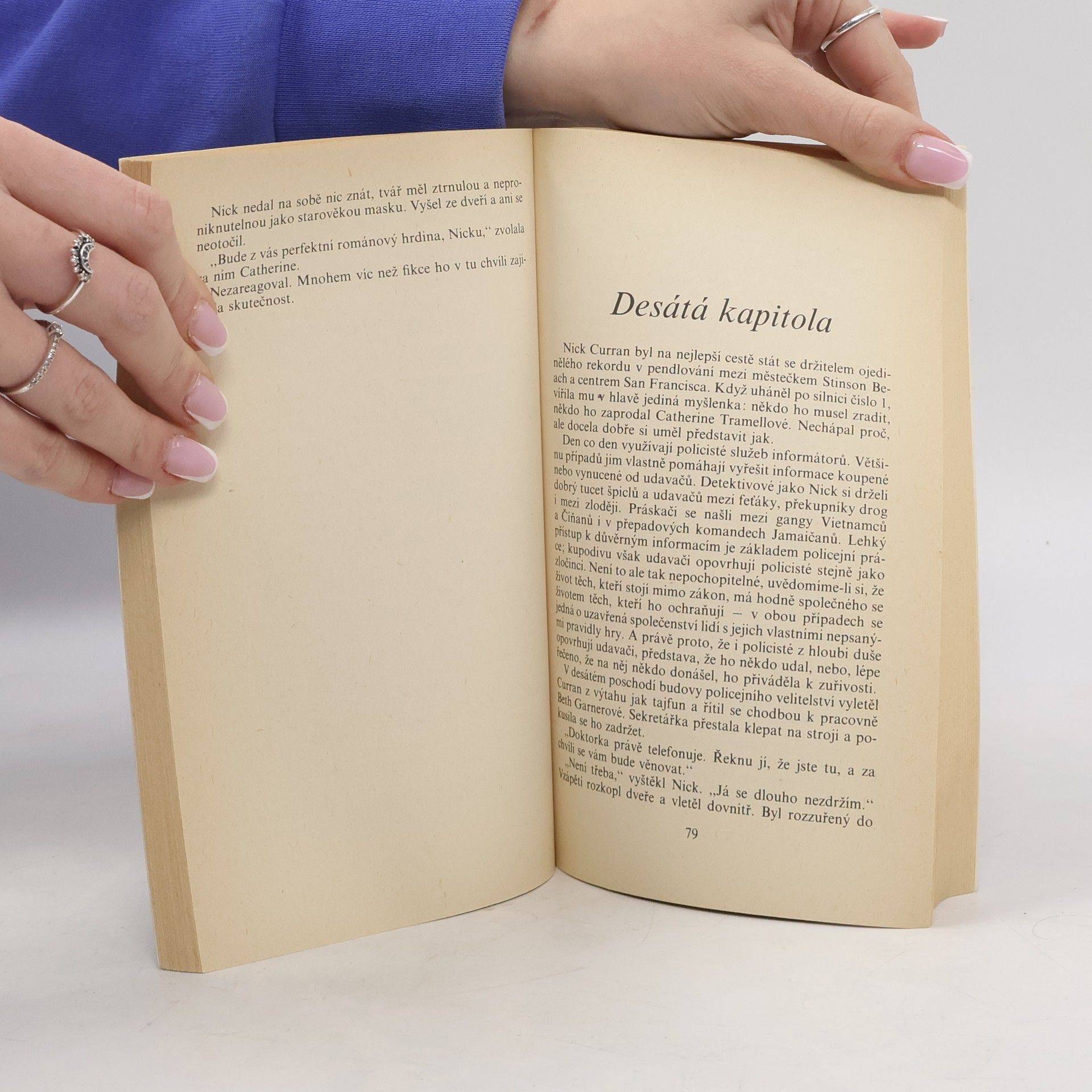 Román vznikl podle scénáře Joea Eszterhase k filmu. Krvavá scéna vraždy partnera přeruší milování detektiva Nicka Currana a jeho partnera Guse. Následuje výslech milenky oběti, úspěšné spisovatelky Catheriny Tramellové, která si s policejním oddělením pohrává. Catherina, psycholožka bez spodního prádla, ve své poslední knize detailně popsala stejnou vraždu. Její podivné milostné vztahy a spojení s muži i ženami vzbuzují podezření. Psychologická stránka zločinu se snaží rozkrýt policejní psychiatrička a Nickova bývalá milenka Beth Garnerová. Nick odhaluje shody mezi Catherininými knihami a osobami v jejím okolí, které mají co do činění s vraždami a úmrtími. Je stále více přitahován k Catherině a stává se jejím milencem. Catherina odhaluje Nickovu temnou minulost, včetně nešťastného zastřelení nevinných osob. Navíc mu sděluje, že její nový román bude o detektivovi, který se zamiluje do své budoucí vražedkyně. Nick se nevzdává, ani když jeho vinou zkrachuje policejní akce a on ztrácí práci na případu. Po vraždě jeho parťáka Guse se Nick snaží rozplést síť psychopatů, lesbiček a vrahů, aby zjistil, kdo a proč vraždil.