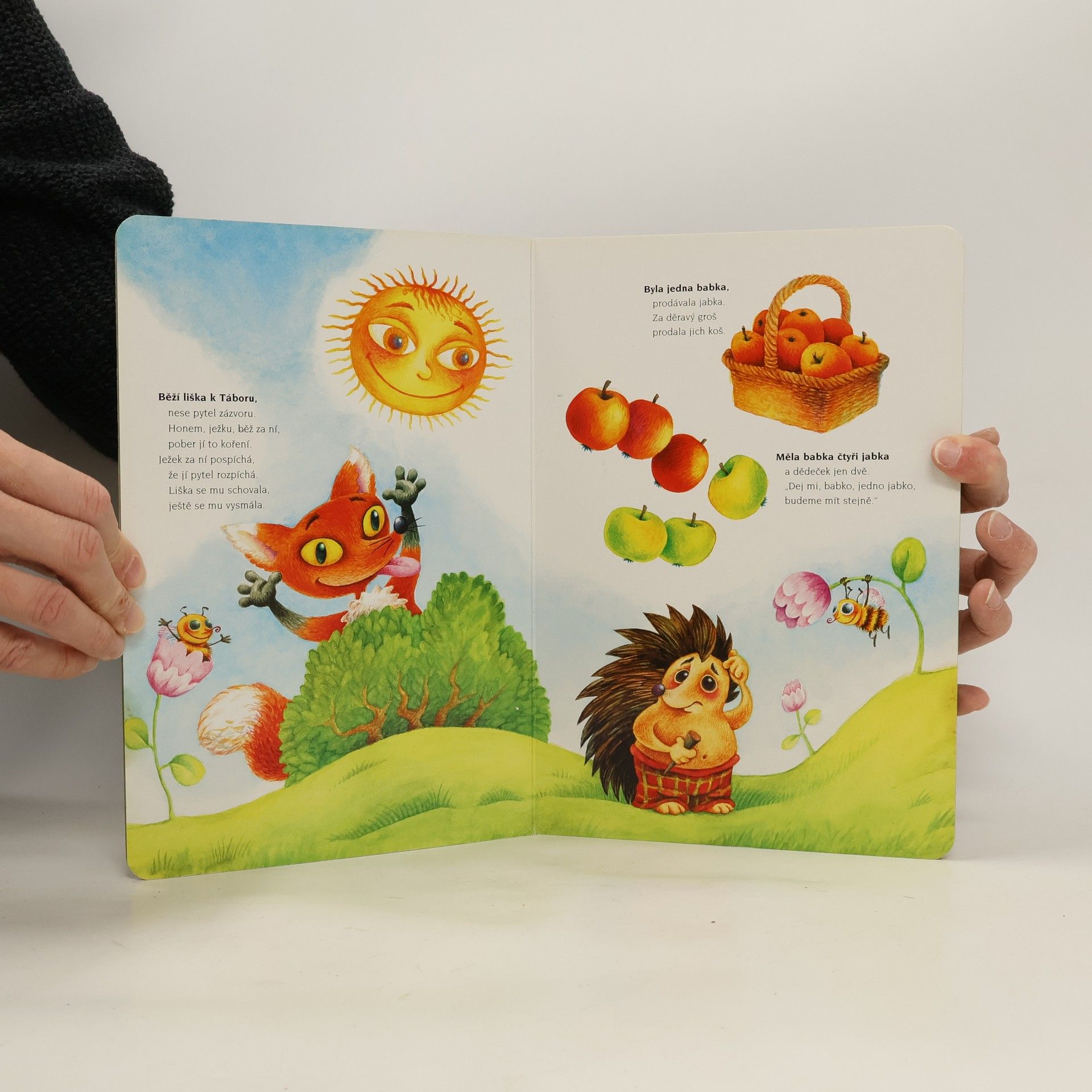 Vkusně ilustrované leporelo s výběrem nejkrásnějších českých říkadel a písniček, jako jsou Já do lesa nepojedu, Náš táta šel na houby nebo Žežuličko, kde jsi byla...