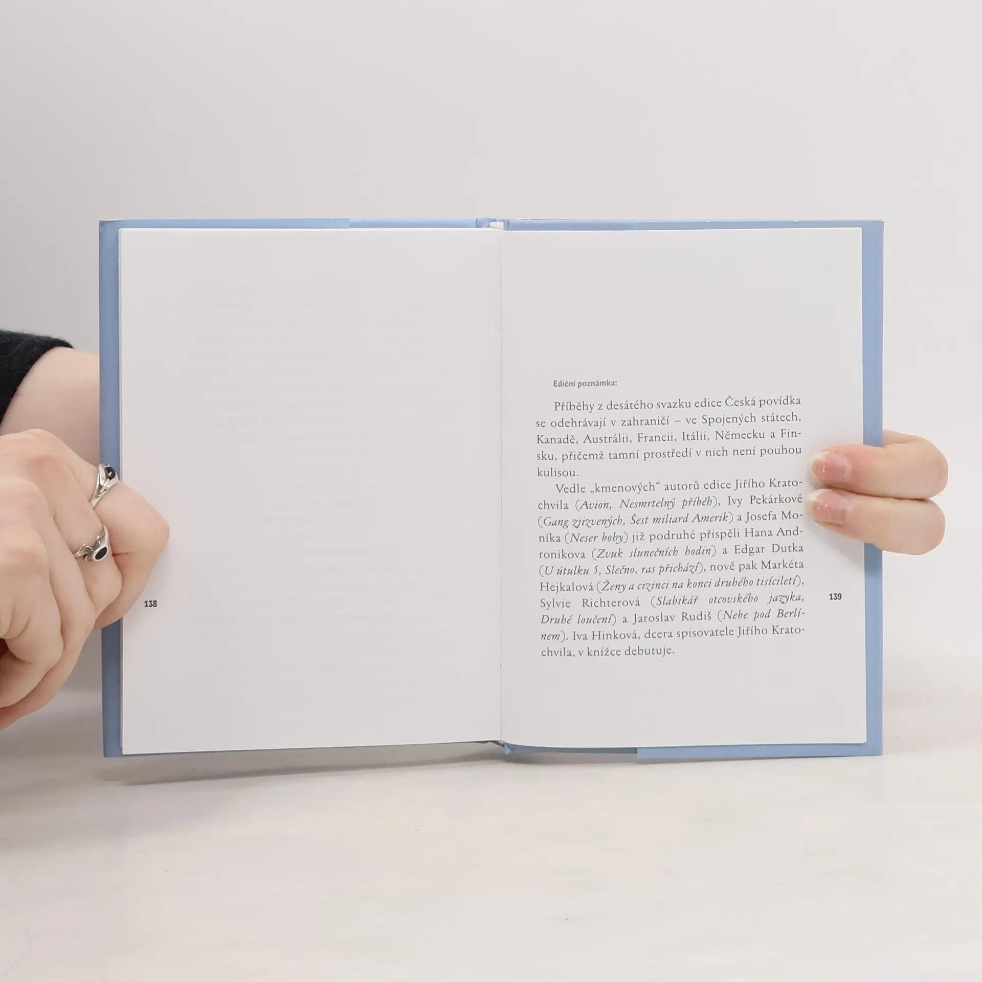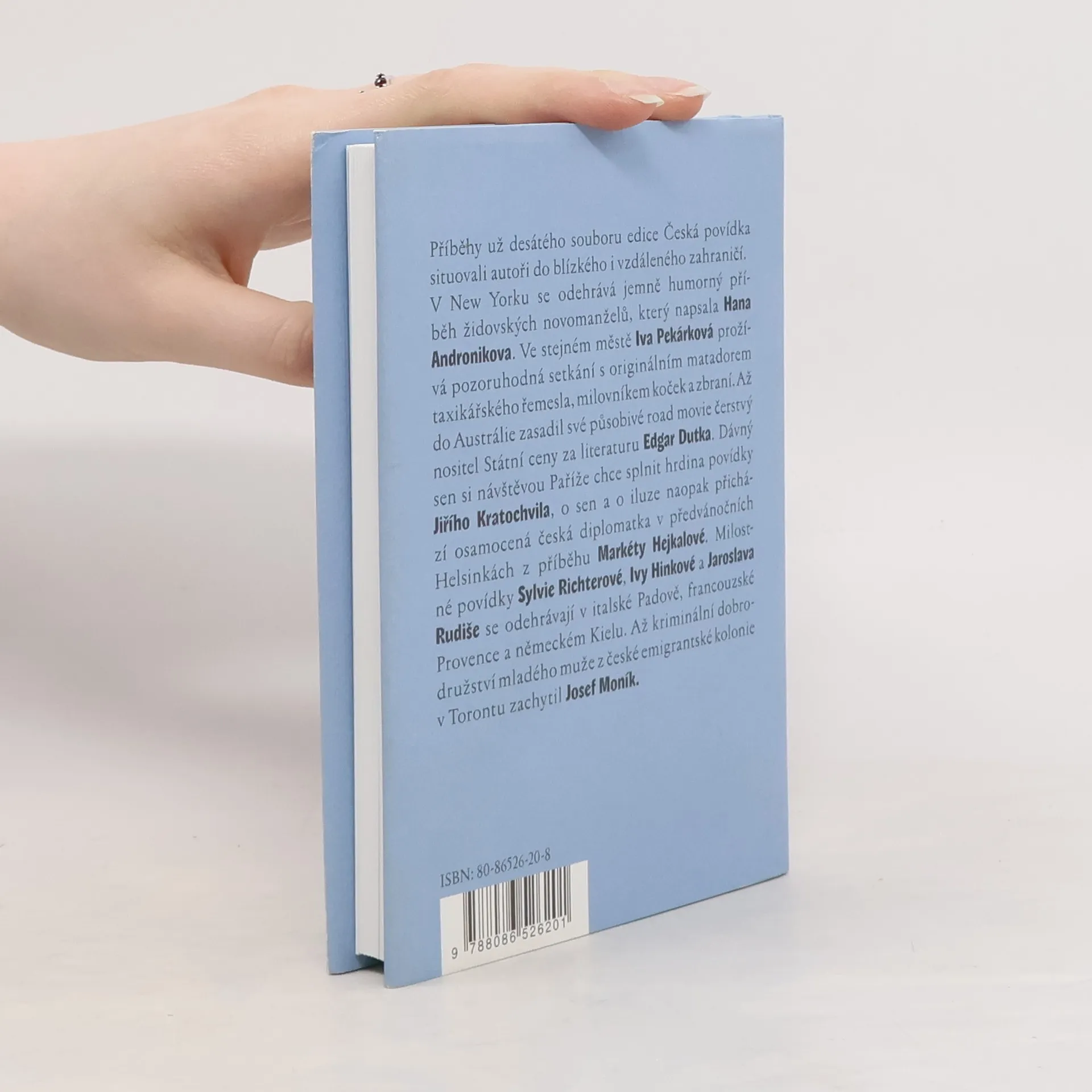 Desátý soubor edice Česká povídka přináší prózy, věnované prožitkům českého člověka za hranicemi republiky v podobě zajímavých příběhů emigrantů nebo turistů, kteří si výletem do ciziny plní své dávné sny. Devět současných českých autorů (Hana Andronikova, Jaroslav Rudiš, Jiří Kratochvil, Iva Pekárková, Edgar Dutka, Iva Hinková, Josef Moník, Markéta Hejkalová a Sylvie Richterová) staví své hrdiny do nezvyklých kulis Kanady, USA, Austrálie a západní Evropy a konfrontuje jejich představy s mnohdy nepředvídanou realitou. Stylově se prózy pohybují ve škále od jemného humoru přes cestovní dojmy, milostnou či téměř kriminální zápletku až k lehce nostalgické reflexi.... celý text
