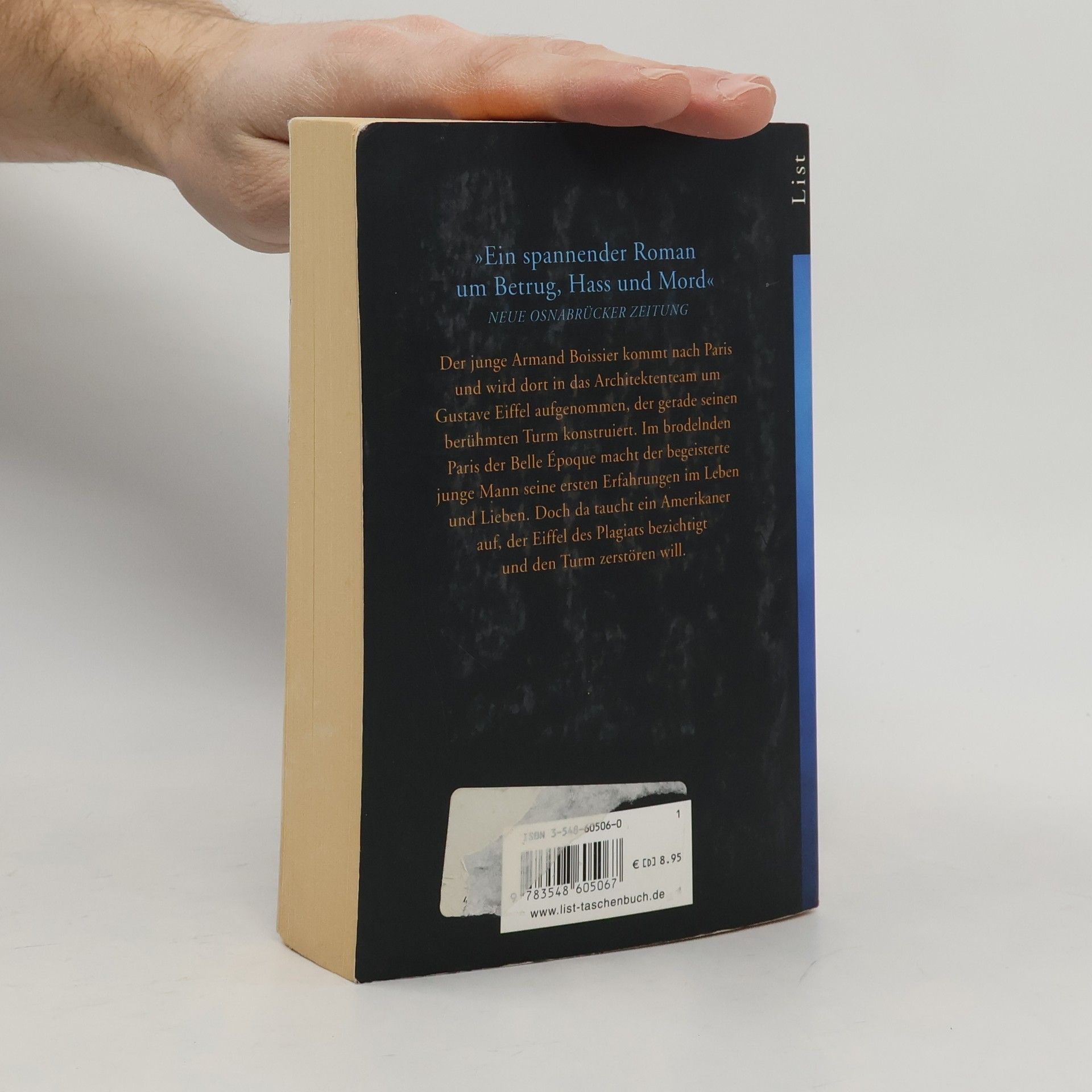 Der junge Armand Boissier kommt nach Paris und wird dort in das Architektenteam um Gustave Eiffel aufgenommen, der gerade seinen berühmten Turm konstruiert. Im brodelnden Paris der Belle Epoque macht der begeisterte junge Mann seine ersten Erfahrungen im Leben und Lieben. Doch da taucht ein Amerikaner auf, der Eiffel des Plagiats bezichtigt und den Turm zerstören will. Das Phantom des Eiffelturms wurde in Frankreich mit dem Preis für den besten historischen Roman 2002 ausgezeichnet.