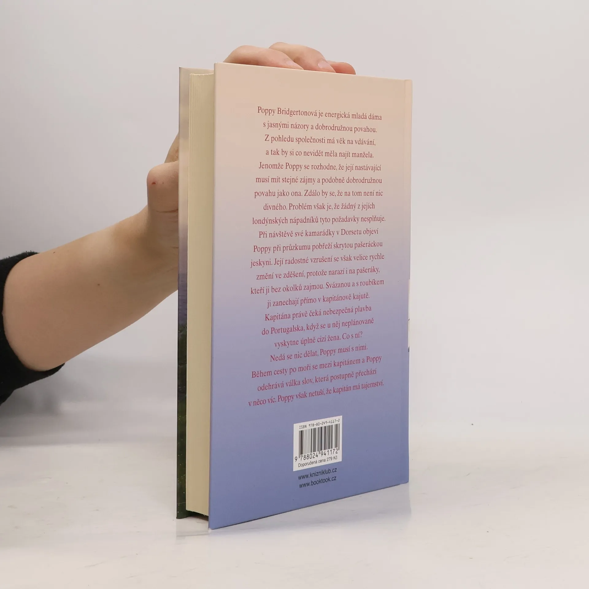 Poppy Bridgertonová je energická mladá dáma s jasnými názory a s dobrodružnou povahou. Z pohledu společnosti má věk na vdávání, a tak by si co nevidět měla najít nápadníka. Jenomže Poppy se rozhodne, že její nastávající musí mít stejné zájmy a podobně dobrodružnou povahu jako ona. Zdálo by se, že na tom není zas tak nic divného. Problém však je, že žádný z jejích londýnských nápadníků tyto požadavky nesplňuje. Při návštěvě svých známých v Dorsetu objeví Poppy při průzkumu pobřeží skrytou pašeráckou jeskyni. Její radostné vzrušení se však velice rychle změní ve zděšení, protože narazí i na pašeráky, kteří ji bez okolků zajmou. Svázanou a s roubíkem ji zanechají přímo v kapitánově kajutě. Jaké je poté překvapení kapitána Andrewa Jamese Rokesbyho, když najde Poppy ve své kajutě. Kapitán tajně přepravuje pro britskou vládu citlivé dokumenty a právě ho čeká nebezpečná plavba do Portugalska, když se u něj neplánovaně vyskytne úplně cizí žena. Co s ní? Nedá se nic dělat, Poppy musí s nimi. Během cesty po moři se mezi Andrewem a Poppy odehrává válka slov, která však postupně přechází v něco víc. Poppy však netuší, že Andrew má tajemství.