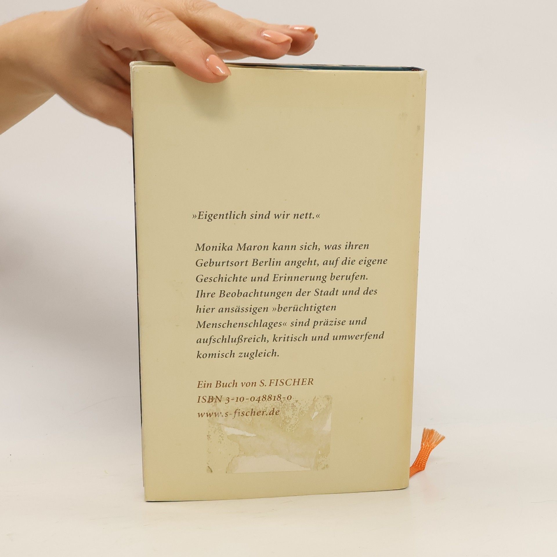 „Berlin ist bekannt für seine Kneipen, seine Hunde, die berüchtigte Berliner Schnauze und natürlich für die Mauer, die es aber nicht mehr gibt.“ Berlin und die Berliner: ein idealer Gegenstand für Monika Maron. Sie hat den größten Teil ihres Lebens in dieser Stadt verbracht, kann sich für Berlin-Ost wie Berlin-West auf die eigene Geschichte und Erinnerung berufen, und ihre genaue Beobachtungsgabe, ihr untrüglicher Sinn für Widersprüche, ihre pointierte Art des ironischen Formulierens prädestinieren sie geradezu für den kritischen, selbstkritischen Blick auf diese ganz besondere Stadt und ihre Bürger - sämtliche Klischees vom Berliner miteingeschlossen. Es ist der Erzählstil dieser Texte, der sie so authentisch macht, denn nicht nur die Dialekteinsprengsel, sondern der ganze Ton in seiner Mischung aus Trockenheit, Frechheit, Ironie und Ruppigkeit ist urberlinisch. Und das heißt: oft eben auch sehr komisch.