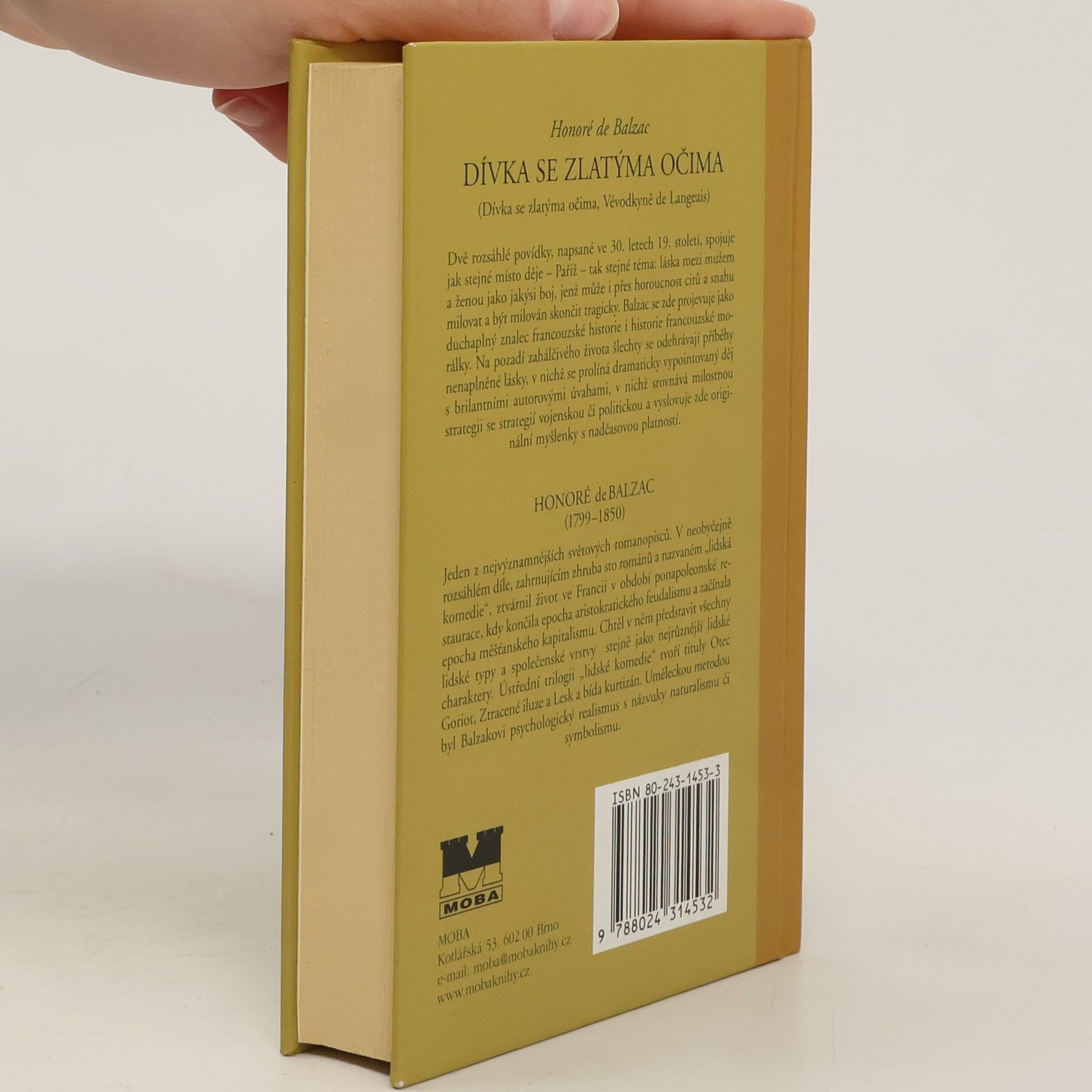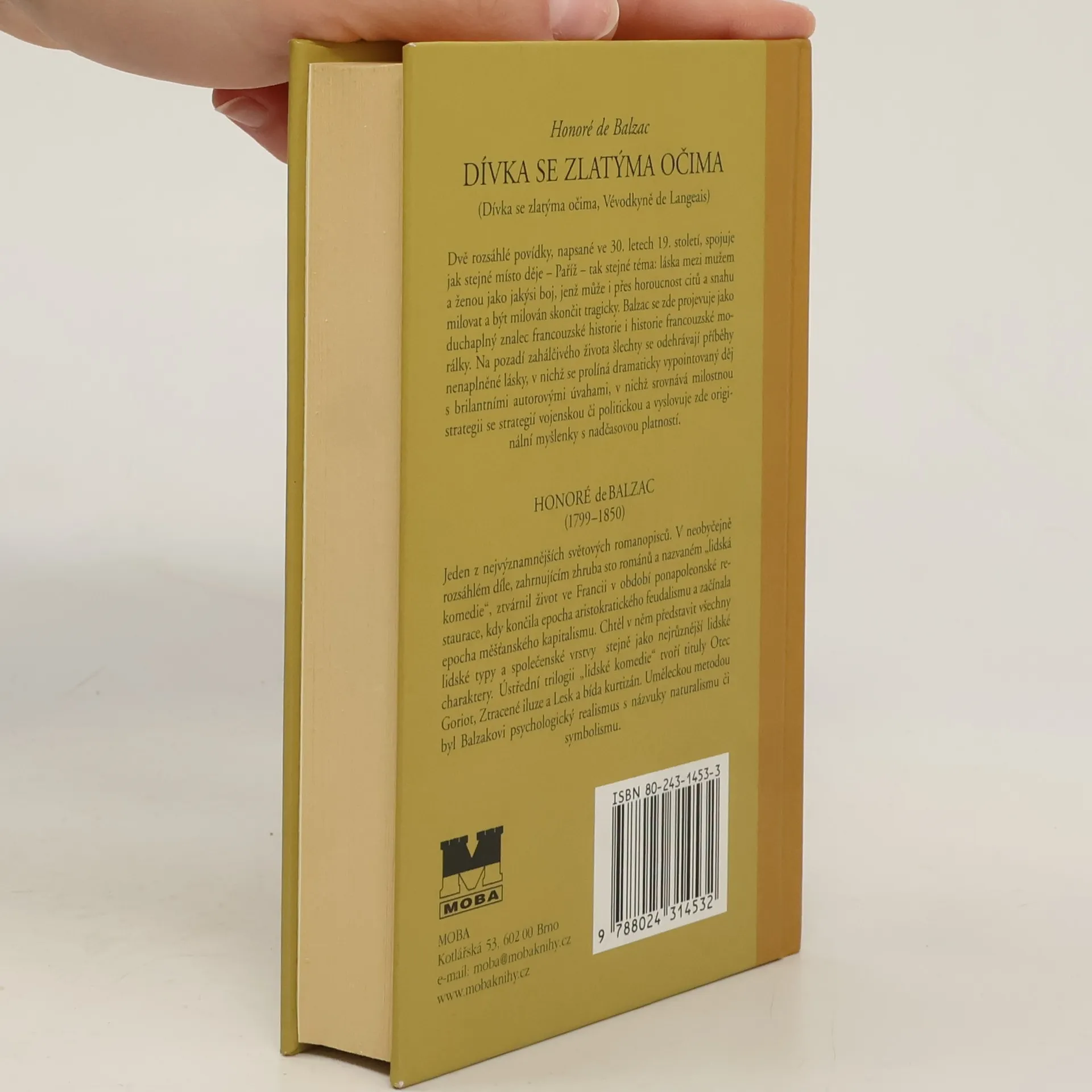 Knížka obsahuje dvě méně známé rozsáhlé povídky Dívka se zlatýma očima (1835) a Vévodkyně de Langeais (1834) z díla velkého francouzského romanopisce, které vznikly ve 30. letech 19. století. Obě povídky spojuje nejen doba děje – období ponapoleonské restaurace a počátky měšťanského kapitalismu, ale i místo děje – Paříž a tragický milostný motiv. Autor popisuje v obou povídkách milostný vztah jako instinktivní zápas mezi mužem a ženou, který může i přes vášnivost citu a upřímnou snahu milovat a být milován, skončit tragicky. Na realistickém pozadí zahálčivého života francouzské šlechty kreslí dva příběhy nenaplněné lásky, v nichž se prolíná dramaticky vrcholící děj s autorovými úvahami o milostné strategii, kterou srovnává s vojenskou či politickou taktikou a projevuje se jako brilantní znalec a zároveň i kritik francouzské soudobé morálky.