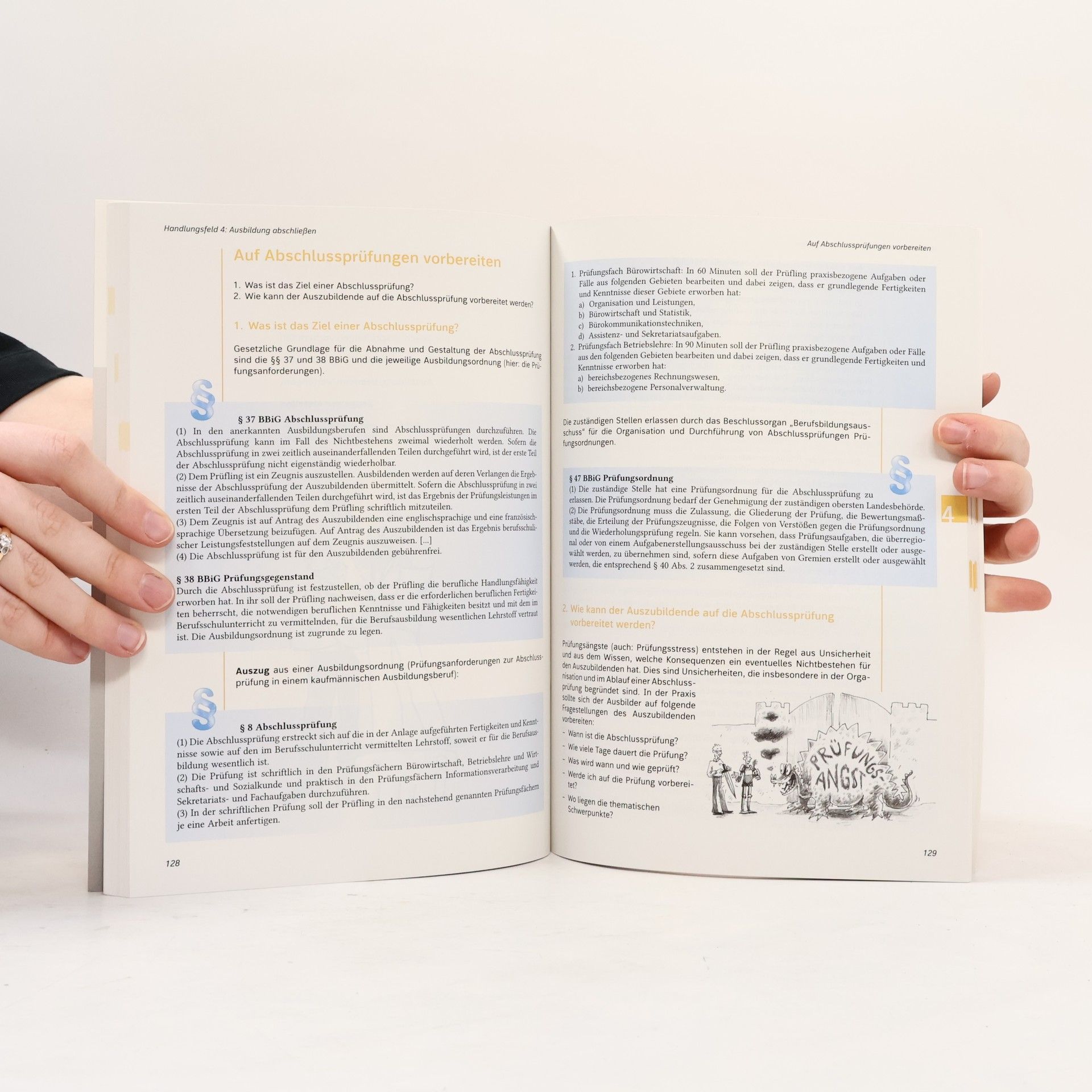 vermittelt alle Lerninhalte der berufs- und arbeitspädagogischen Qualifikationen, die für das erfolgreiche Bestehen der Ausbildereignungsprüfung relevant sind wendet sich sowohl an Lehrgangsteilnehmende zur Vorbereitung auf die AEVO-Prüfung als auch an Unterrichtende und Ausbilder/-innen orientiert sich an den 4 Handlungsfeldern : Ausbildungsvoraussetzungen prüfen, Ausbildung vorbereiten, durchführen und abschließen mit praxisorientierten Fallbeispielen berücksichtigt die Gesetzesänderungen des BBiG aus 2020
