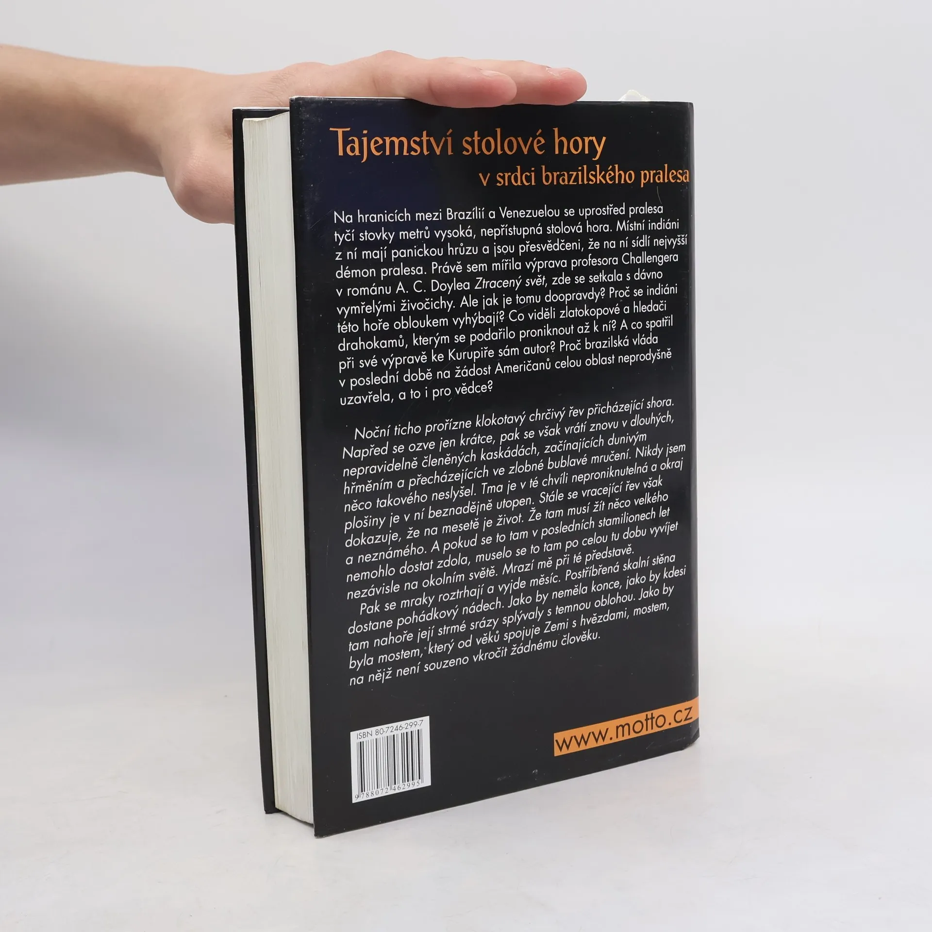 Uprostřed amazonských pralesů se tyčí nepřístupná stolová hora, která vzbuzuje panickou hrůzu místních indiánů, přesvědčených o přítomnosti nejvyššího démona pralesa. Tato hora byla cílem výpravy profesora Challengera v románu A. C. Doylea, kde se setkal s dávno vymřelými živočichy. Proč se indiáni této hory vyhýbají? Jaké hrůzy spatřili zlatokopové a hledači drahokamů, kteří se k ní dostali? A co viděl autor při své vlastní výpravě? V poslední době brazilská vláda na žádost Američanů oblast uzavřela, dokonce i pro vědce. Noční ticho přeruší podivný, chrčivý řev přicházející shora, který se vrací v dlouhých kaskádách, začínajících dunivým hřměním a přecházejících ve zlobné bublání. Tma je neproniknutelná a okraj plošiny mizí v temnotě, avšak řev dokazuje, že na mesetě je život – něco velkého a neznámého. Pokud se to tam v posledních stamilionech let nemohlo dostat zdola, muselo se vyvíjet nezávisle na okolním světě. Představa o tom mrazí. Když se mraky roztrhnou a vyjde měsíc, skalní stěna získává pohádkový nádech. Vypadá jako most spojující Zemi s hvězdami, most, na nějž není souzeno vkročit žádnému člověku.