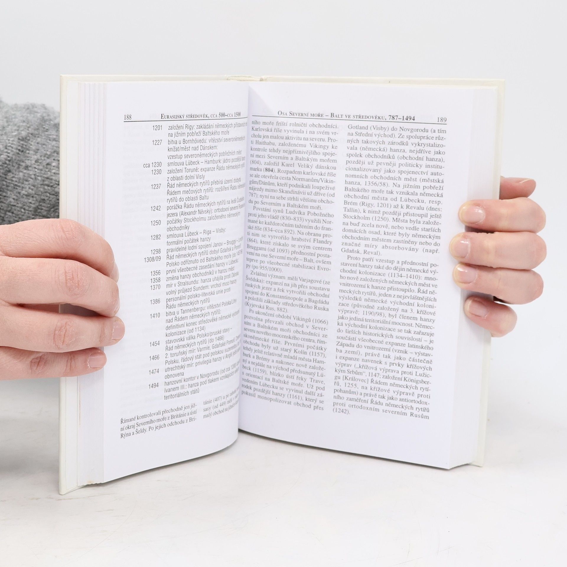 Ve 112 chronologicky řazených kapitolách vychází autor, německý historik, profesor brémské univerzity, ze základní periodizace dějin na tři epochy: doba předdějinná (od počátků lidstva k prvním rozvinutým kulturám), doba nadvlády Předního východu (starověký Východ, euroasijská antikaa euroasijský středověk) a doba nadvlády nového Západu (od expanze Evropy do zámoří k předvečeru francouzské revoluce, od francouzské revoluce k předvečeru první světové války, od první světové války do současnosti). Nepříliš rozsáhlé kapitoly obsahují základní data a stručný výklad nejdůležitějších událostí týkajících se daného období a tématu, se zdůrazněním vzájemných vztahů, souvislostí a přesahů časových i místních. Příručka určená především studentům jako úvod do studia historie shrnuje základní fakta z autorovy předchozí šestidílné práce Dějiny na dosah. Přílohy obsahují klíčová data světových dějin, přehledy k dějinám států, seznamy vládců a státníků důležitých států (říší) a papežů (výběr) a historická schémata. Chronologicky řazený seznam základní, především německy psané literatury doplňuje výběrová bibliografie v češtině. Publikace je vybavena jmenným rejstříkem.