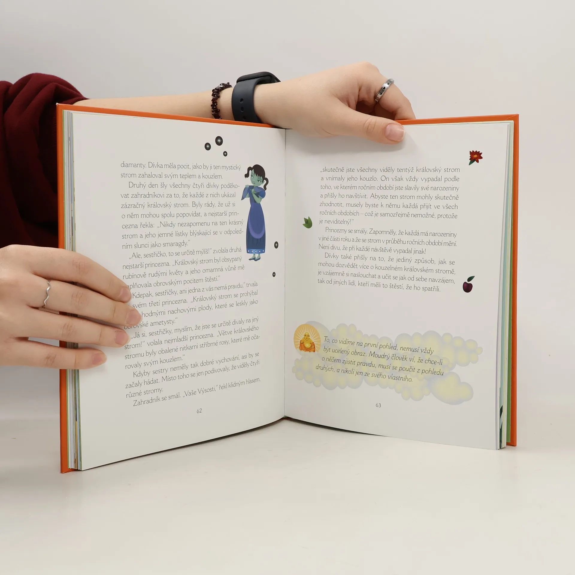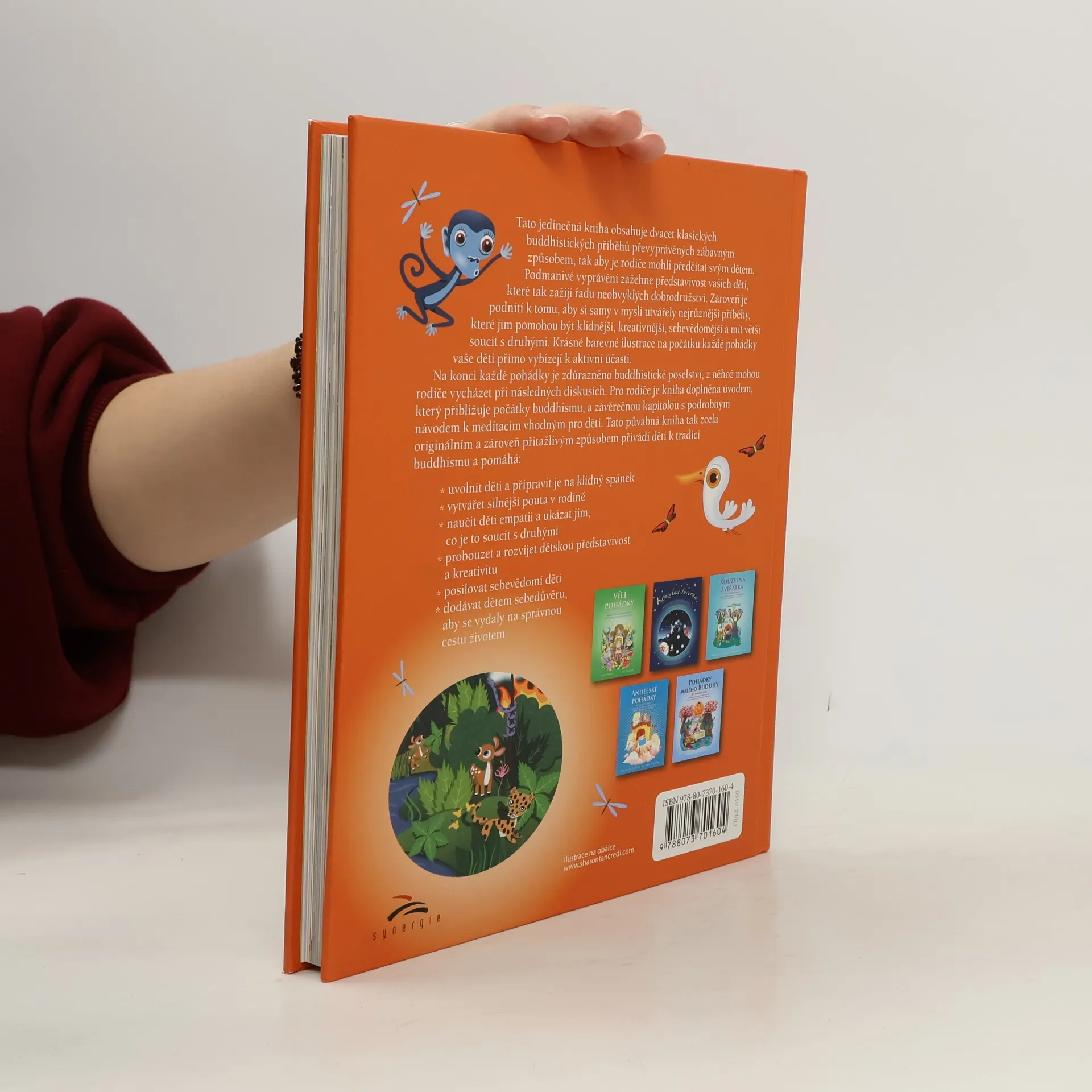 Tato kniha obsahuje dvacet klasických buddhistických příběhů převyprávěných zábavným způsobem, tak aby je rodiče mohli předčítat svým dětem. Podmanivé vyprávění podnítí představivost vašich dětí, které tak zažijí řadu neobvyklých dobrodružství. Zároveň je podnítí k tomu, aby si samy v mysli utvářely nejrůznější příběhy, které jim pomohou být klidnější, kreativnější, sebevědomější a mít větší soucit s druhými. Krásné barevné ilustrace na počátku každé pohádky vaše děti přímo vybízejí k aktivní účasti. Na konci každé pohádky je zdůrazněné buddhistické poselství, z něhož mohou rodiče vycházet při následných diskusích. Pro rodiče je kniha doplněna úvodem, který přibližuje počátky buddhismu a závěrečnou kapitolou s podrobným návodem k meditacím vhodným pro děti. Tato půvabná kniha tak zcela originálním a zároveň přitažlivým způsobem přivádí děti k tradici buddhismu a pomáhá: uvolnit děti a připravit je na klidný spánek vytvářet silnější pouta v rodině naučit děti empatii a ukázat jim, co je to soucit s druhými probouzet a rozvíjet dětskou představivost a kreativitu posilovat sebevědomí vašich dětí dodávat dětem sebedůvěru, aby se vydalo na správnou cestu životem.