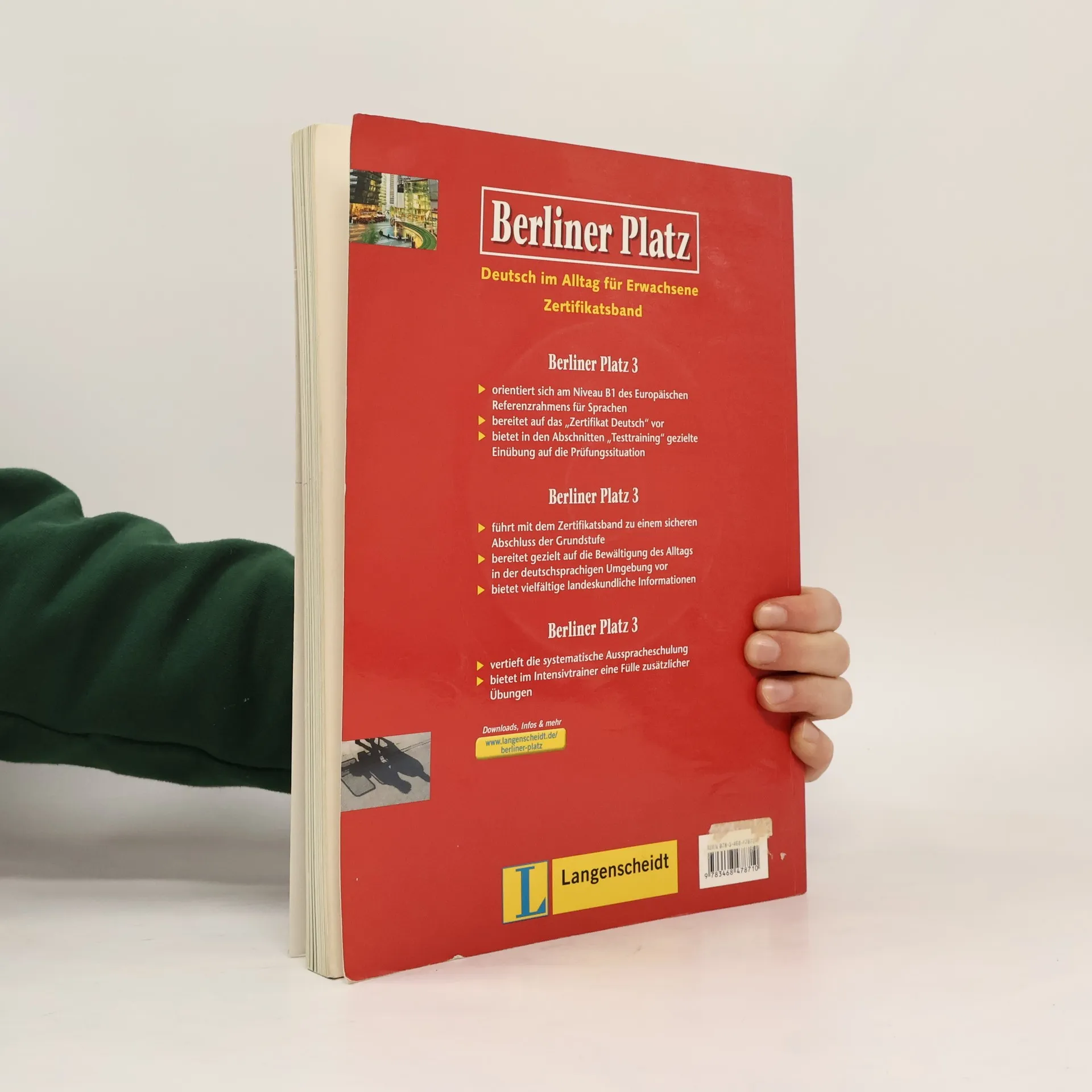 Berliner Platz 3 orientiert sich am Niveau B1 des Europäischen Referenzrahmen für Sprachen, bereitet auf das "Zertifikat Deutsch" vor, bietet in den Abschnitten "Testtraining" gezielte Einübung auf die Prüfungssituation, führt mit dem Zertifikatsband zu einem sicheren Abschluss der Grundstufe, bietet vielfältige landeskundliche Informationen