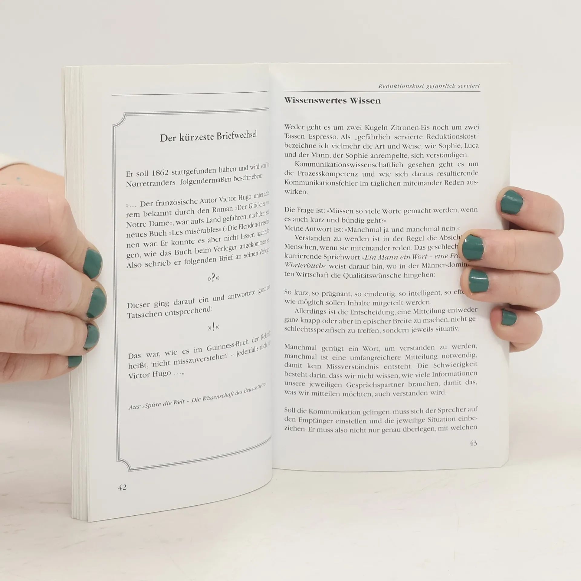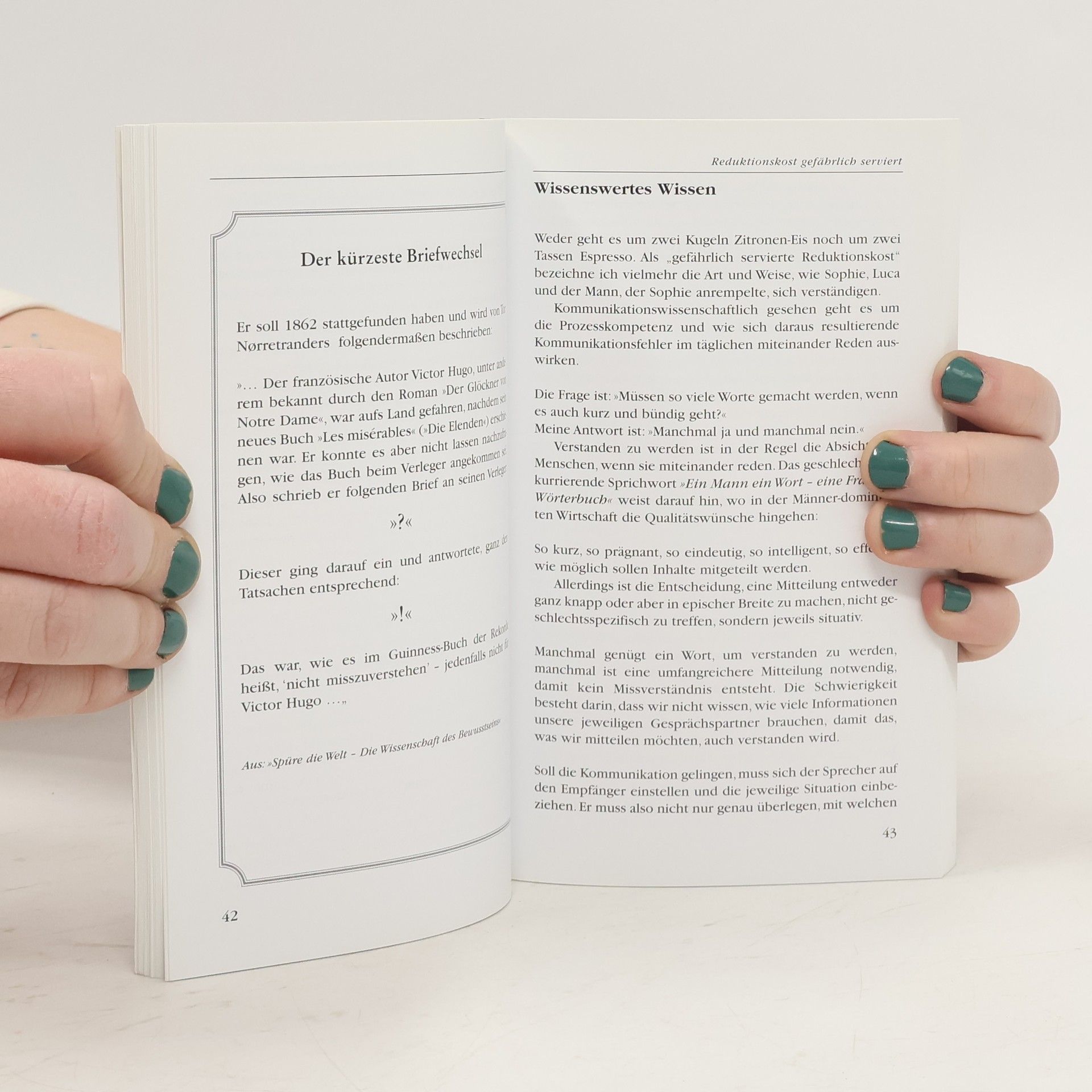 Haben Sie schon einmal von einem groben Chef so abgekanzelt worden, dass Sie entnervt zurückgeschrien haben? Oder hat Ihnen ein unfreundlicher Verkäufer so zugesetzt, dass Sie wütend das Geschäft verlassen haben? In solchen Situationen haben Sie eine "Sprechsau" ausgepackt, sich geärgert und sich damit selbst ins Unrecht gesetzt. Missverständnisse und Streitereien kosten Zeit, Nerven und Geld. Christel Frey möchte dem ein Ende setzen, denn "schmutzige" Sprache belastet nicht nur das Privatleben, sondern führt auch im Berufsleben zu Reibungen. Mit "schmutziger" Sprache sind alltägliche Kommunikationssünden gemeint, bei denen viele Menschen nicht direkt sagen, was sie meinen, sondern ihre Botschaften in Mimik, Gestik und Ton verpacken. Die Angesprochenen reagieren oft instinktiv und geraten in gefährliche Kommunikationsfallen. Anhand von Geschichten aus dem Leben zeigt Frey, wie diese Fallen entstehen und wie man sie vermeiden kann. Unterstützt durch ihr zertifiziertes "I-A-S-Kommunikations-Balance-Modell" bietet sie Wege aus der täglichen Kommunikationsmisere. In seiner Mischung aus Alltagsgeschichten und wissenschaftlich fundierten Handlungsanweisungen ist das Buch unterhaltsam, informativ und niemals langweilig.