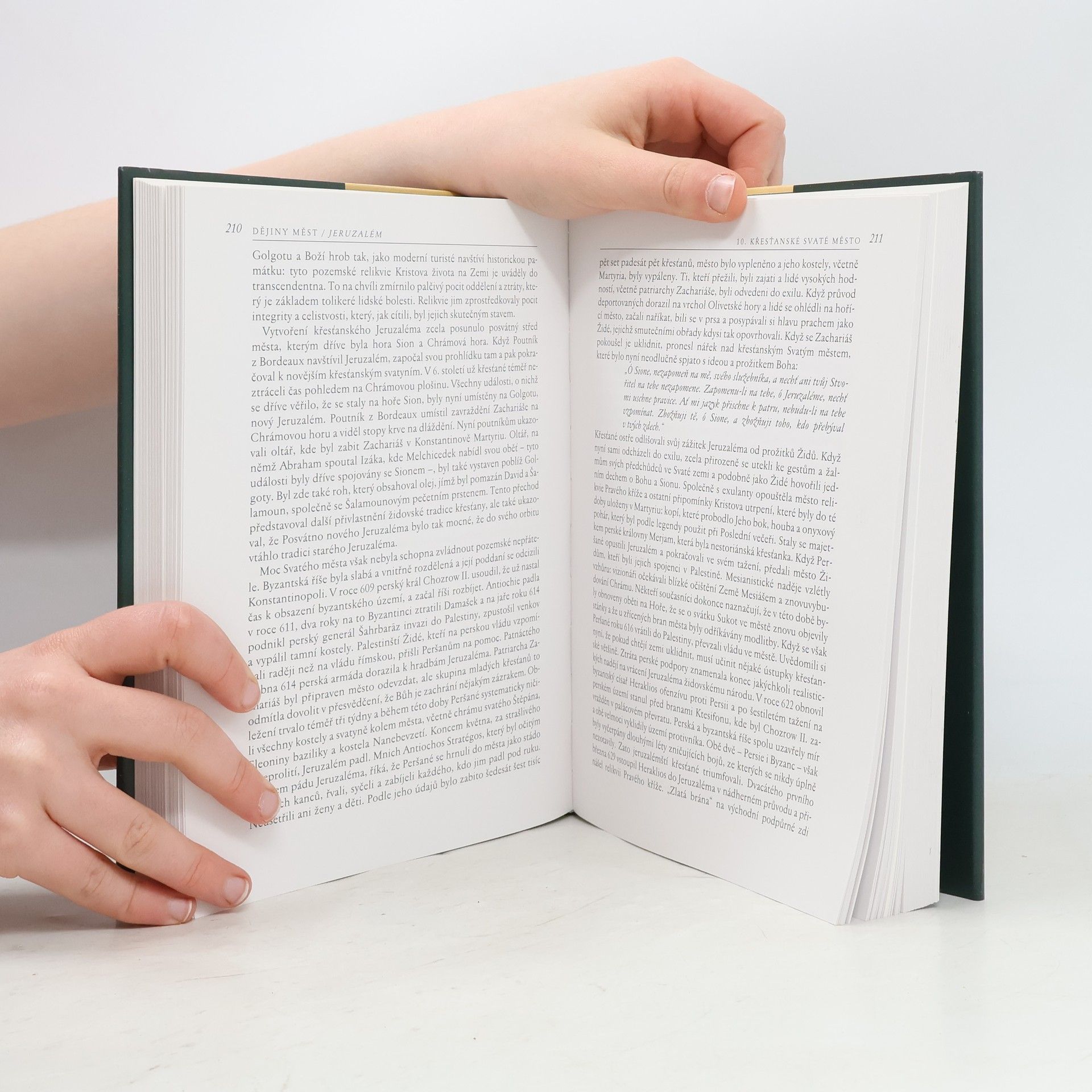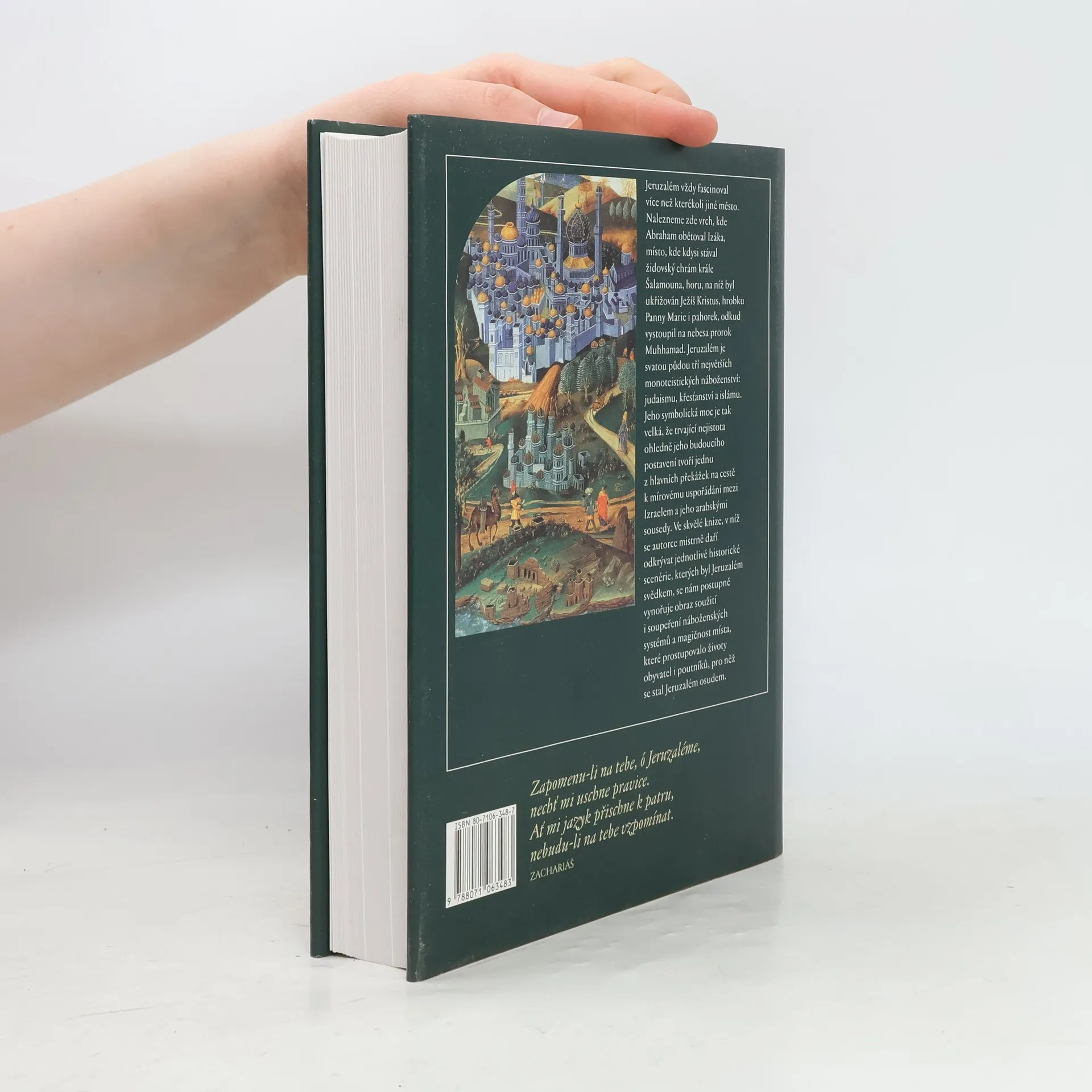 Dějiny posvátného města, které se stalo symbolem božství pro Židy, křesťany a muslimy. Dějiny města od biblických dob po neklidnou současnost, charakterizovanou židovsko-arabskými střety. Práce obsahuje nejenom historická fakta, ale je i jakýmsi hledáním duchovního rozměru hmotných dějin. Vytváří obraz města, které se stalo prostředkem identifikace víry.