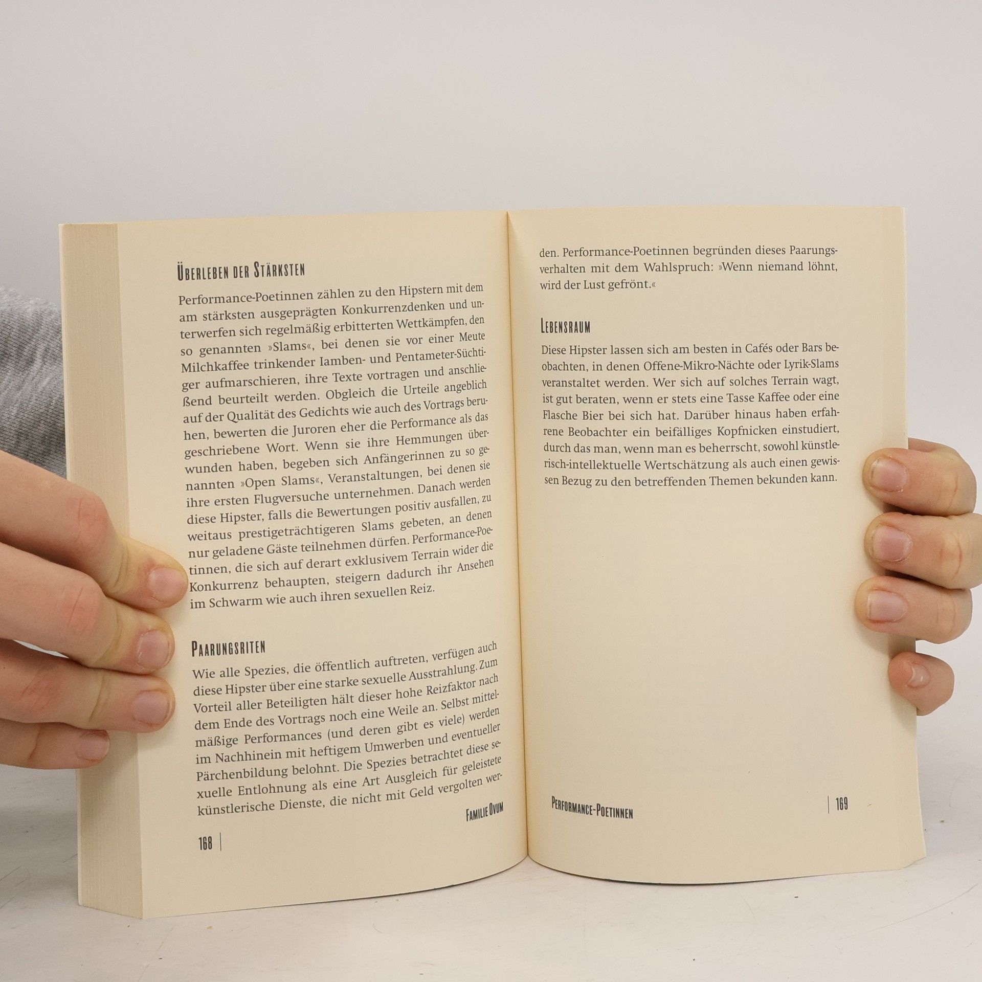 Endlich gibt es einen Bestimmungsführer durch die Welt der Szenegänger, der Hipster und solcher, die es gerne wären. Vom HipHopper über den Heavy-Metal-Fan, und vom Fahrradboten bis zum Internet-Freak, sie sind alle vertreten. Josh Aiello hat sich 35 dieser Typen wie ein Forscher akribisch angenommen, aber keine Sorge - dieses Buch macht vor allem eins: Spaß!