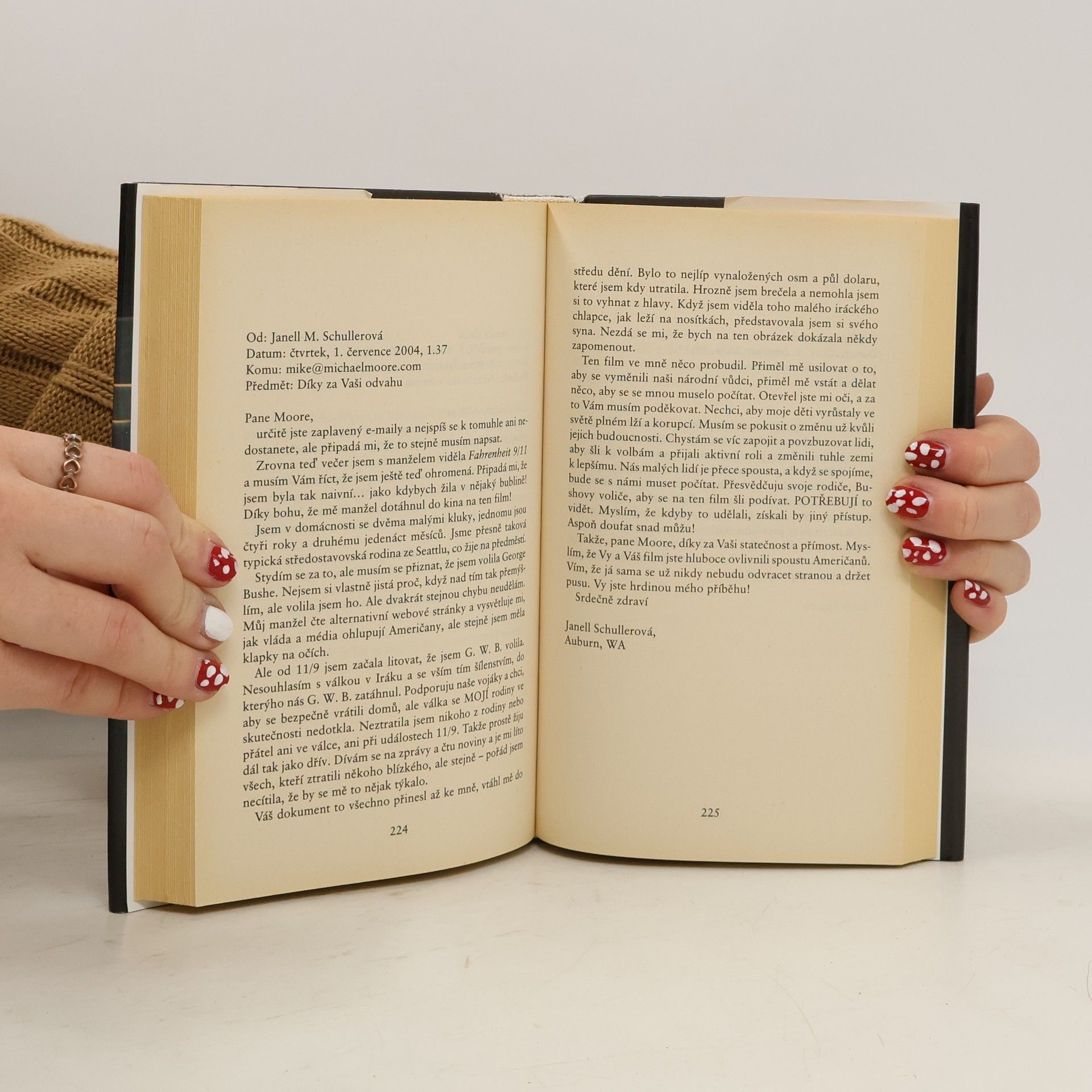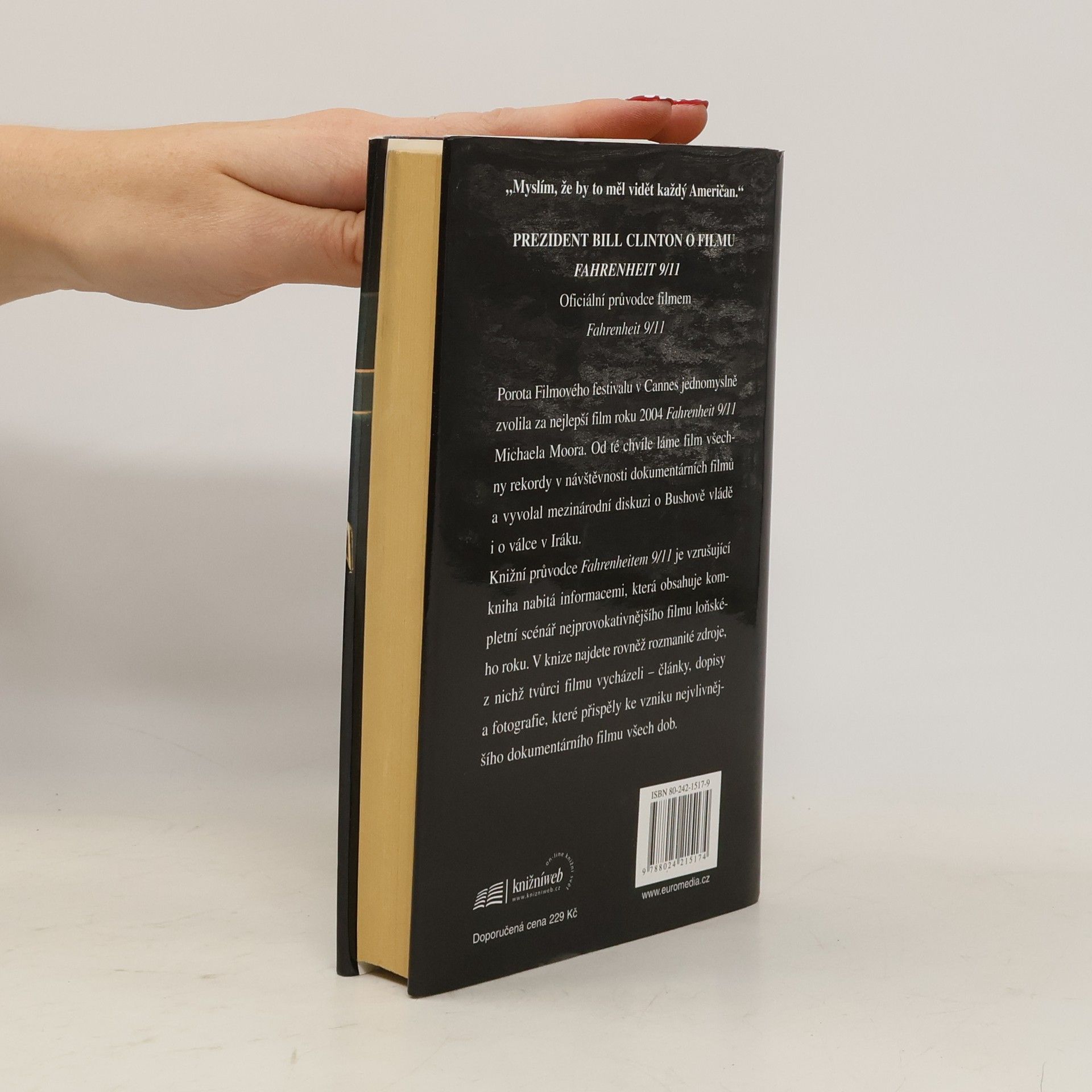 Knižní verze dokumentárního filmu Michaela Moorea, který obdržel Zlatou palmu na festivalu v Cannes. Michael Moore se v něm postavil proti politice svého prezidenta, proti válce v Iráku, proti zbytečnému zabíjení. Ve svém filmu nepokrytě útočí na lidské city. Nechává promluvit svědky válečných tragédií, mimo jiné matku jednoho z padlých amerických vojáků. Ačkoli si divák uvědomuje, že s jeho city je obratně manipulováno, pociťuje současně soucit, hrůzu, sounáležitost... Michael Moore nás přinutí přemýšlet. Nemusíme s ním nutně ve všem souhlasit, ale nezůstáváme lhostejní. Komentovaný scénář k filmu je doplněn dopisy diváků, kteří film shlédli a názory nejrůznějších osobností na současnou americkou zahraniční i domácí politickou strategii. Jako všechny knihy Michaela Moorea, i Fahrenheit 9/11 je strhující a inspirativní čtení.