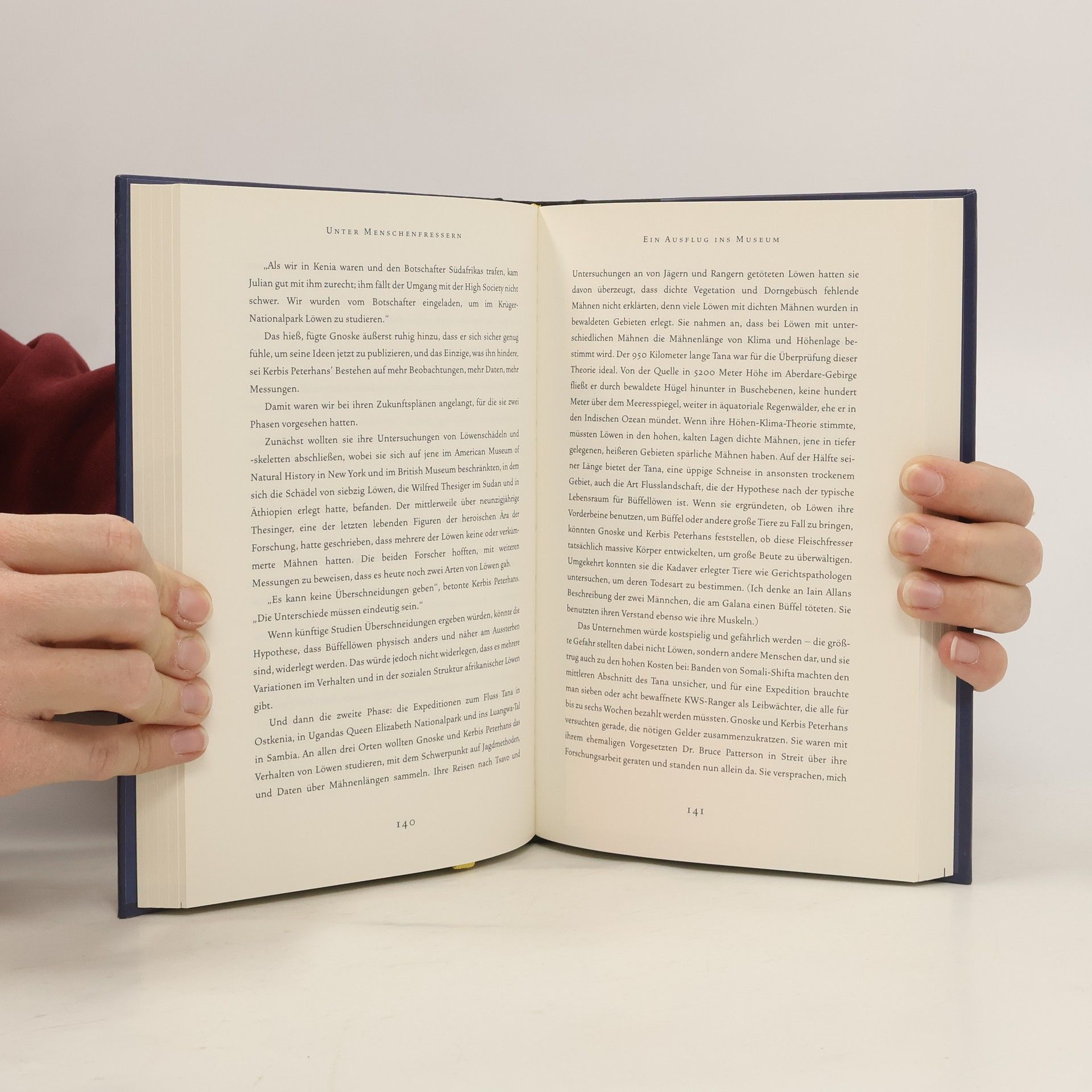 Bericht über die Löwen im Tsavo-Nationalpark in Kenia, deren Vorfahren zu Beginn des 20. Jahrhunderts 135 Menschen töteten. Der auf diesen Ereignissen basierende Bestseller von 1907 lieferte die Vorlage für den Kinofilm "Der Geist und die Dunkelheit" (USA; 1996)
