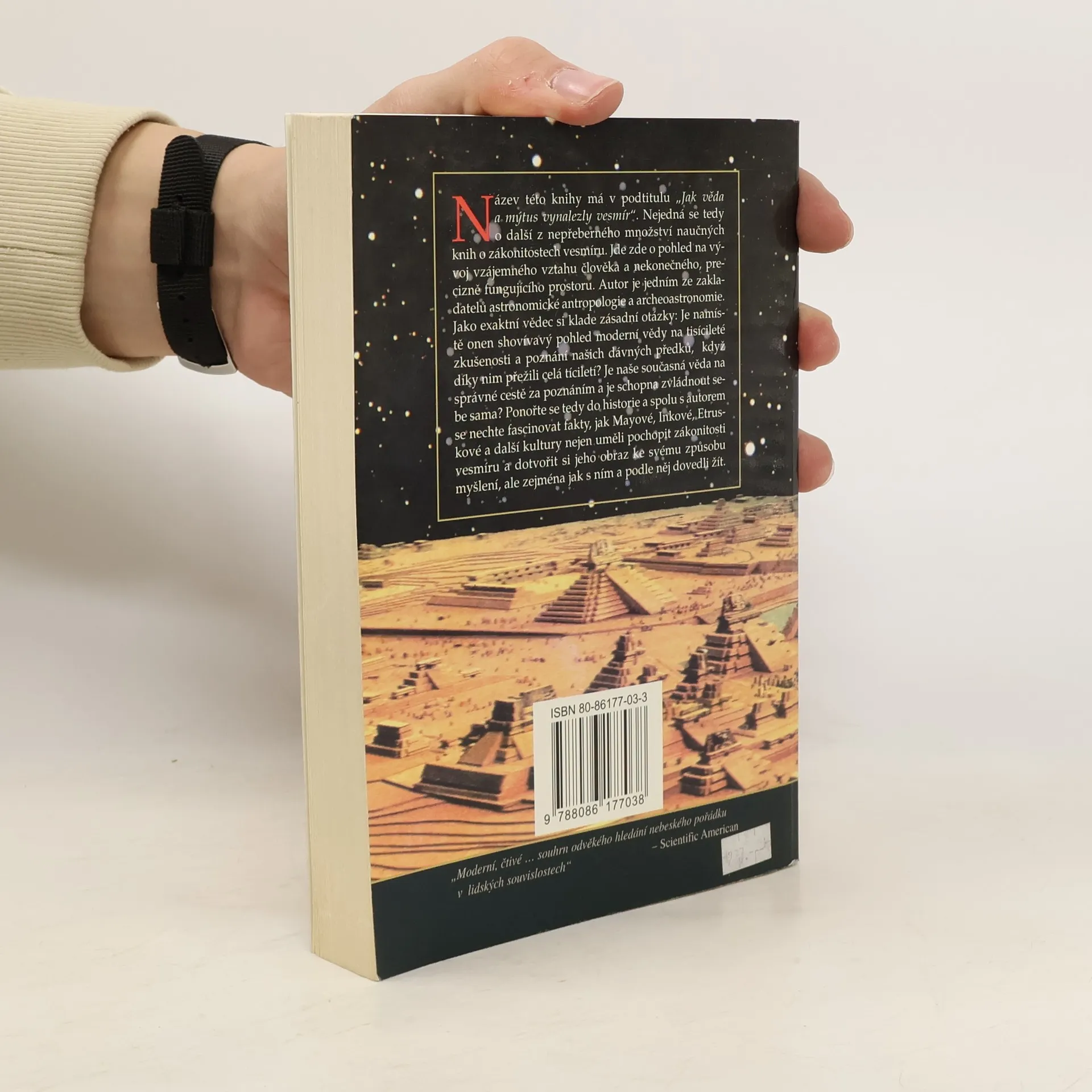 Název této knihy má v podtitulu "Jak věda a mýtus vynalezli vesmír". Nejedná se tedy o další z nepřeberného množství naučných knih o zákonitostech vesmíru. Jde zde o pohled na vývoj vzájemného vztahu člověka a nekonečného precizně fungujícího prostoru. Autor je jedním ze zakladatelů astronomické antropologie a archeoastronomie. Jako exaktní vědec si klade zásadní otázky: Je namístě onen shovívavý pohled moderní vědy na tisícileté zkušenosti a poznání našich dávných předků, když díky nim přežili celá tisíciletí? Je naše současná věda na správné cestě za poznáním a je schopna zvládnout sebe sama? ponořte se tedy do historie a spolu s autorem se nechte fascinovat fakty, jak Mayové, Inkové, Etruskové a další kultury nejen uměli pochopit zákonitosti vesmíru a dotvořit si jeho obraz ke svému způsobu myšlení, ale zejména jak s ním a podle něj dovedli žít.