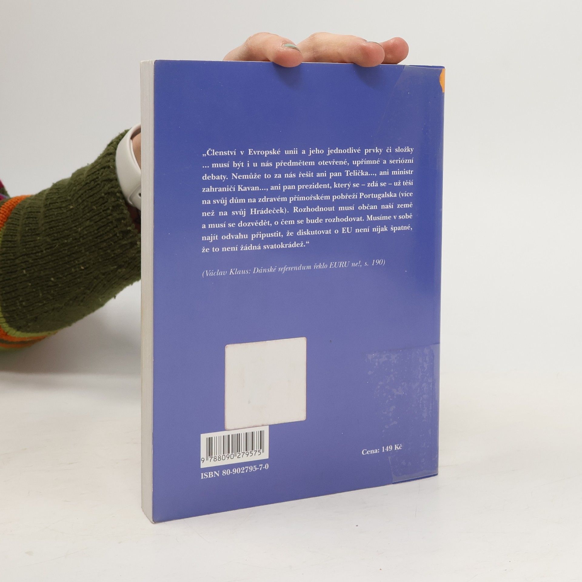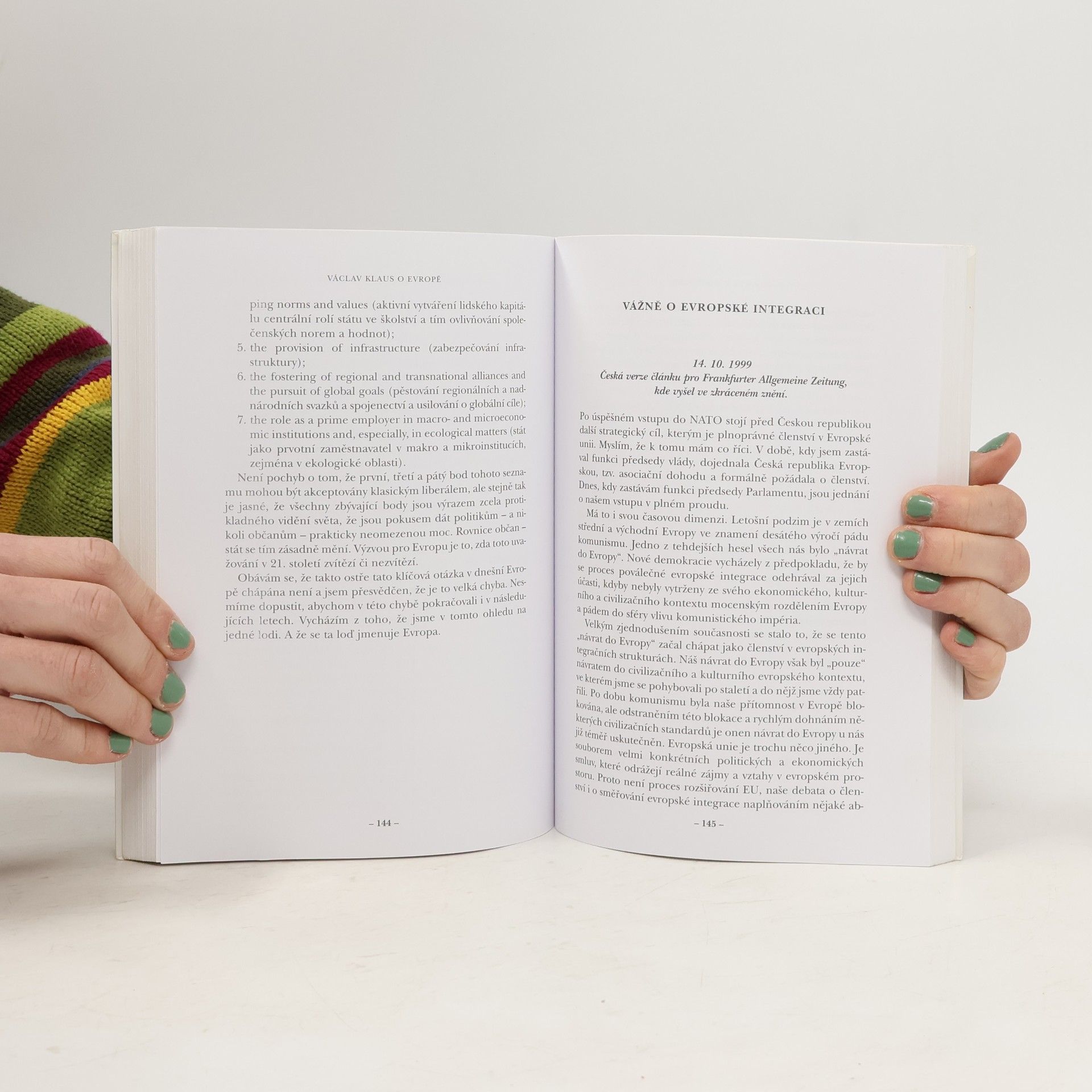 Kniha Václava Klause k otázkam dnešní Evropy, především té Evropy, kterou jsme si zvykli označovat souslovím Evropská unie. Výbor textů Václava Klause, které se týkají Evropy, evropské integrace a našeho perspektivního členství v ní za uplynulých 8 let od vzniku samostatné České republiky. Jsou to projevy, pronesené na mezinárodních fórech i články a eseje publikované v domácích periodikách.