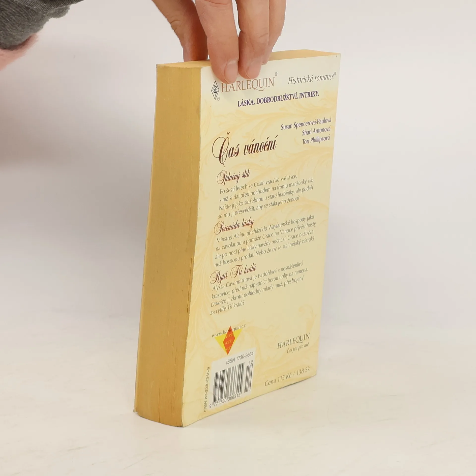Splněný slib. Po šesti letech se Collin vrací ke své lásce, s níž si dal před odchodem na frontu manželský slib. Najde ji jako služebnou u staré hraběnky, ale podaří se mu ji přesvědčit, aby se stala jeho ženou? Serenáda lásky. Minstrel Alaine přichází do Wayfarerské hospody jako na zavolanou a pomůže Grace na Vánoce přivést hosty, ale po noci plné lásky navždy odchází. Grace nezbývá než hospodu prodat. Nebo že by se stal nějaký zázrak? Rytíř Tří králů. Alyssa Cavendishová je tvrdohlavá a nesnášenlivá krasavice, před níž nápadníci berou nohy na ramena. Dokáže ji zkrotit pohledný mladý muž, přestrojený za rytíře Tří králů?