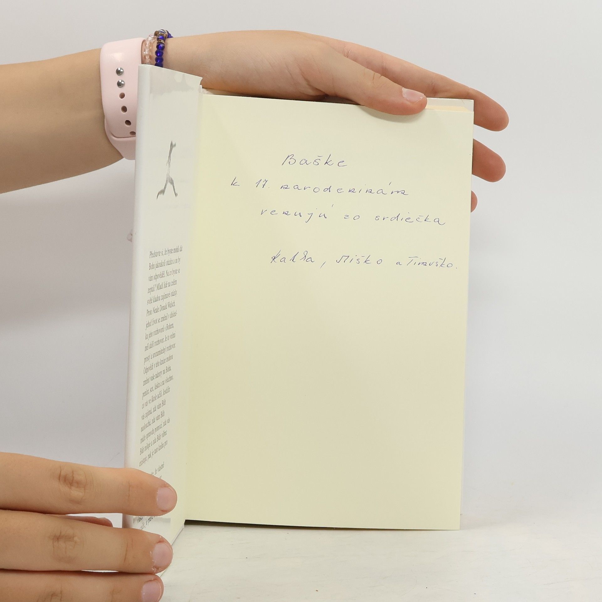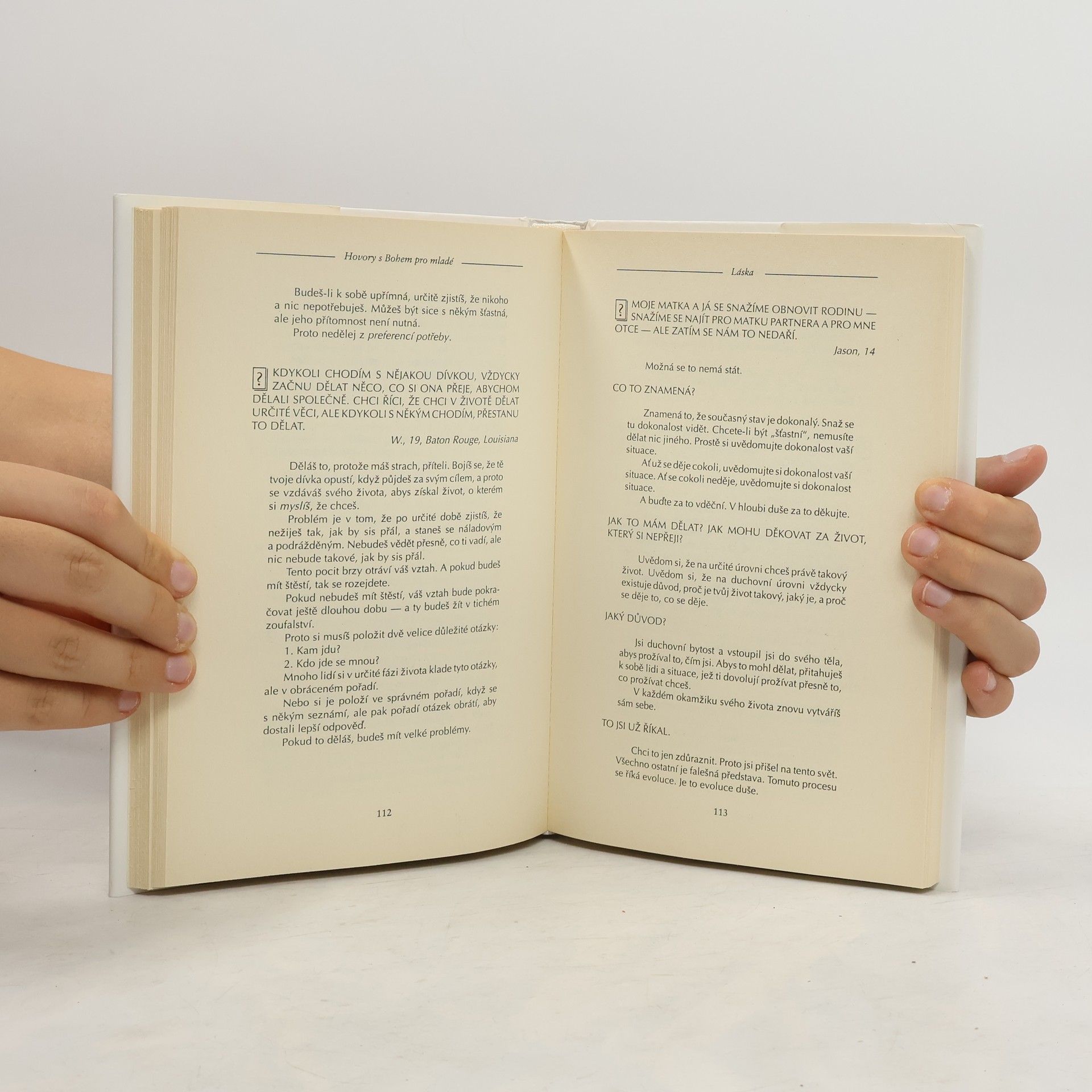 Představte si, že byste mohli dát Bohu jakoukoli otázku a on by vám odpověděl. Na co byste se zeptali? Mladí lidé na celém světě kladou zajímavé otázky. Proto Neale Donald Walsch, jehož život se změnil v důsledku jeho rozhovorů s Bohem, měl další rozhovor. Je to velmi prostý a srozumitelný rozhovor. Odpovědi v této knize mohou změnit vaše názory na Boha, peníze, sex, lásku a na všechno, co vás ve škole učili. Jestliže vás zajímá, zda vám Bůh naslouchá, zda vám Bůh může opravdu pomoci, zda vás Bůh miluje a zda Bůh vůbec existuje, pak je tato kniha pro vás. Neboť zjistíte, že vlastně nejde o autorův rozhovor s Bohem. Důležitý je váš vlastní rozhovor. A nejlepší čas začít, je právě teď. Neale Donald Walsch je autorem knih Hovory s Bohem, Přátelství s Bohem a Přijímání Boha; všechny tyto knihy se staly bestsellery. První kniha Hovorů s Bohem byla na seznamu bestsellerů půl druhého roku. Knihy byly přeloženy do sedmadvaceti jazyků a bylo jich prodáno mnoho milionů. Walsch pořádá přednášky a duchovní semináře, které rozšiřují poselství obsažené v jeho neobyčejných knihách. Jeho nejnovější práce zahrnuje semináře pro mládež na celém světě a tuto knihu.