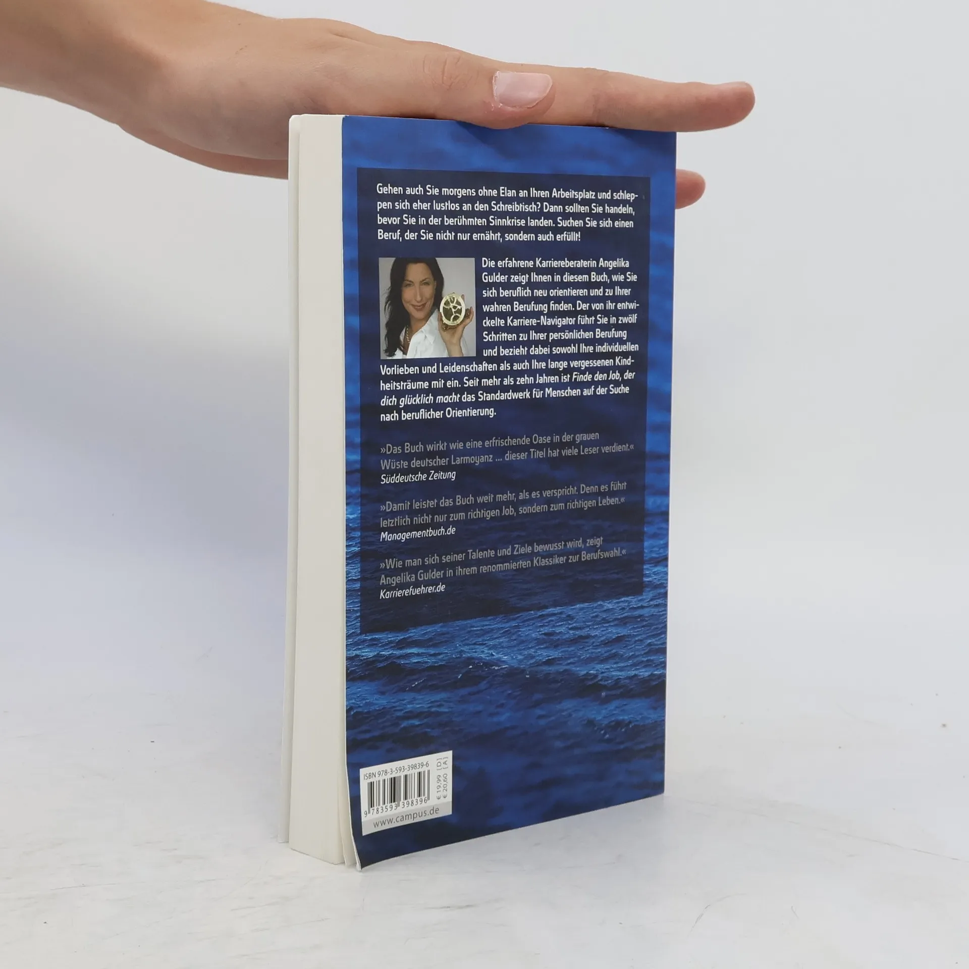 Seit mehr als zehn Jahren unterstützt „Finde den Job, der dich glücklich macht“ tausende Menschen auf der Suche nach ihrer Berufung und einem erfüllten Berufsleben. Der Karriere-Navigator ist die Orientierungshilfe auf dem Weg zu mehr Glück und Zufriedenheit im(Berufs-)Leben. Egal wie alt, in welcher Lebensphase oder wo Sie sind: Der Beruf Ihrer Träume ist zum Greifen nah! „Wie man sich seiner Talente und Ziele bewusst wird, zeigt Angelika Gulder in ihrem renommierten Klassiker zur Berufswahl.“ Karriereführer