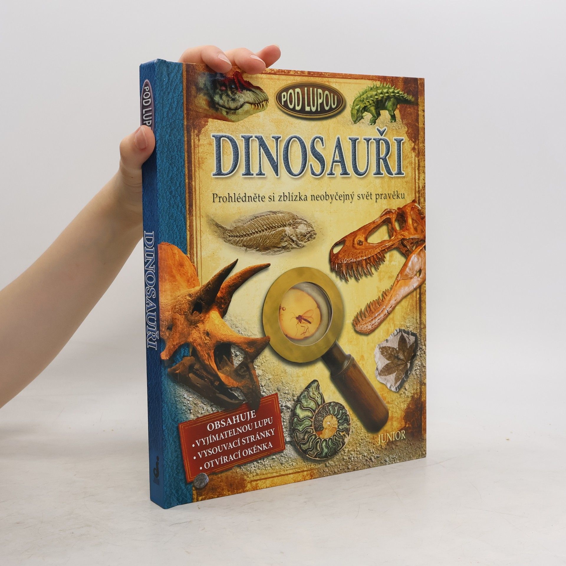 Neobyčejný svět pravěku. Prozkoumejte ztracený svět vymřelých živočichů a zblízka se podívejte, jak ostré drápy měl Velociraptor a jaké šupiny chránily kůži obrovských sauropodů. Použijte přiloženou lupu, abyste si zvětšili nevšední výjevy a neuvěřitelné tvory z dávné minulosti. V knížce najdete: ? vyjímatelnou lupu ? vysouvací stránky ? otvírací okénka