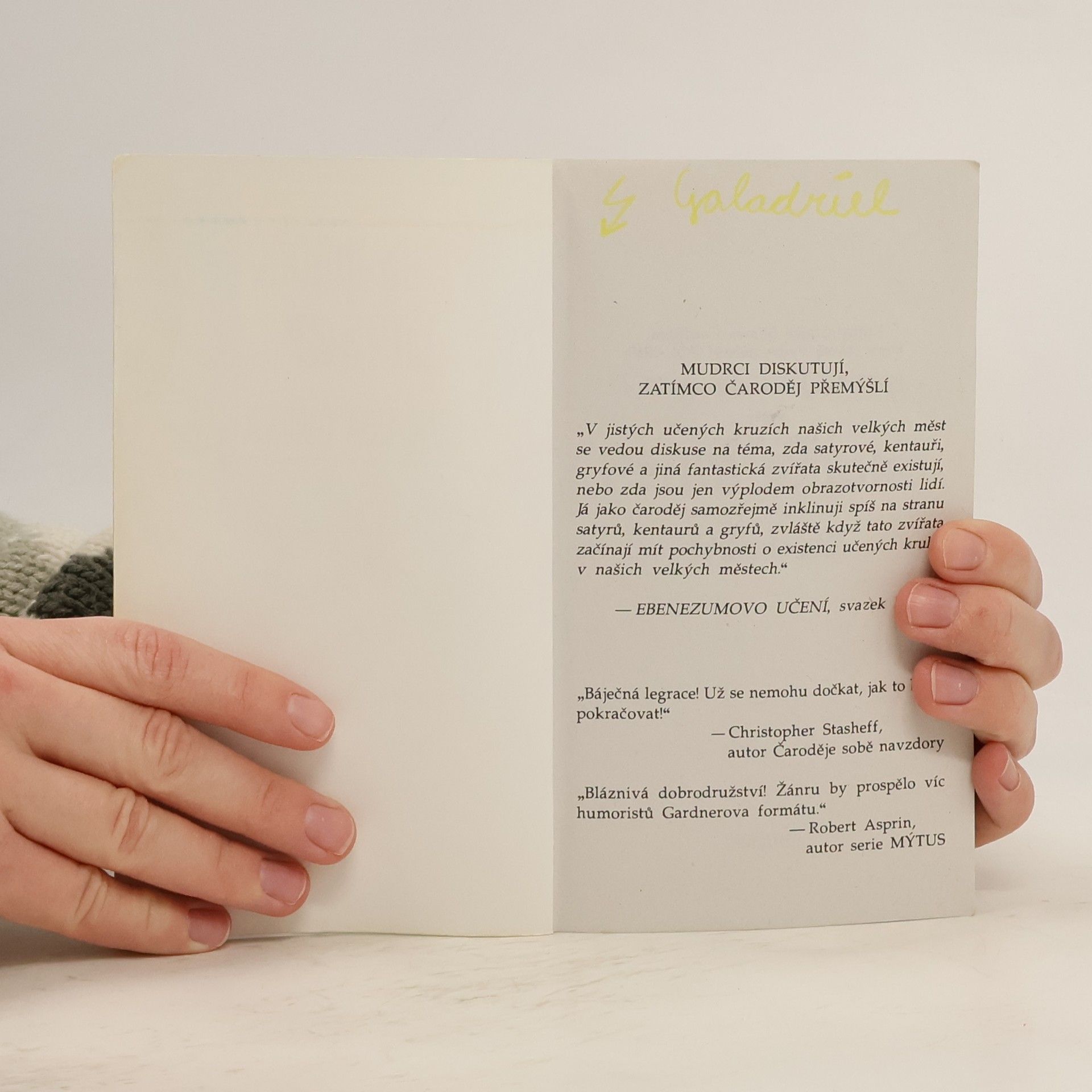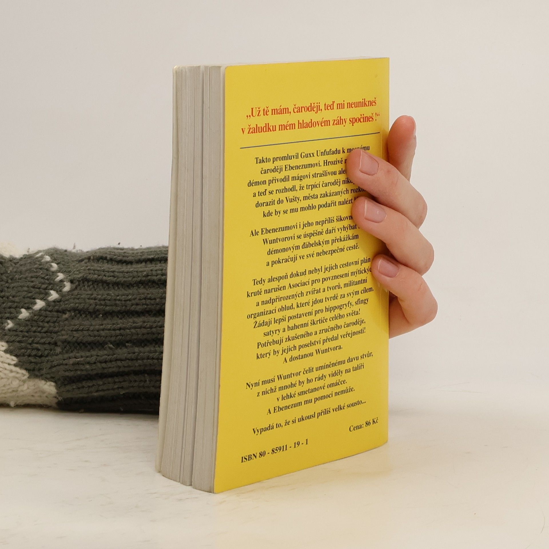 "Už tě mám, čaroději, teď mi neunikneš v žaludku mém hladovém záhy spočineš!" Takto promluvil Guxx Unfufadu k mocnému čaroději Ebenezumovi. Hrozivě rýmující démon přivodil mágovi strašlivou alergii na magii a teď se rozhodl, že trpící čaroděj nikdy nesmí dorazit do Vušty, města zakázaných rozkoší, kde by se mu mohlo podařit nalézt lék. Ale Ebenezumovi i jeho nepříliš šikovnému učni Wuntvorovi se úspěšně daří vyhýbat se démonovým ďábelským překážkám a pokračují ve své nebezpečné cestě. Tedy alespoň dokud nebyl jejich cestovní plán krutě narušen Asociací pro povznesení mýtických a nadpřirozených zvířat a tvorů, militantní organizací oblud, které jdou tvrdě za svým cílem. Žádají lepší postavení pro hippogryfy, sfingy, satyry a bahení škrtiče celého světa! Potřebují zkušeného a zručného čaroděje, který by jejich poselství předal veřejnosti! A dostanou Wuntvora. Nyní musí Wuntvor čelit umíněnému davu stvůr, z nichž mnohé by ho rády viděly na talíři v lehké smetanové omáčce. A Ebenezum mu pomoci nemůže. Vypadá to, že si ukousl příliš velké sousto...