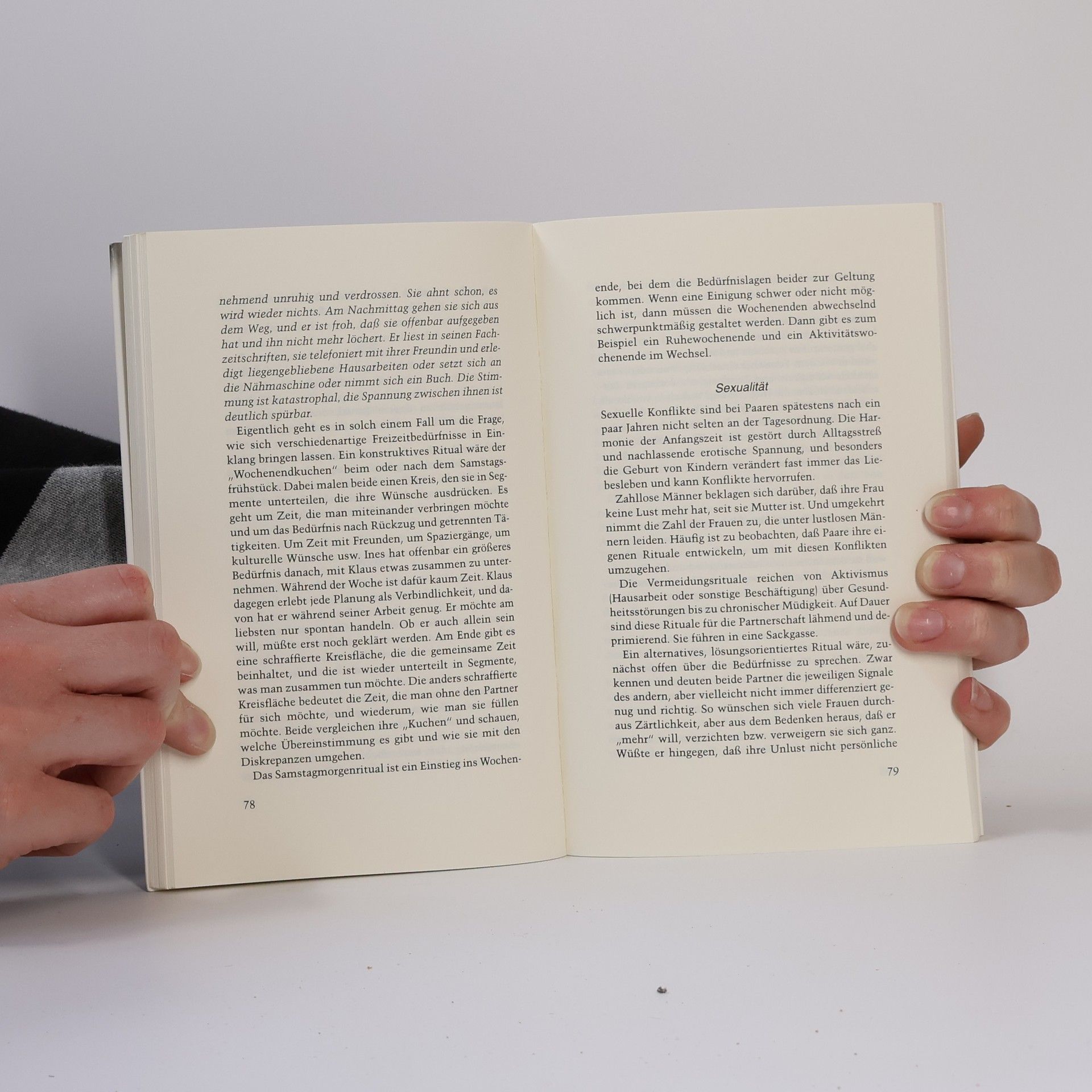 Rituale - Begrüßungs-, Streit-, Versöhnungs-, Abschieds-, Frühstücksrituale am Sonntagmorgen - dienen der bewußten Beziehungspflege. Sie können Ordnung in das Auf und Nieder im Chaos der Gefühle bringen, können das Vertrauen stärken und der Partnerschaft eine größere Verbindlichkeit und Zuverlässigkeit verleihen. Rituale allerdings, die stupide und ohne innere Beteiligung durchgezogen werden, können destruktiv wirken. Die Psychologin und Therapeutin Margarethe Schindler zeigt, wie man dem Alltag Form und Gestalt geben und die partnerschaftliche Liebe lebendig erhalten kann.