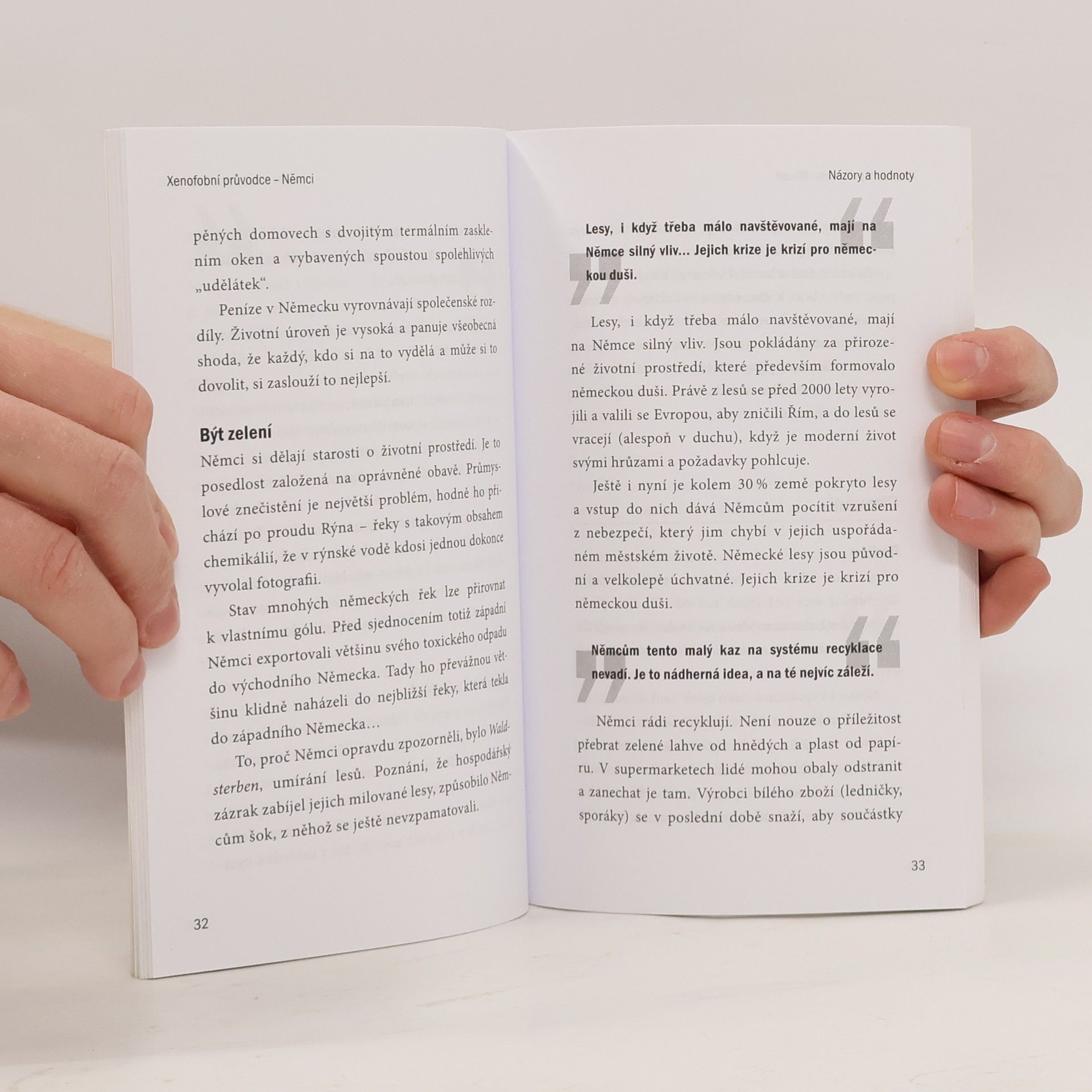 Laskavě škodolibý, satirický pohled do duše Němců, včetně mnoha humorných postřehů, břitkých a zacílených, ale stále ještě politicky i společensky únosných. Je to průvodce, který pomůže k jejich pochopení, rozkryje jejich nejistoty a něžně rozptýlí i ty nejvžitější předsudky. Populární, leč evidentně mylné přesvědčení, že tomuto národu chybí humor, je elegantně a vyvráceno...