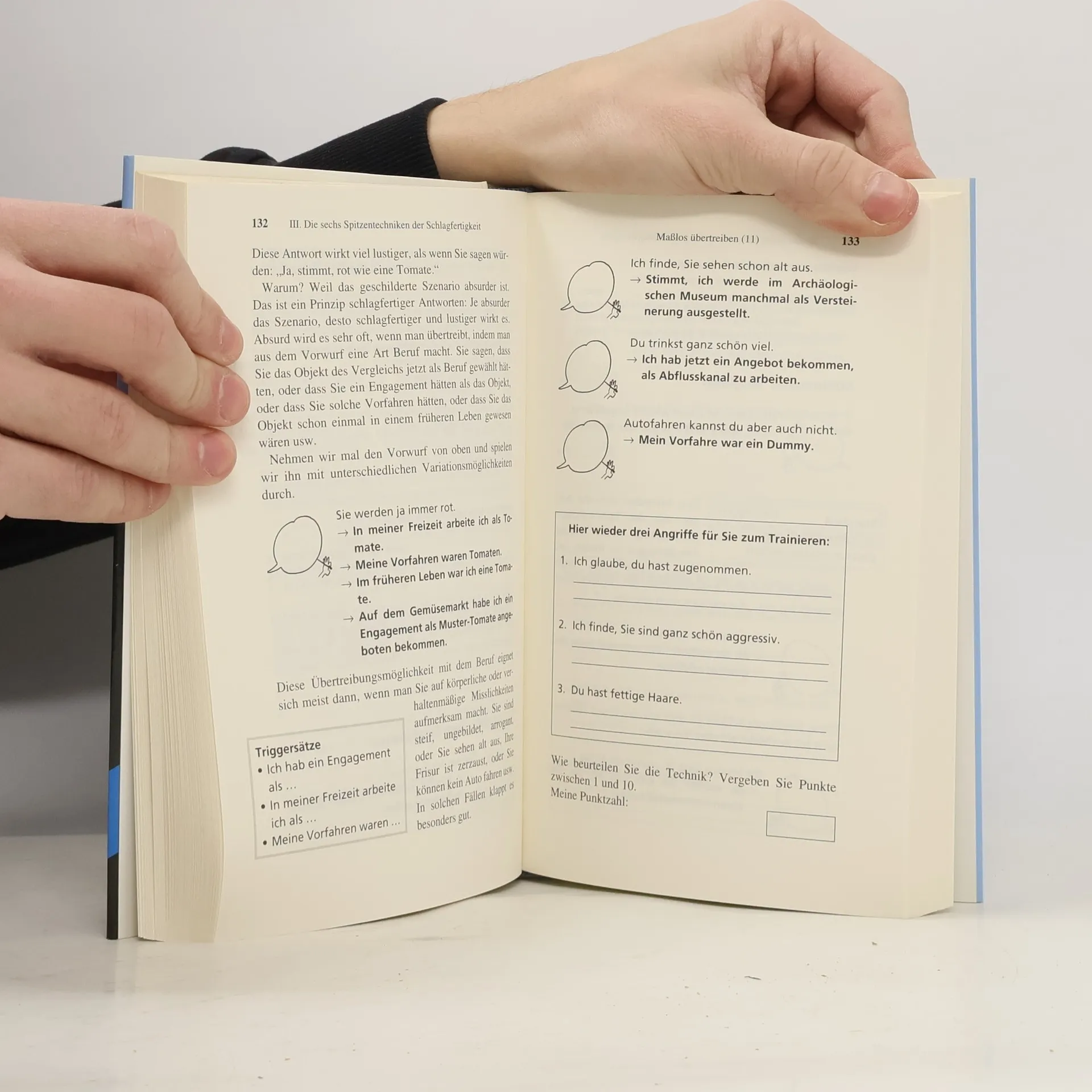Trainigsprogramm zur Witz-, Erwiderungs- und Diskussionsfertigkeit; mit zahlreichen Übungsbeispielen samt Lösungen.