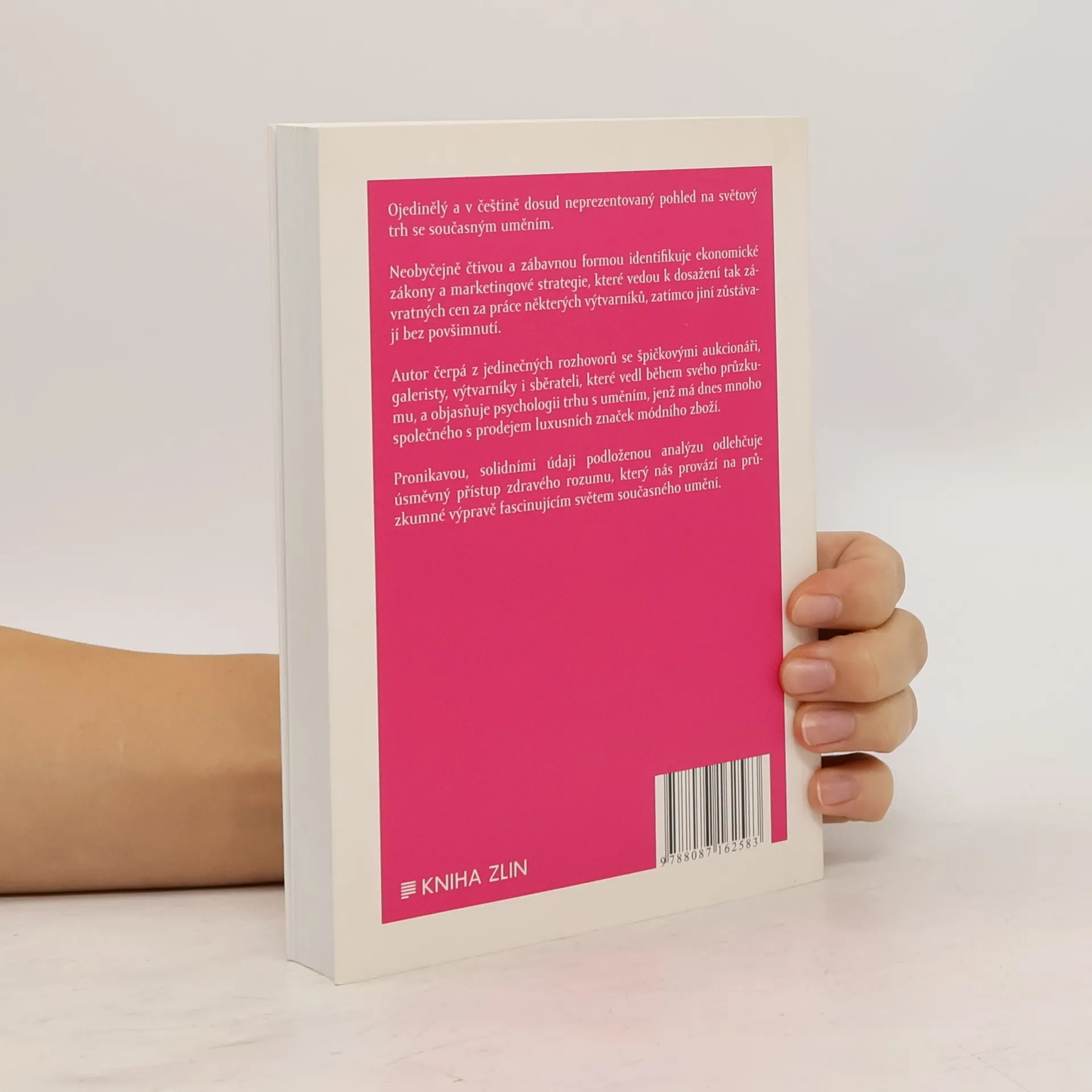 Ojedinělý a v češtině unikátní pohled na světový trh se současným uměním. Nesmírně čtivou a zábavnou formou identifikuje ekonomické zákony a marketingové strategie, které vedou k dosažení tak závratných cen za práce některých výtvarníků, zatímco jiní zůstávají bez povšimnutí. Autor čerpá z jedinečných rozhovorů se špičkovými aukcionáři, galeristy, výtvarníky i sběrateli, shromážděných během svého průzkumu a objasňuje psychologii trhu s uměním, který má dnes mnoho společného s prodejem luxusních značek módního zboží. Pronikavou, solidními údaji podloženou analýzu odlehčuje úsměvný přístup zdravého rozumu, který nás provází na průzkumné výpravě fascinujícím světem současného umění.
